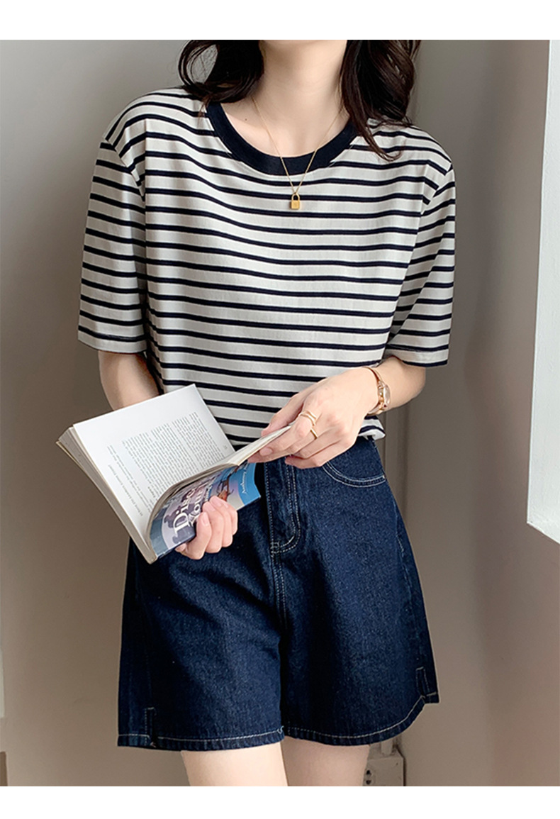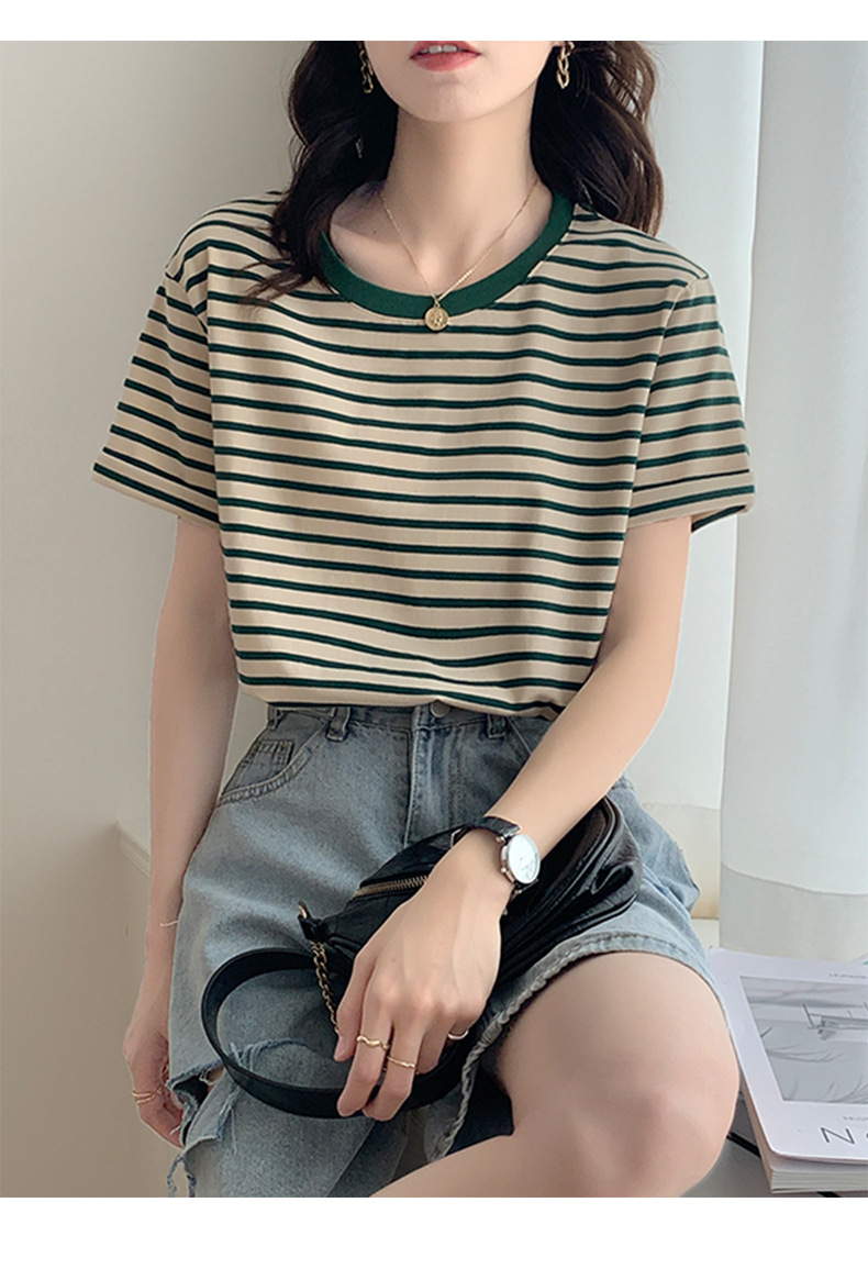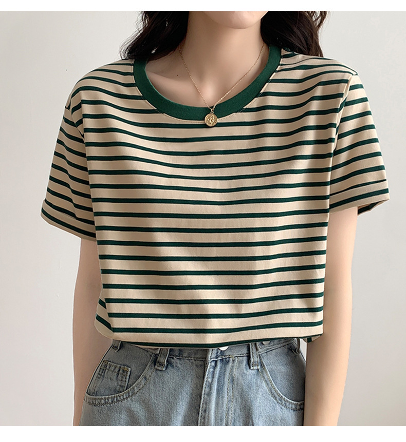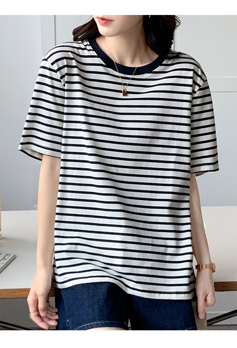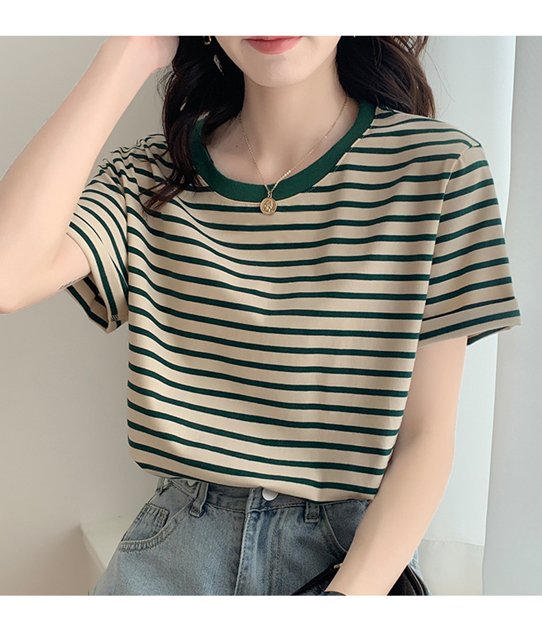순면 반팔 가로 줄무늬 티셔츠 여성 여름 2026 신상 루즈핏 반팔 티셔츠 캐주얼 베이직 숄더탑