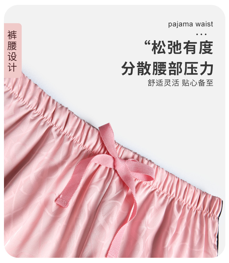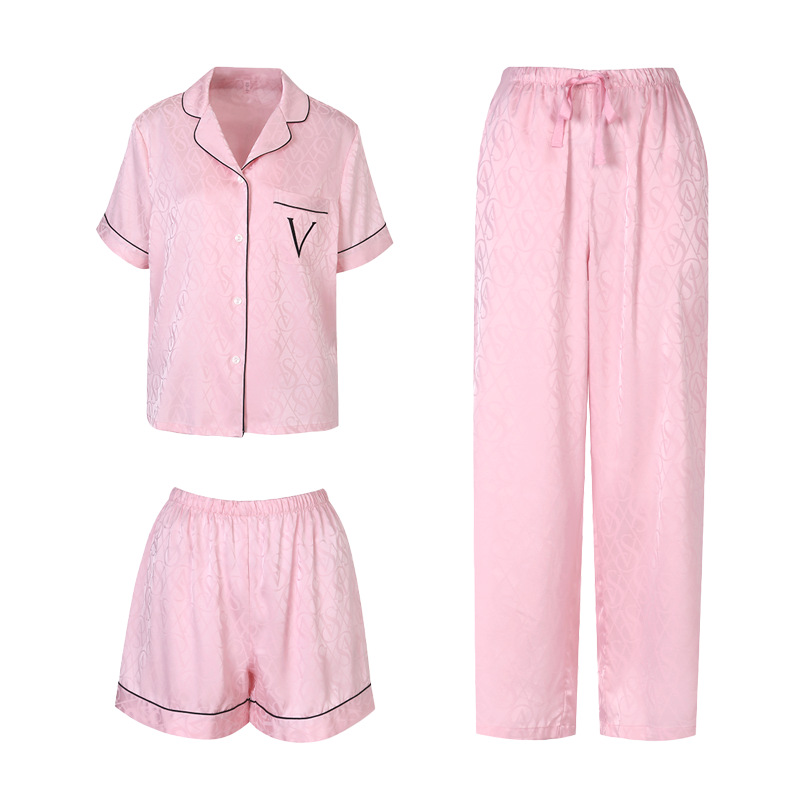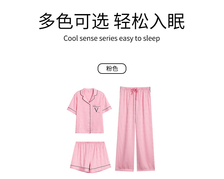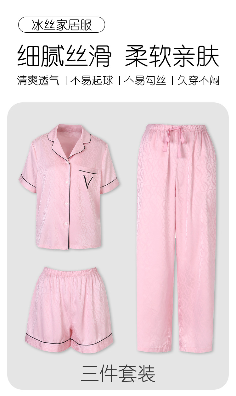 2025 여름 신상 모조 실크 잠옷 여성용 얇은 반팔 반바지 긴바지 3종 세트 심플 홈웨어 세트