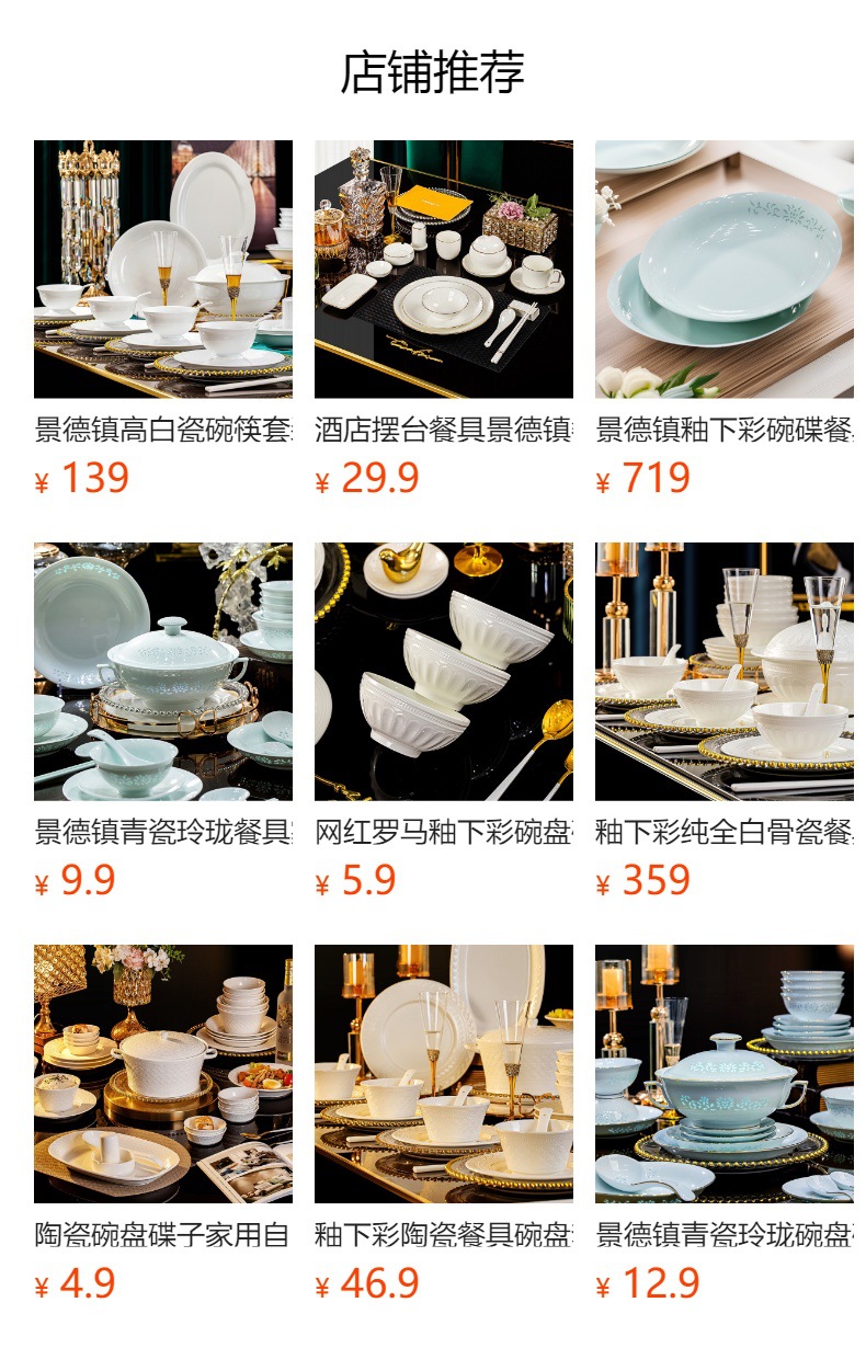 높은 흰색 도자기 그릇 판 단일 제품 Jingdezhen 세라믹 식기 큰 그릇 작은 그릇 서양 음식 접시 차가운 음식 접시 스테이크 플레이트