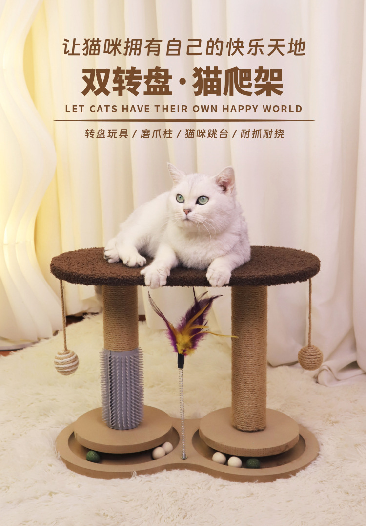 이중 기둥 턴테이블 가려운 고양이 등반 프레임