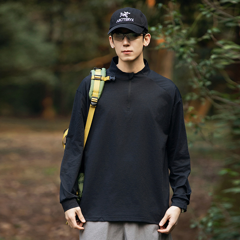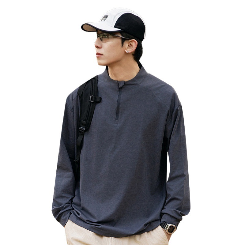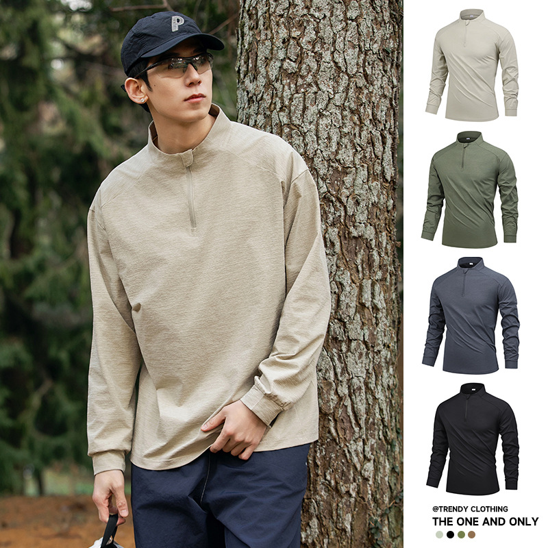 산 야외 선 스크린 수분 흡수 빠른 건조베이스 셔츠 5A 항균 훈련 스포츠 반 높은 칼라 지퍼 긴 소매 티셔츠 남성용