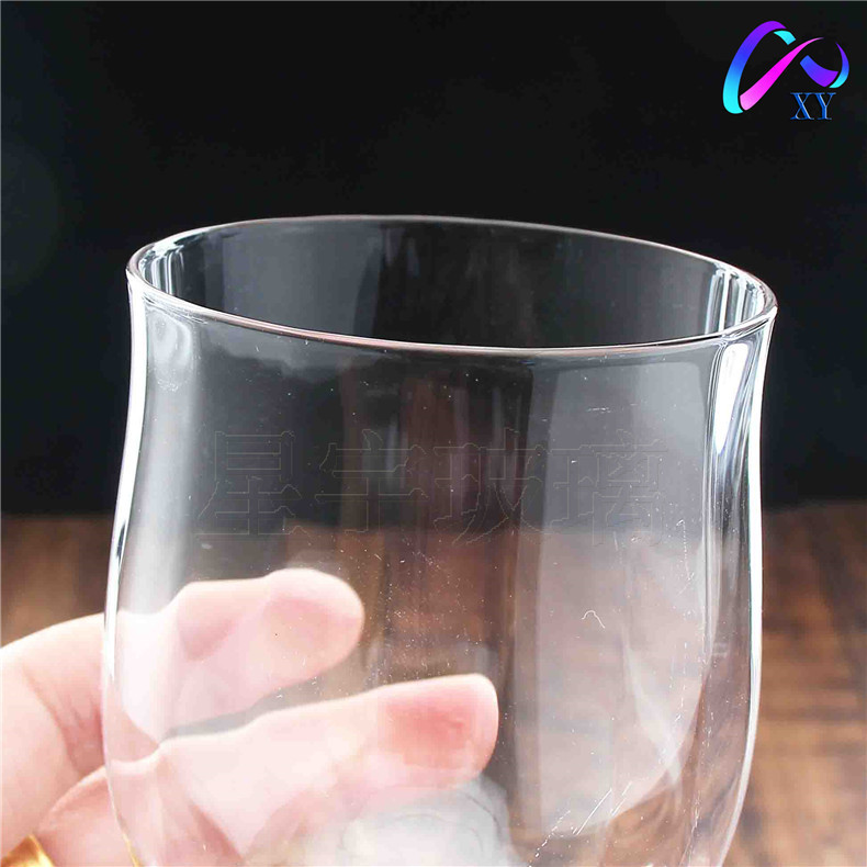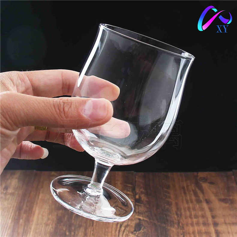 270ml 크리스탈 유리 수직 립 주스 컵 스트라이프 짧은 발 빨간색과 흰색 와인 유리 플립 스몰 사이즈 튤립 컵