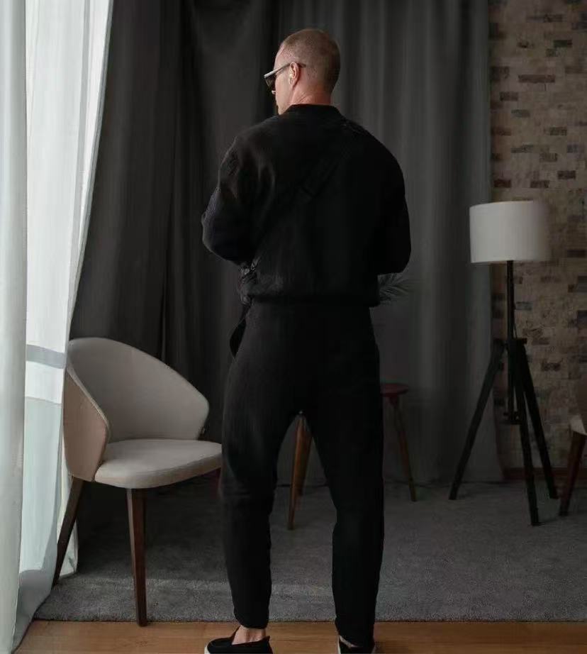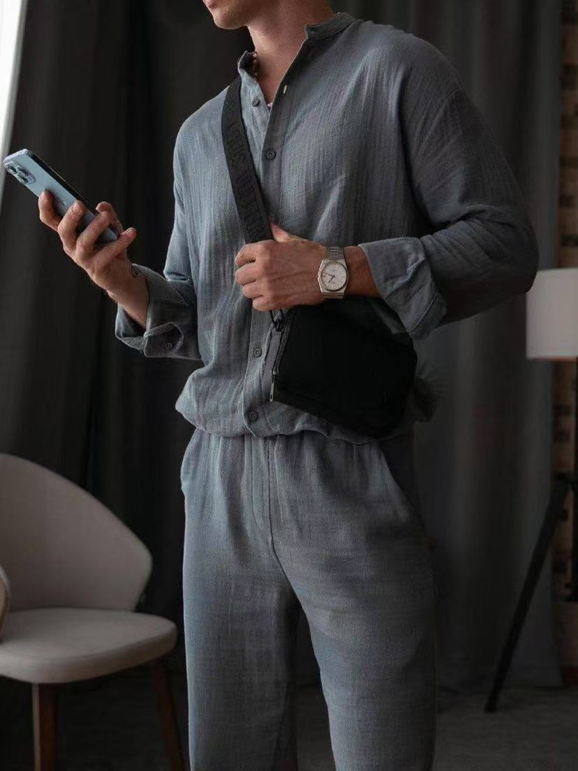 국경 2025 유럽과 미국의 새로운 남성 캐주얼 스포츠 긴팔 바지 투피스 라이트 성숙한 간단한 해변 남자 세트