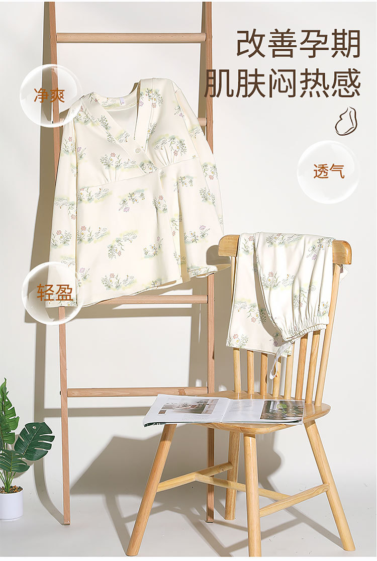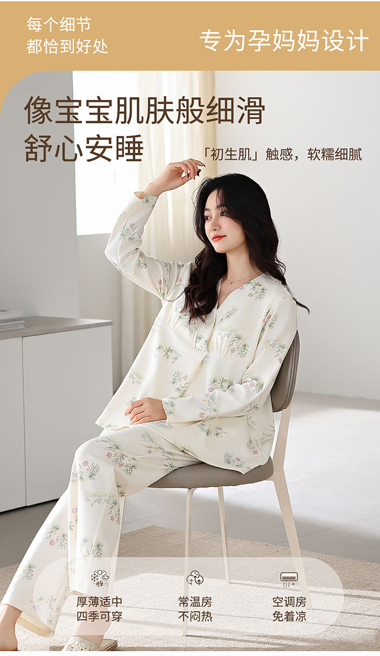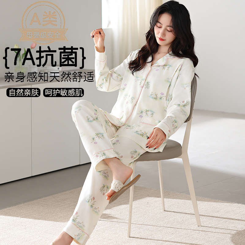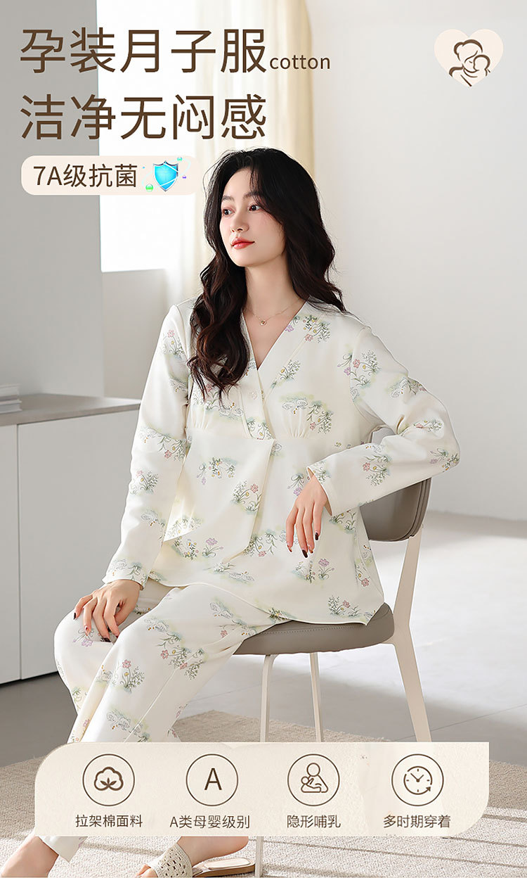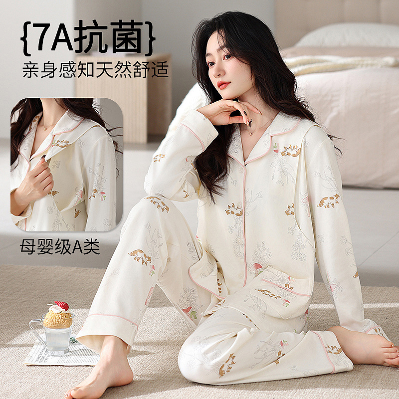 7A 산모 및 유아용 항균 쿨링 코튼 여름 임산부복 순면 시원한 느낌 A급 가슴 패드 포함 봄 가을 임산부 수유 잠옷