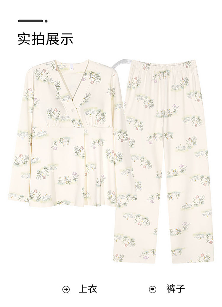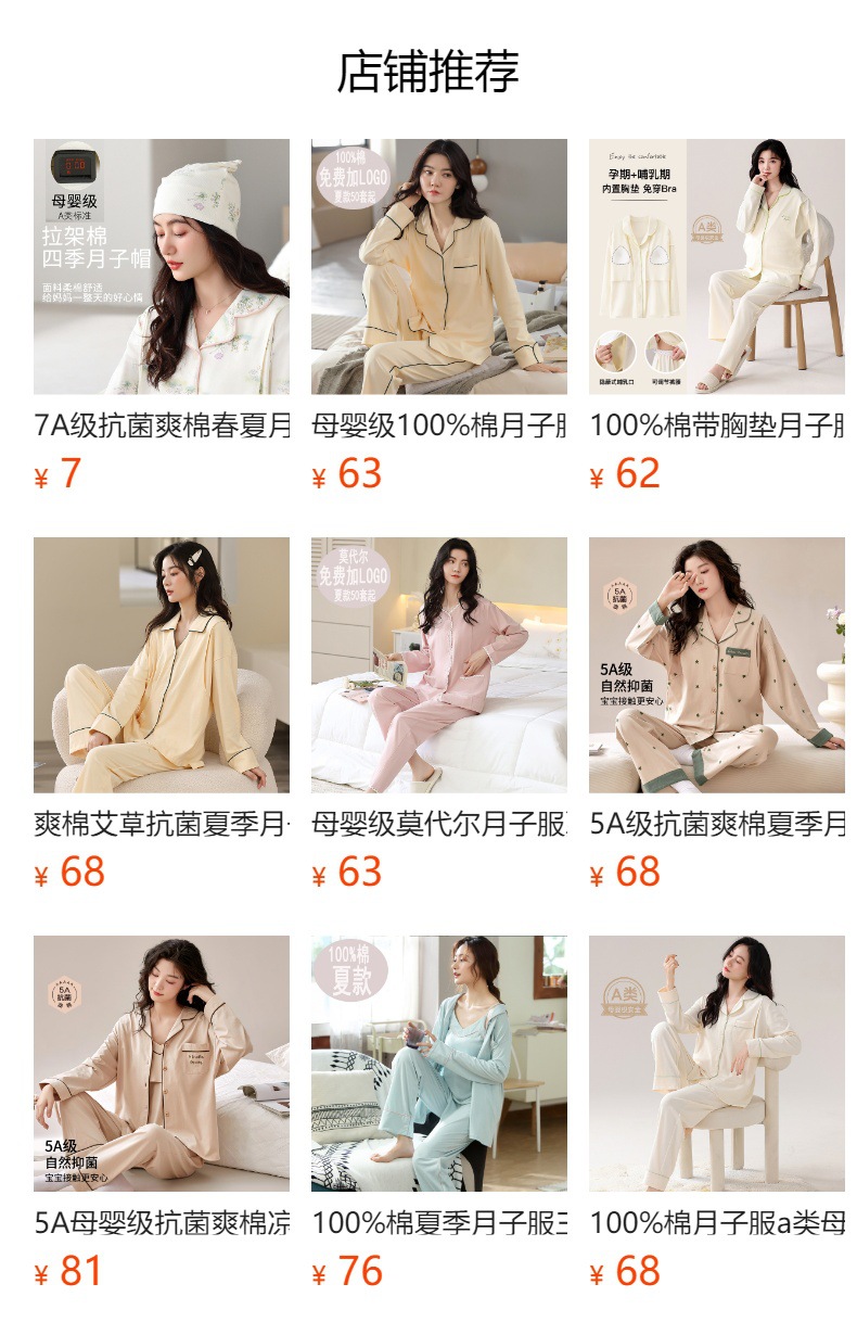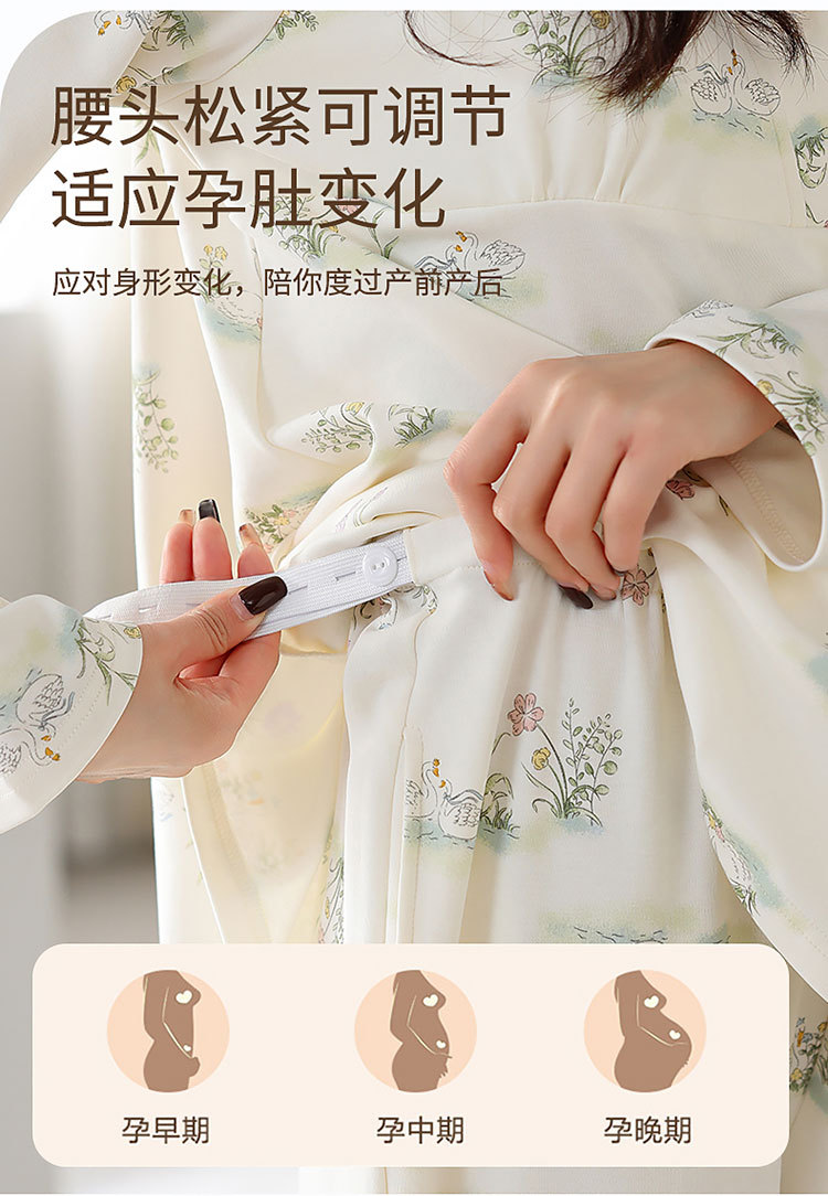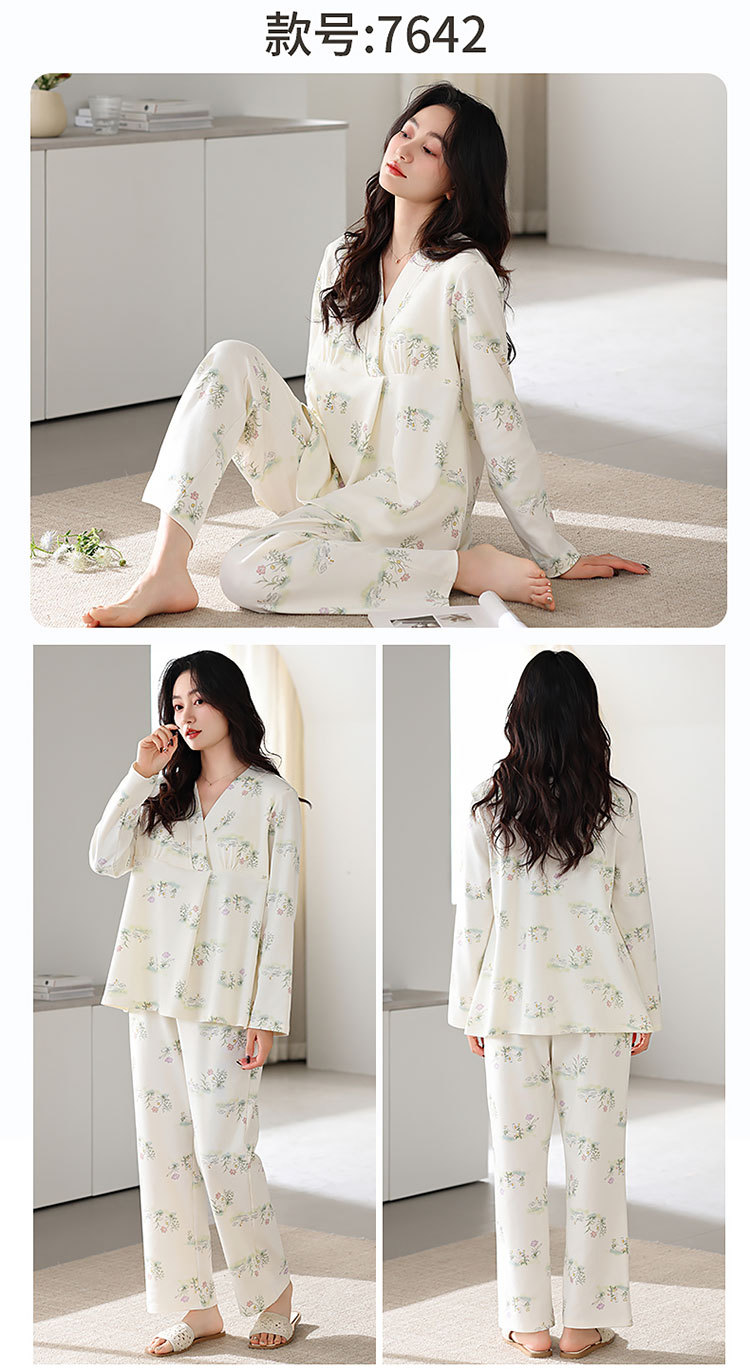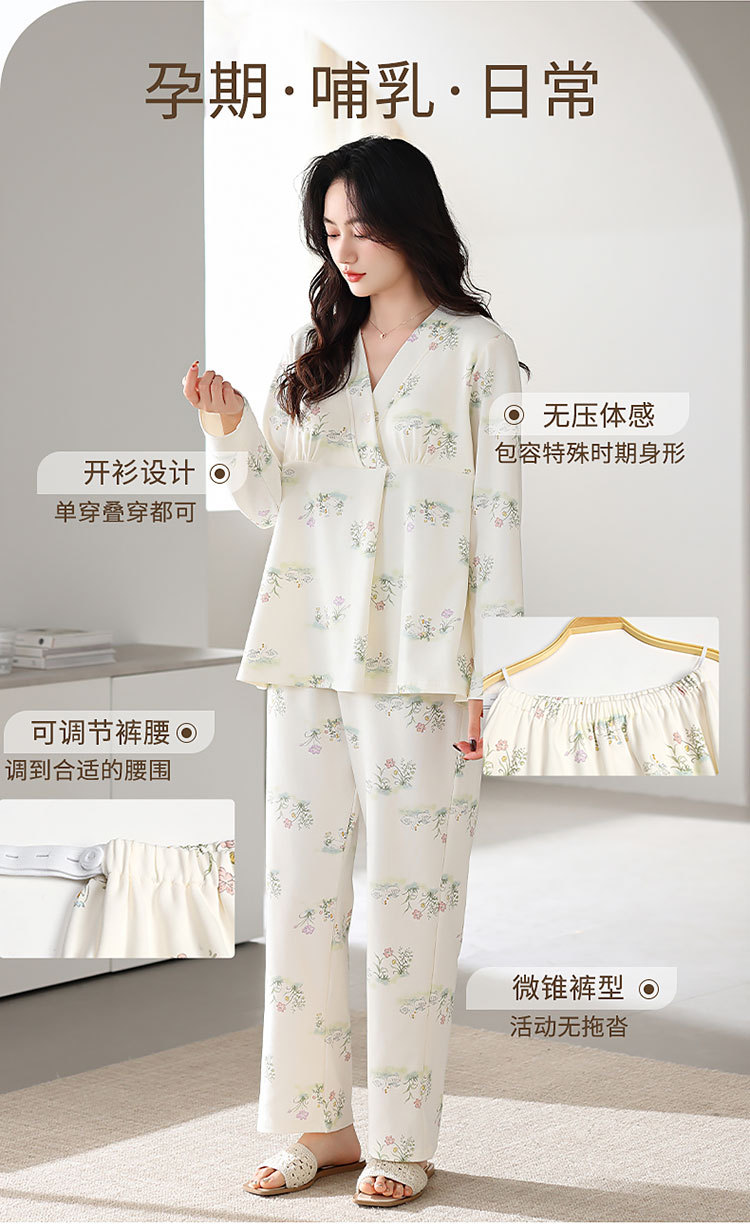7A 산모 및 유아용 항균 쿨링 코튼 여름 임산부복 순면 시원한 느낌 A급 가슴 패드 포함 봄 가을 임산부 수유 잠옷