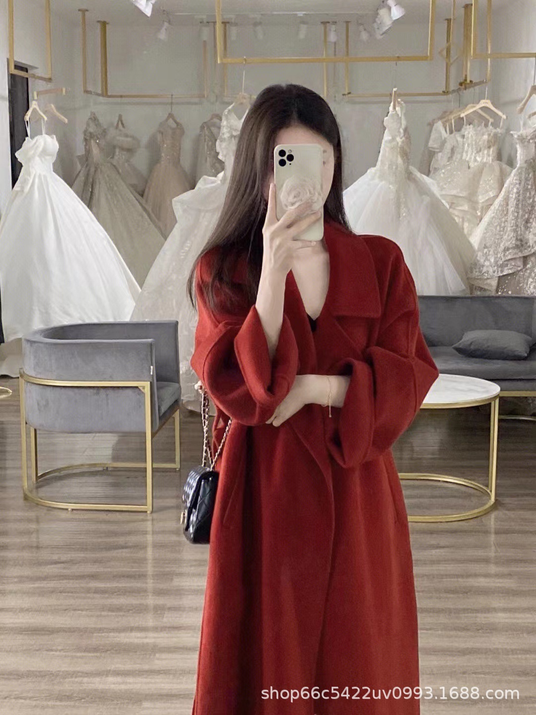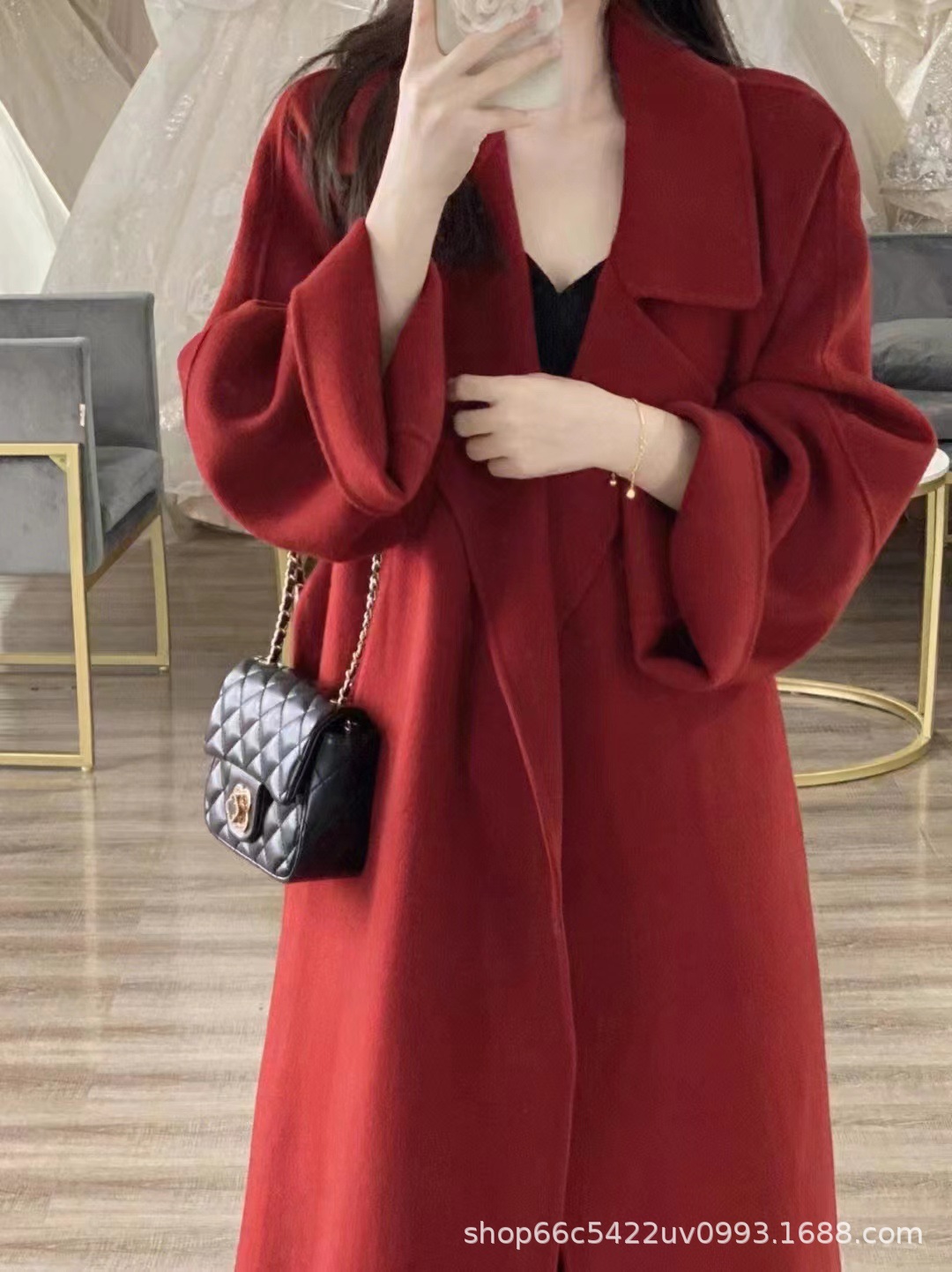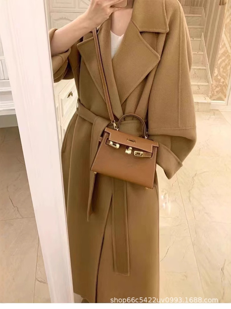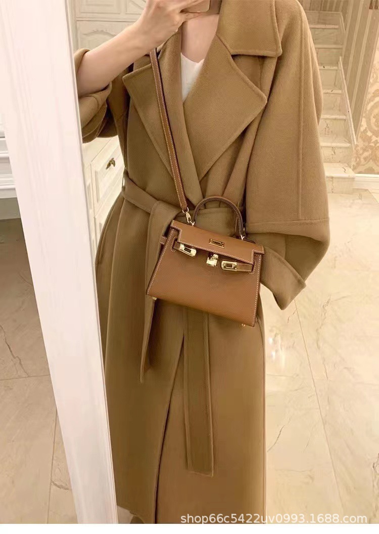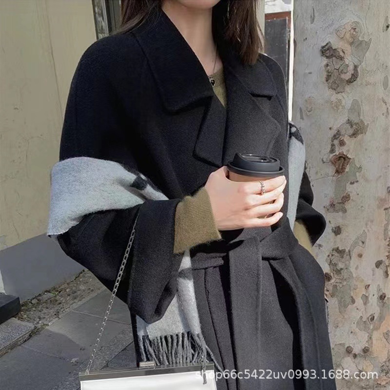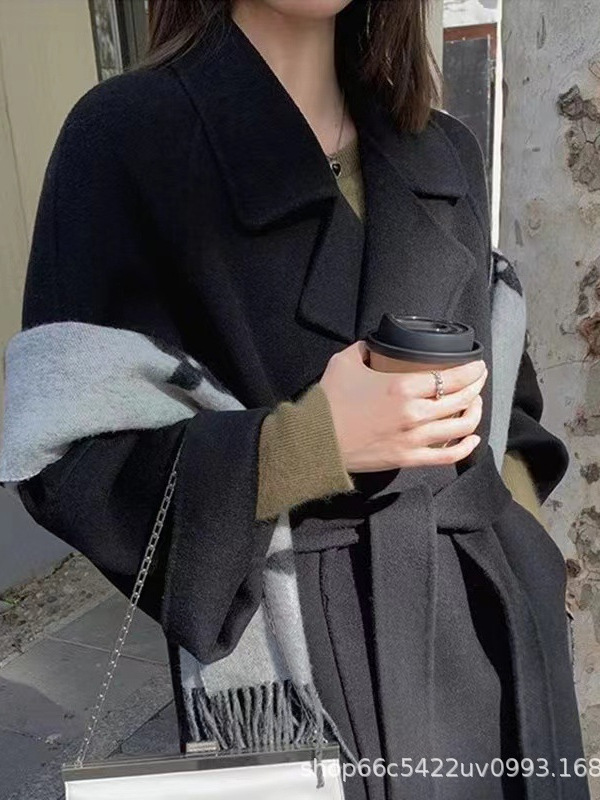 [시칠리아] 양면 캐시미어 코트 여자 2024 년 겨울 한국 레드 레이스업 롱 헵번 울 코트