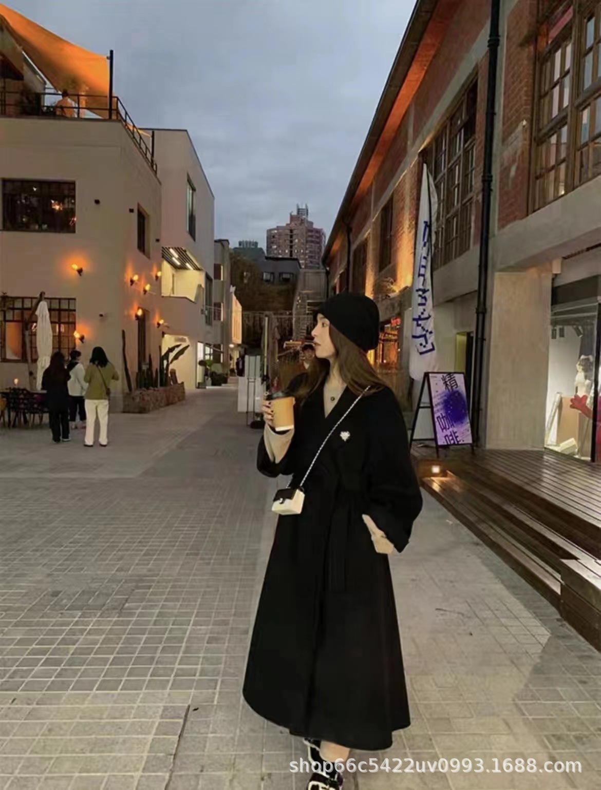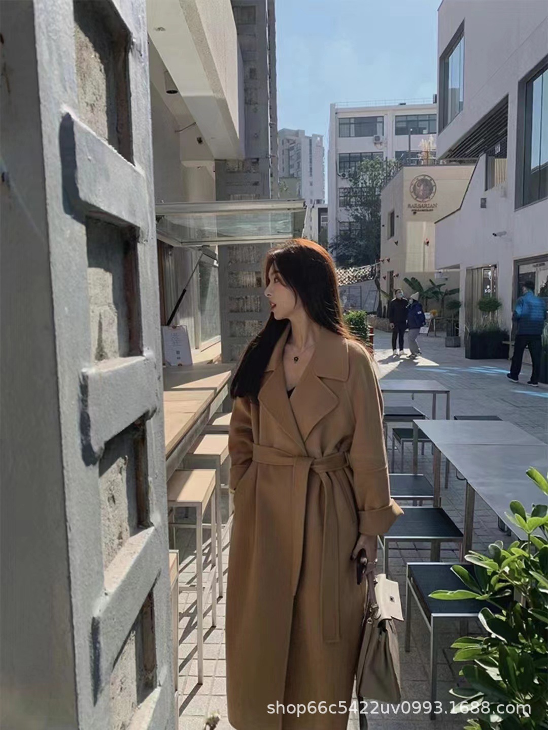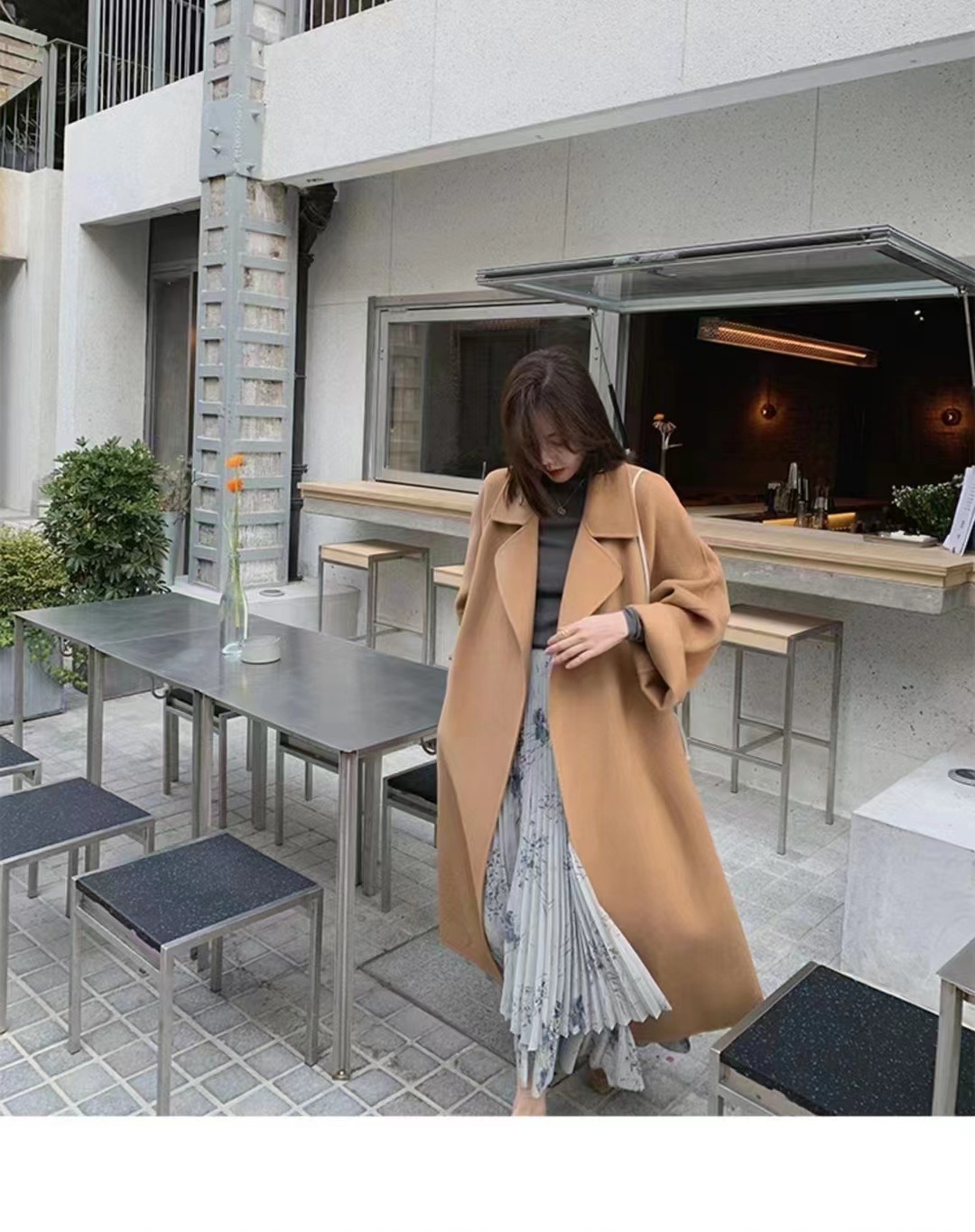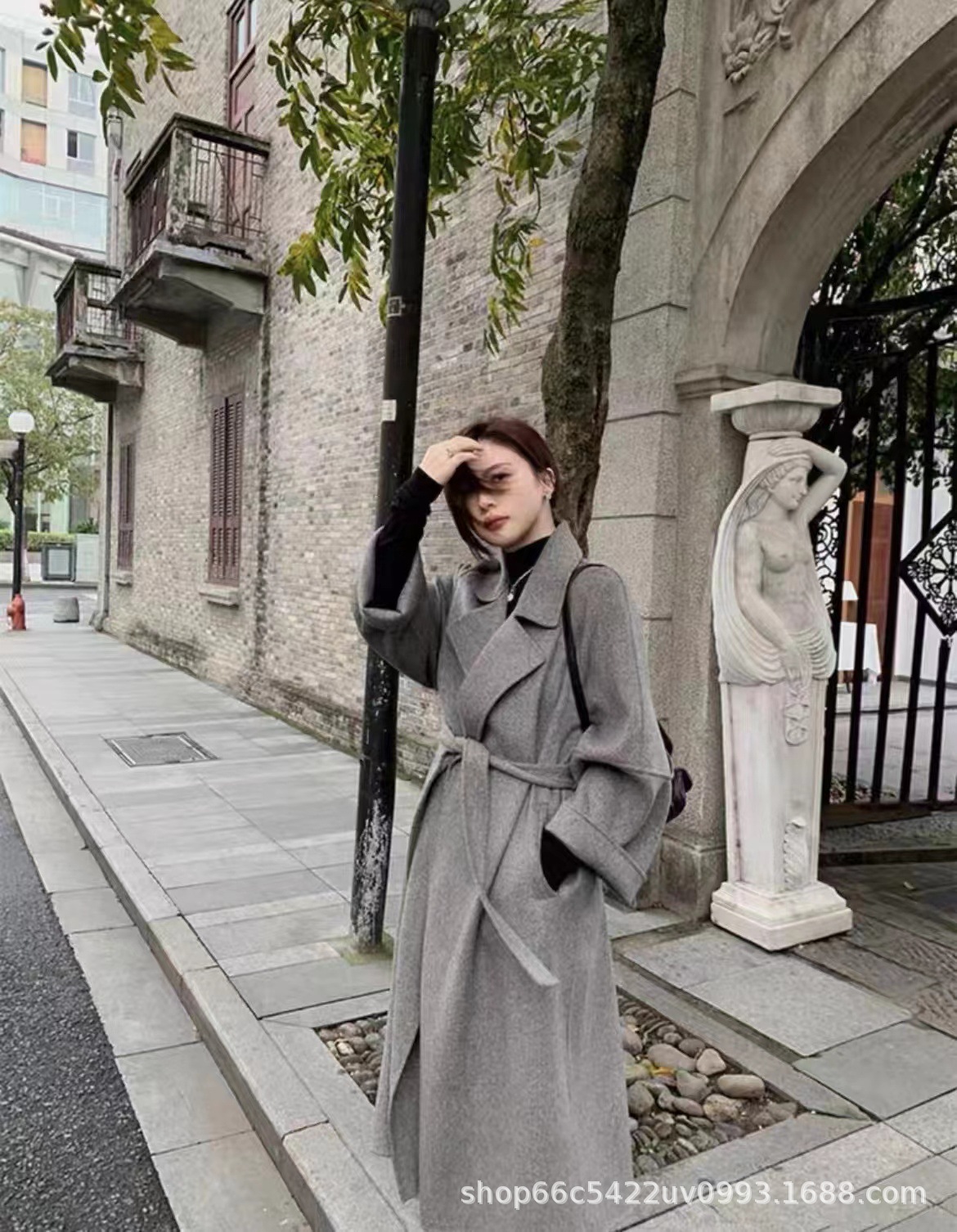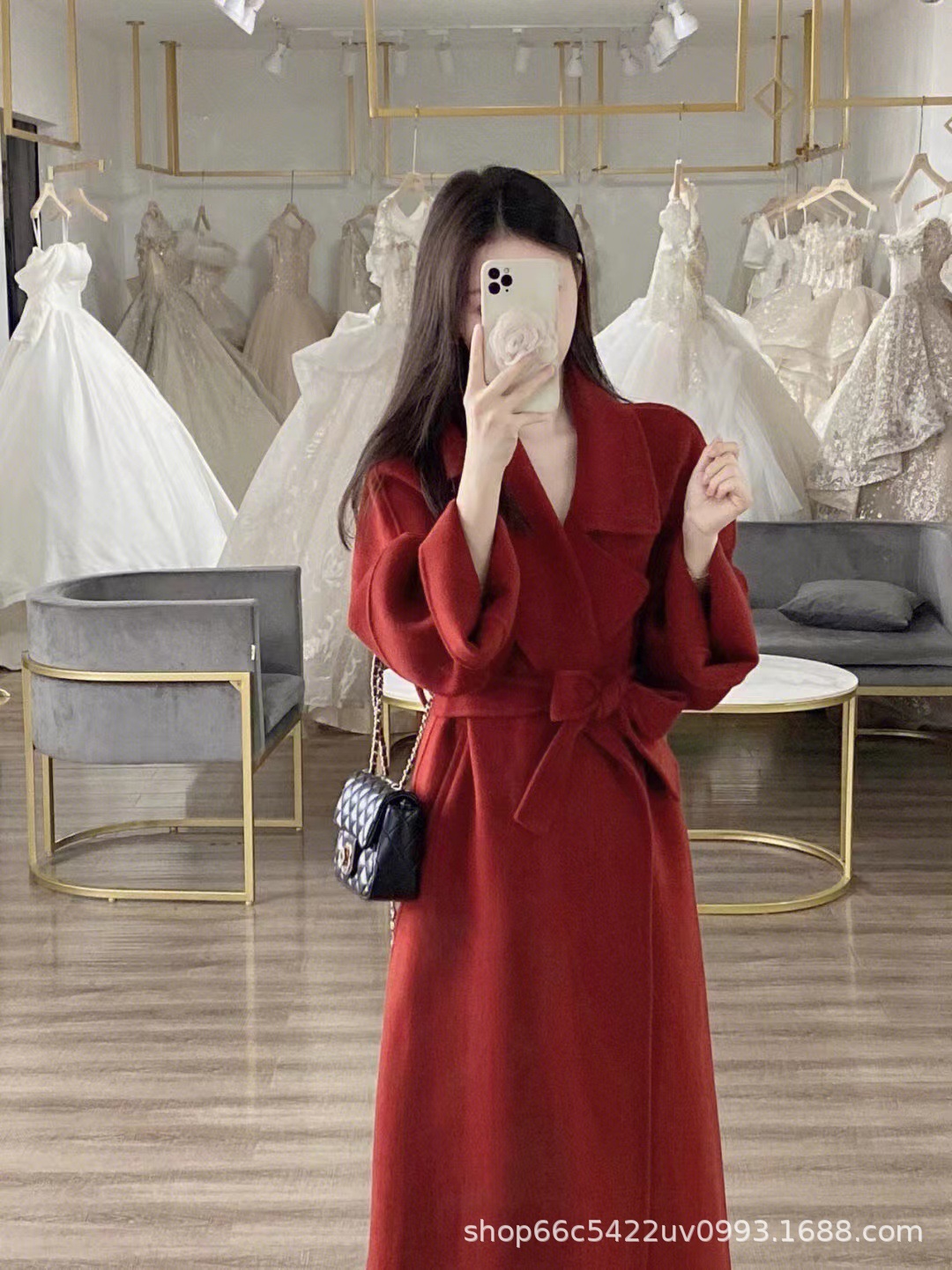 [시칠리아] 양면 캐시미어 코트 여자 2024 년 겨울 한국 레드 레이스업 롱 헵번 울 코트