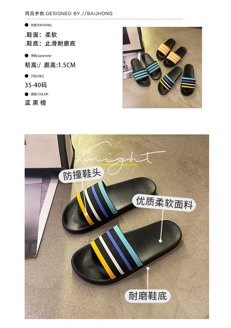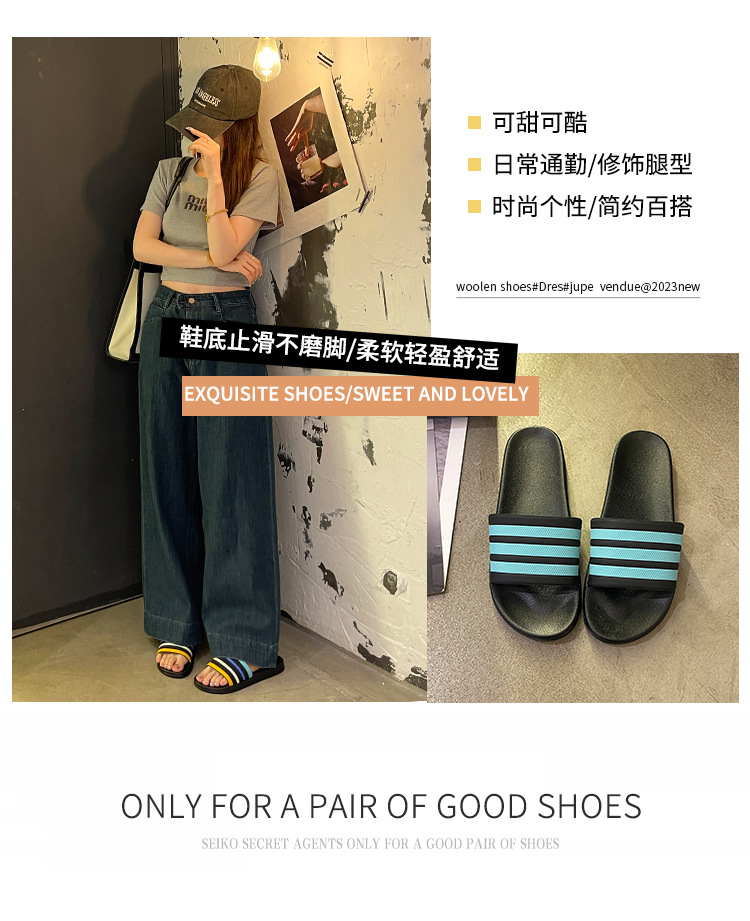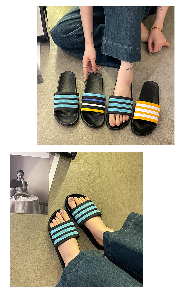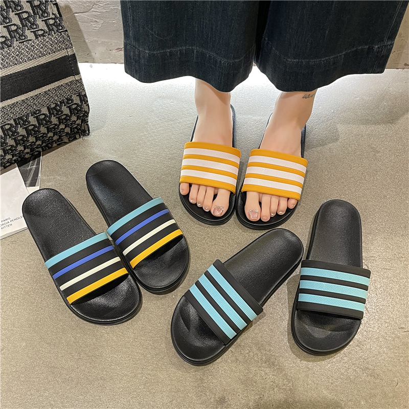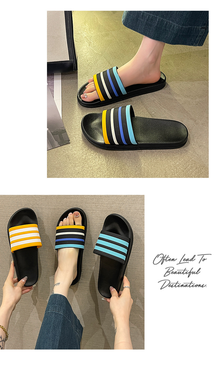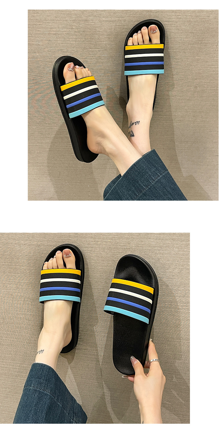 샌들과 슬리퍼 여성 실내 슬리퍼 스트라이프 홈 슬리퍼 여성 미끄럼 방지 두꺼운 바닥 여름 야외 샌들과 슬리퍼 도매