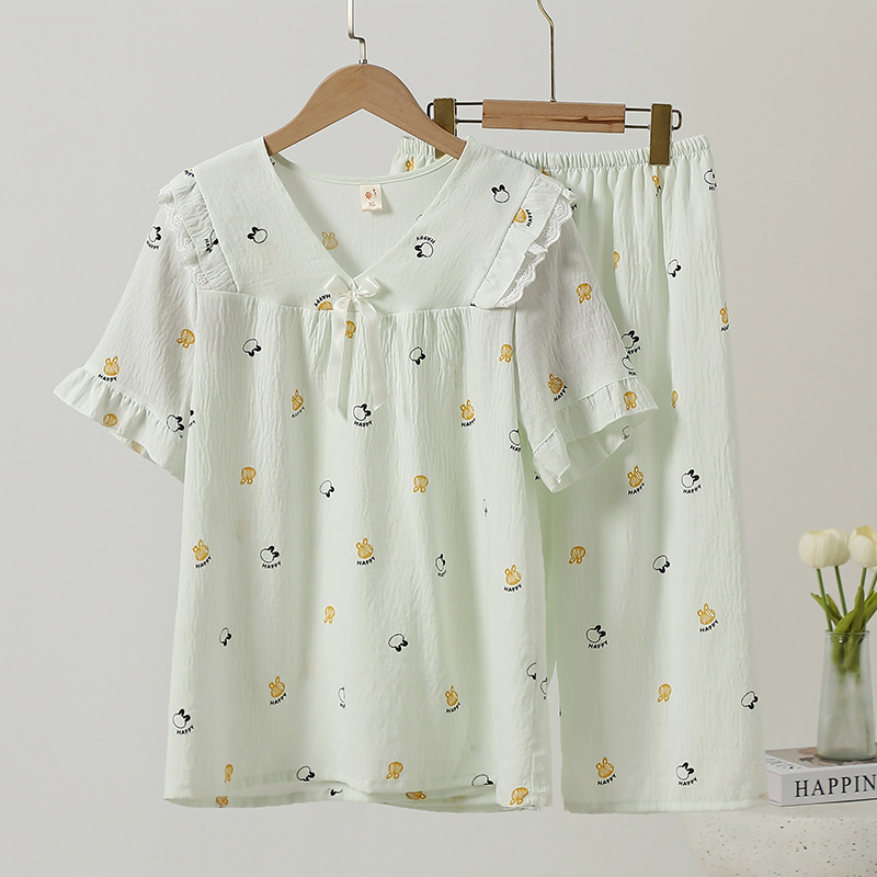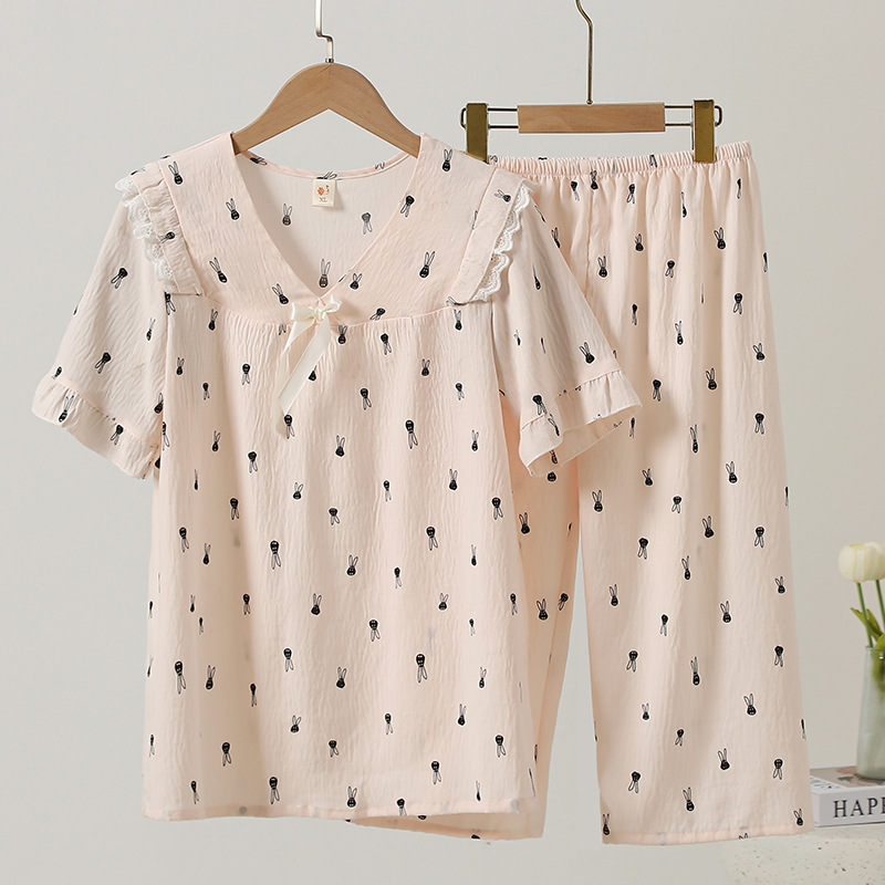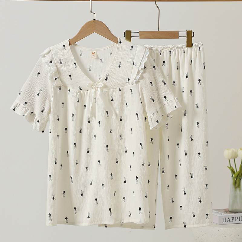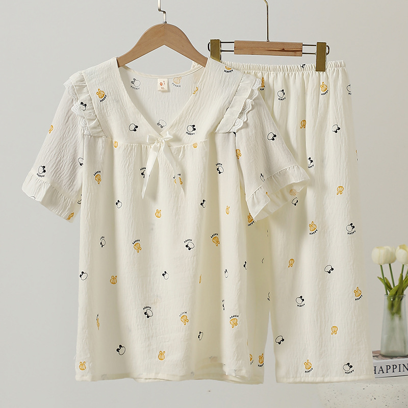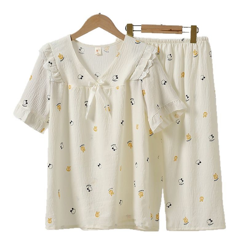 새로운 클라우드 코튼 파자마 봄과 가을 여성 홈 의류 반팔 자른 바지 투피스 세트 의류