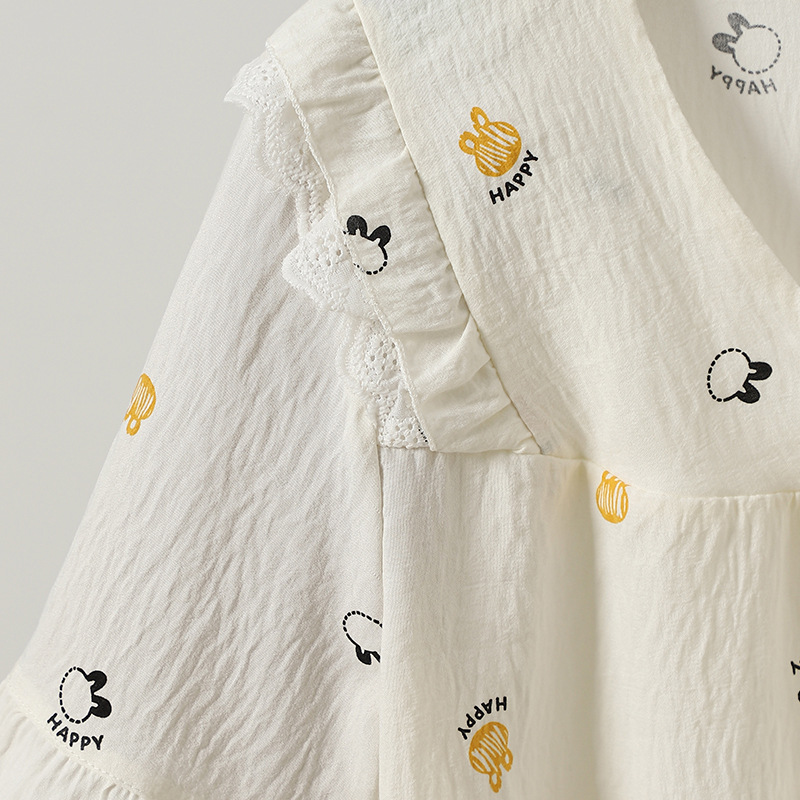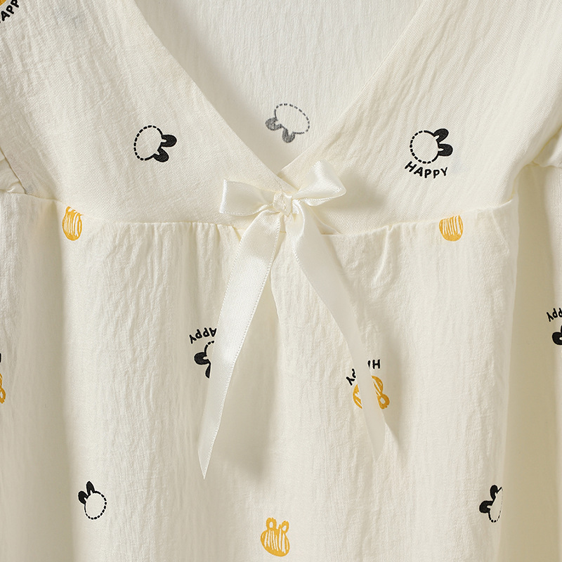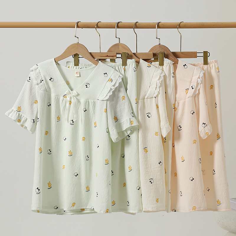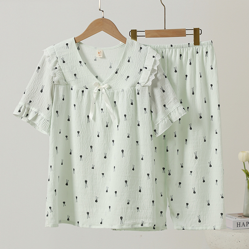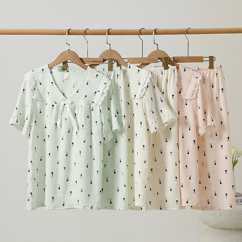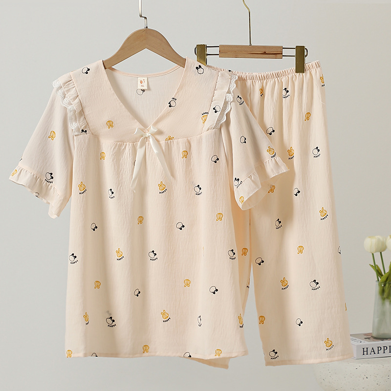 새로운 클라우드 코튼 파자마 봄과 가을 여성 홈 의류 반팔 자른 바지 투피스 세트 의류
