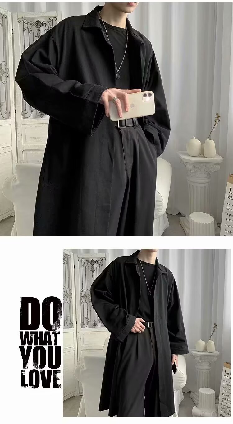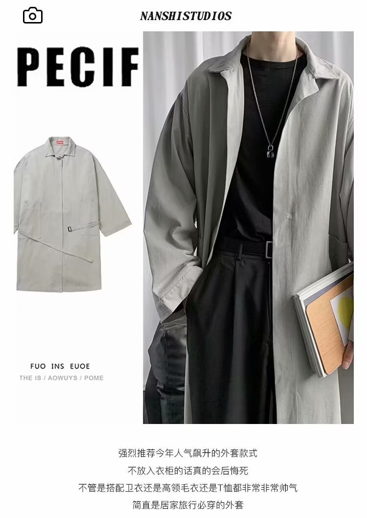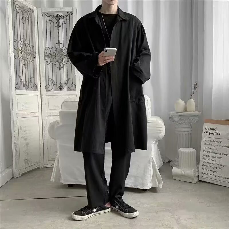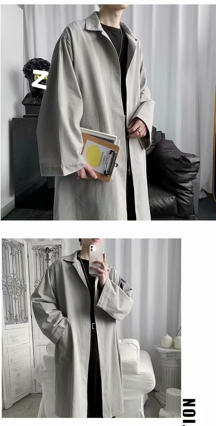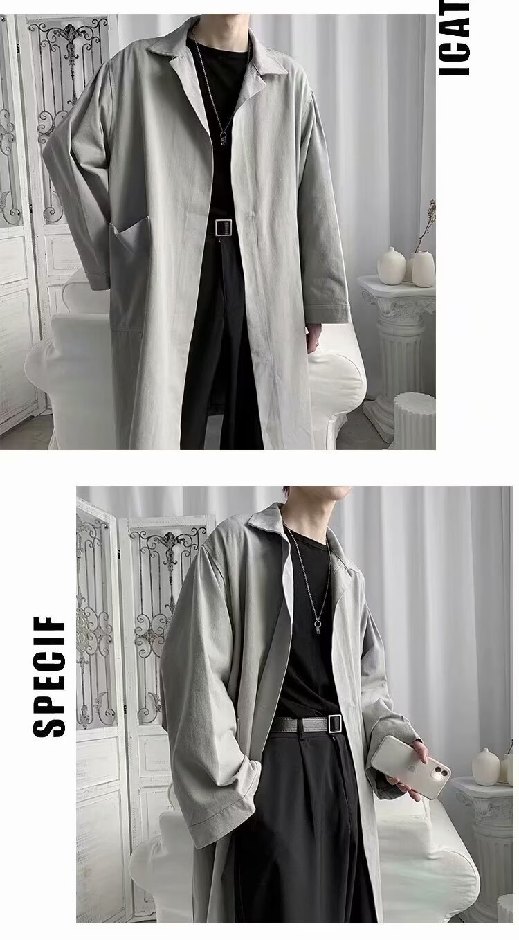 남성용 중간 길이 윈드 브레이커 가을 다목적 잘 생긴 루즈 자켓 홍콩 스타일 ins 무릎 위 코트