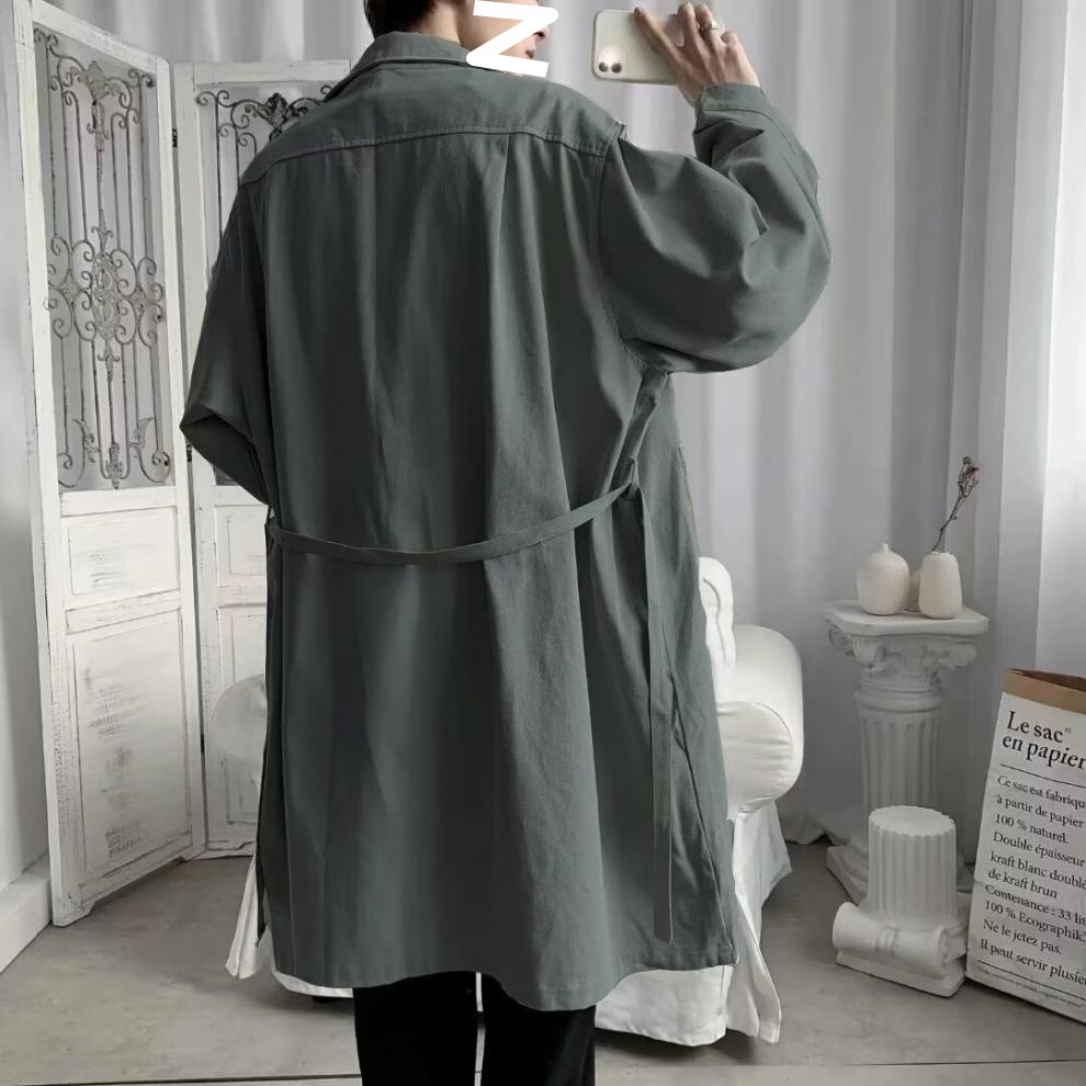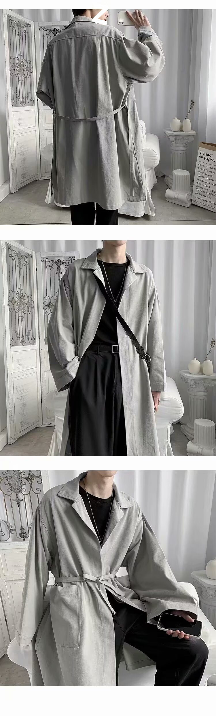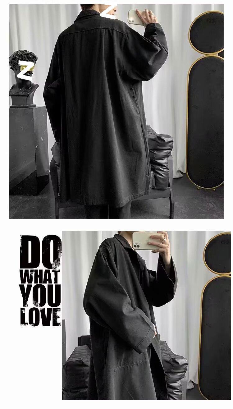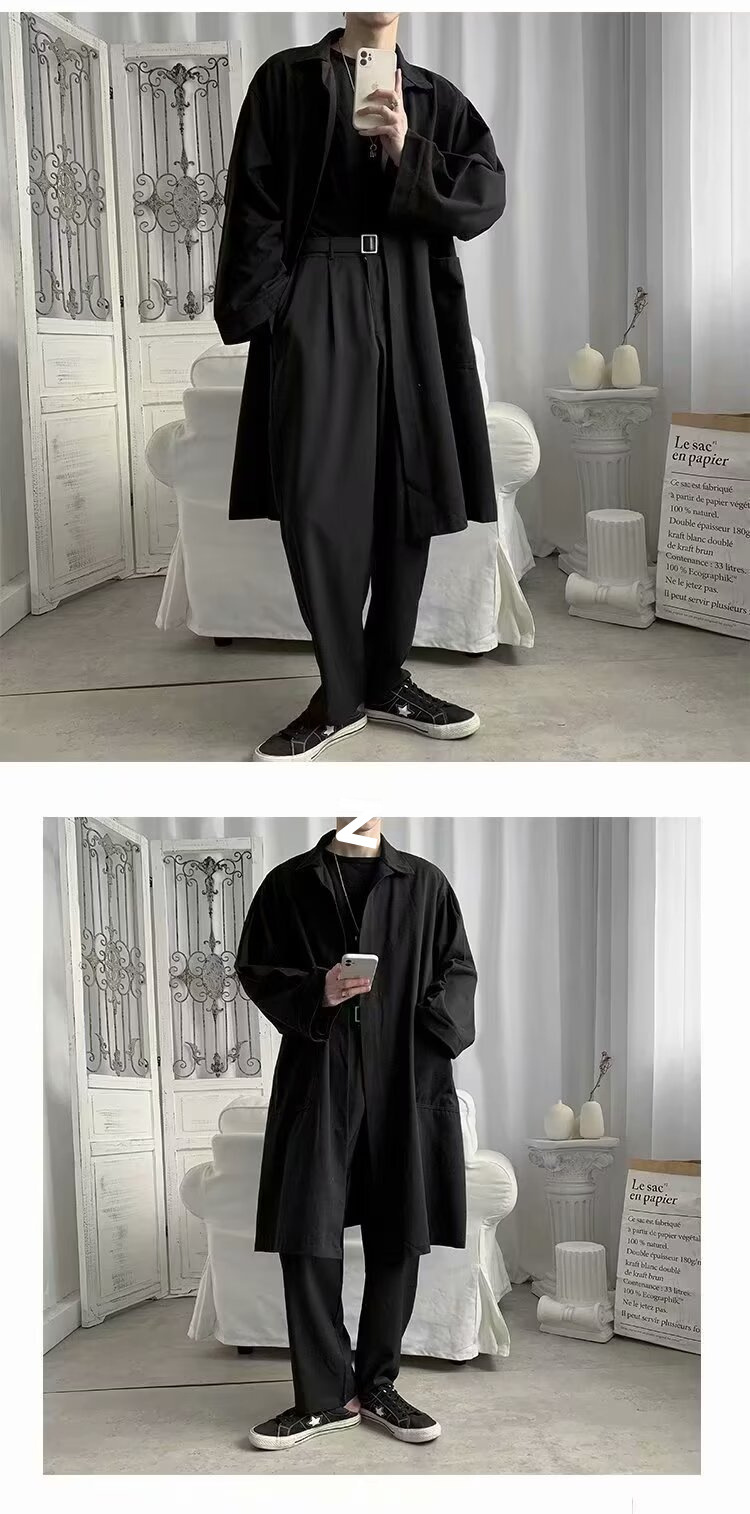 남성용 중간 길이 윈드 브레이커 가을 다목적 잘 생긴 루즈 자켓 홍콩 스타일 ins 무릎 위 코트