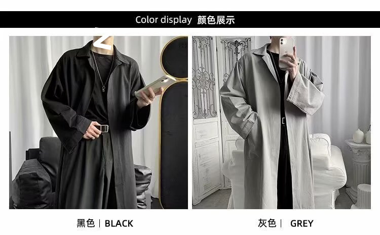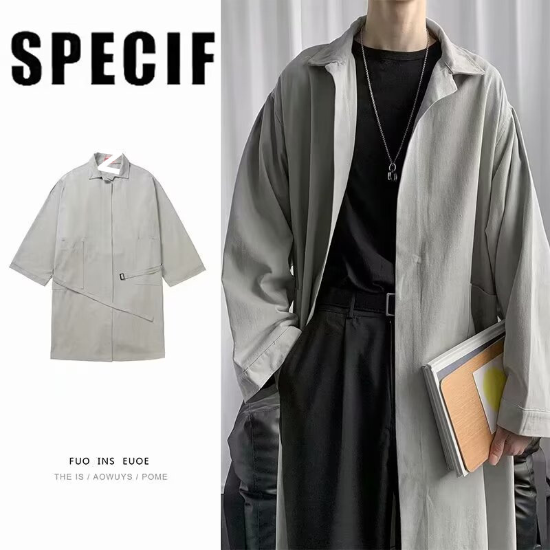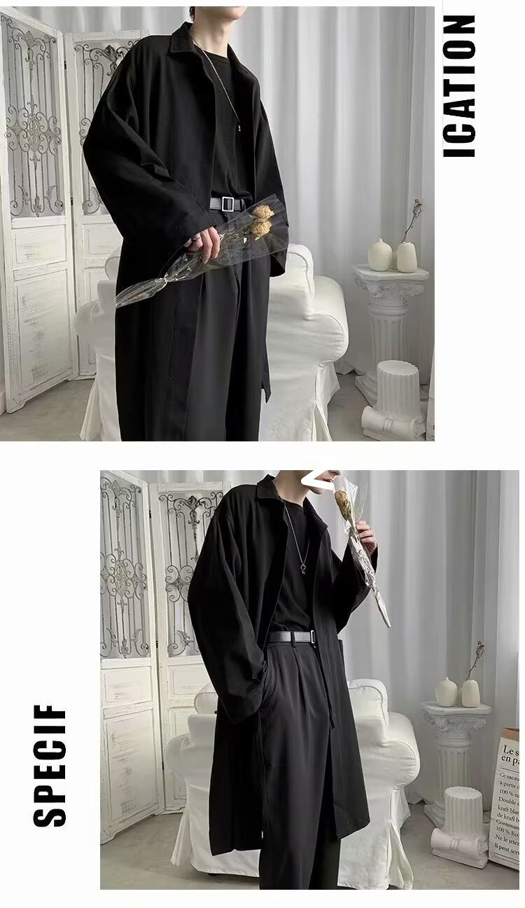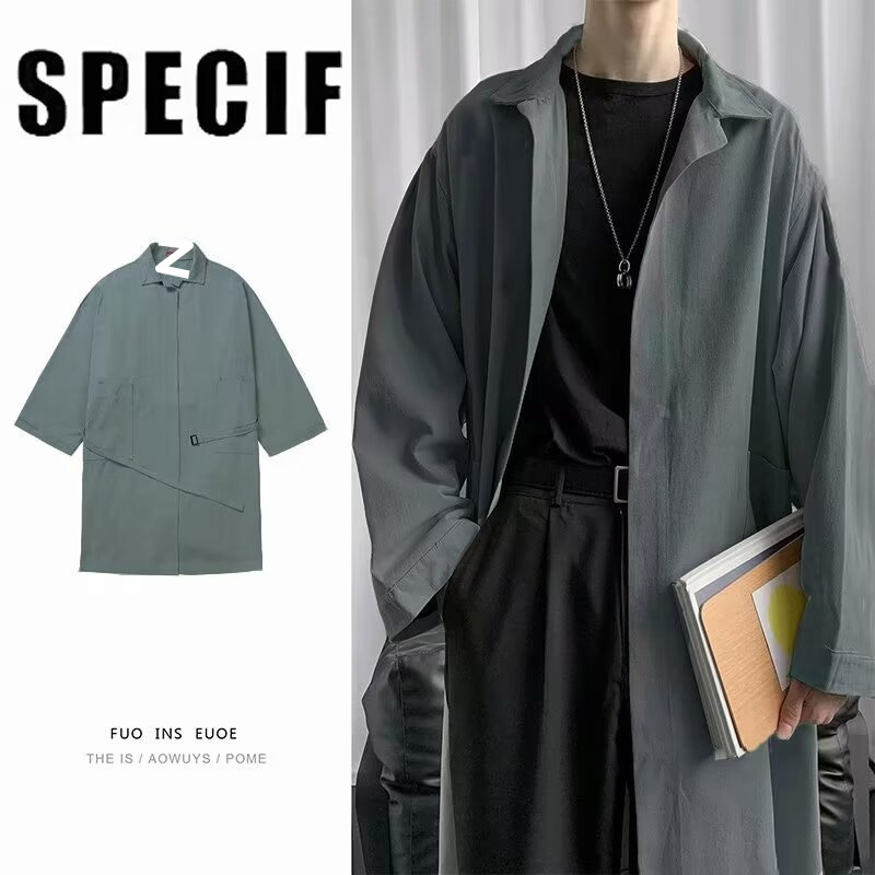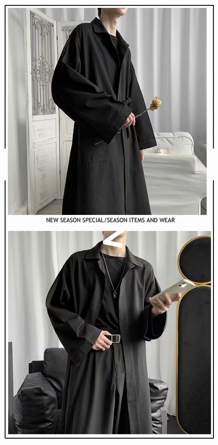 남성용 중간 길이 윈드 브레이커 가을 다목적 잘 생긴 루즈 자켓 홍콩 스타일 ins 무릎 위 코트