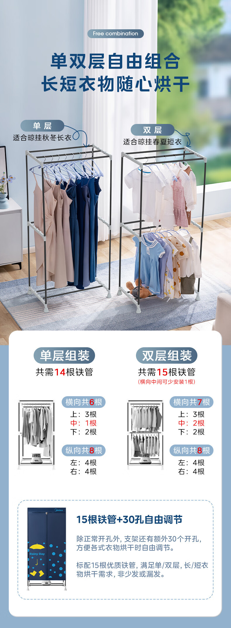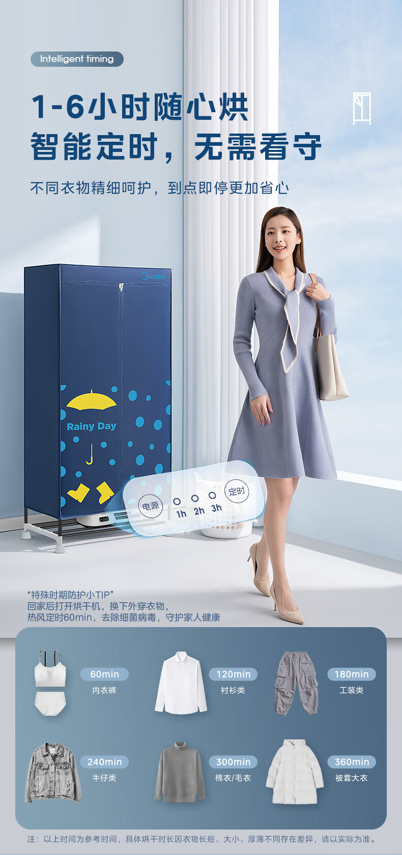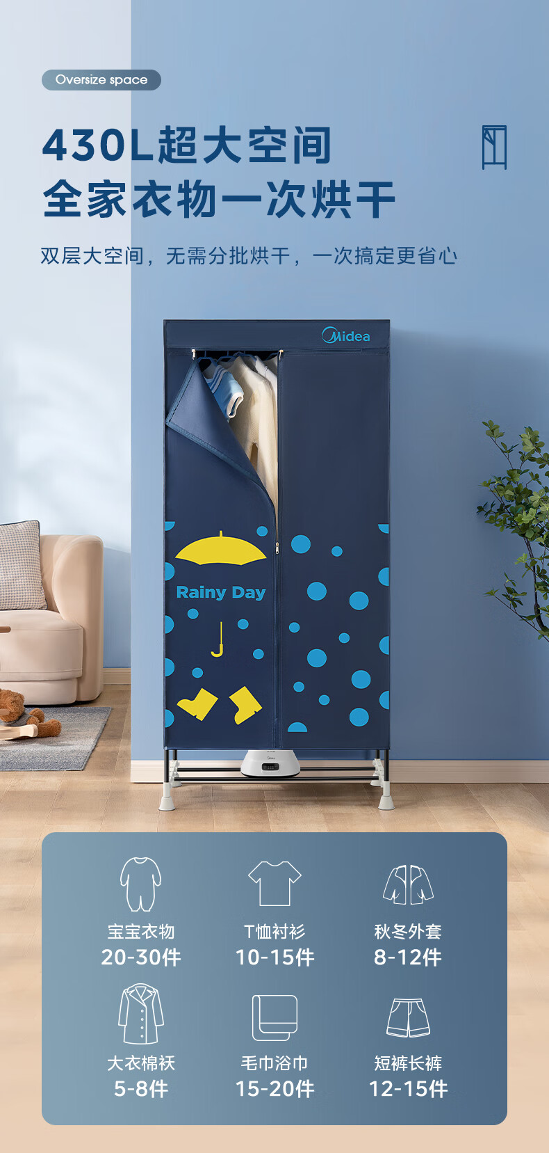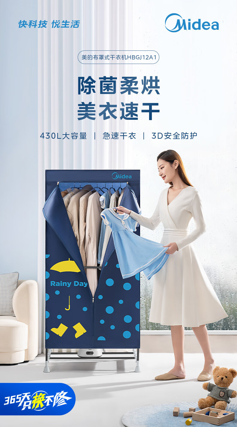 Midea/Midea 옷 건조기 HBGJ12A1 가정용 옷장 아기 옷 건조 기계 Degerm 부드러운 건조 옷장