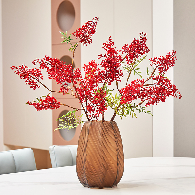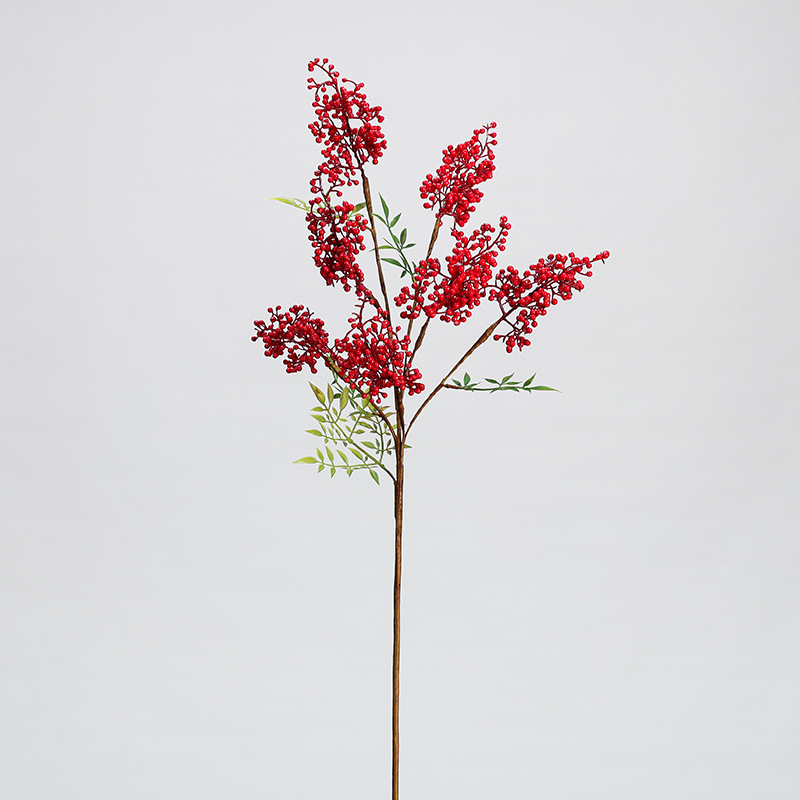 시뮬레이션 식물 Nantianthus 대나무 베리 지점 레드 과일 홀리 과일 홈 호텔 모델 룸 장식 웨딩 사진 소품