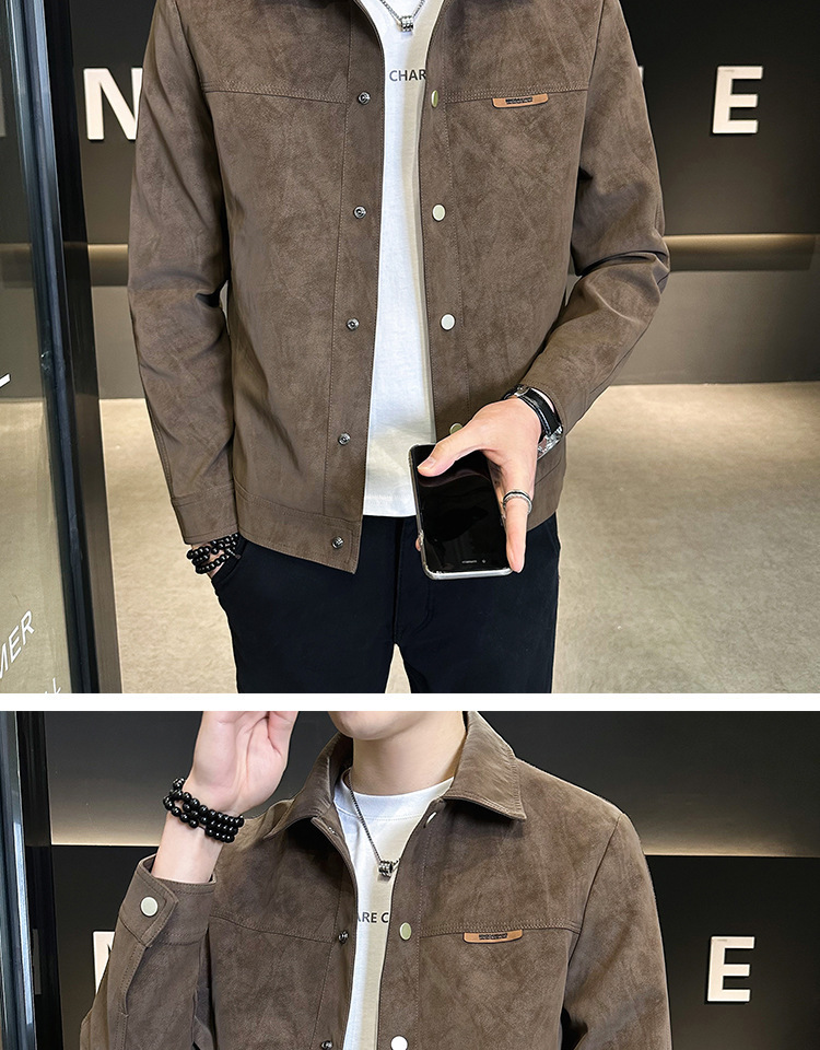 국경 간 재킷 남자 봄과 가을 2024 새로운 패션 브랜드 스웨이드 캐주얼 자켓 남성 의류