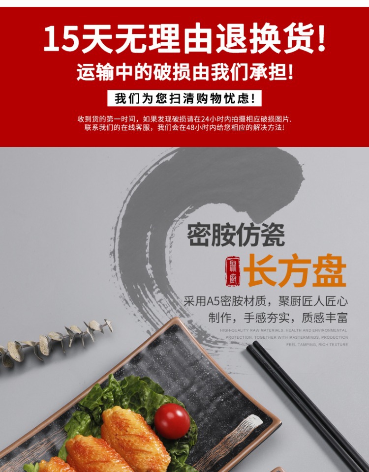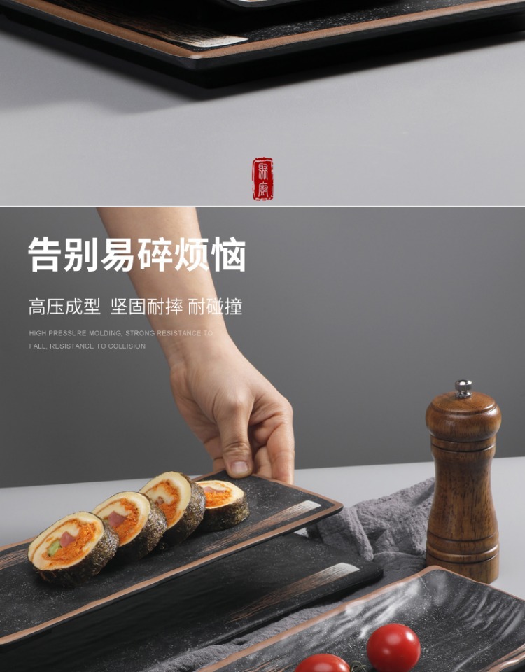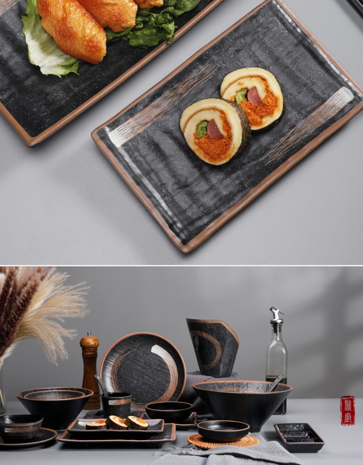 일본식 멜라민 바베큐 접시 냄비 레스토랑 특별 식기 직사각형 바베큐 상업 식기 선술집 냄비 반찬 접시