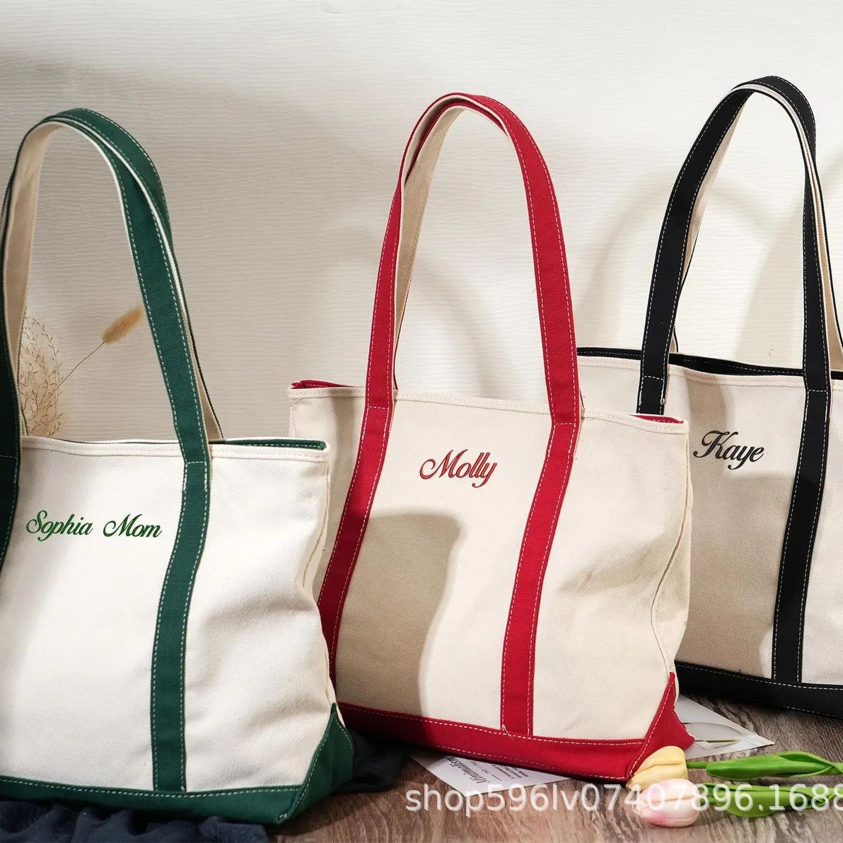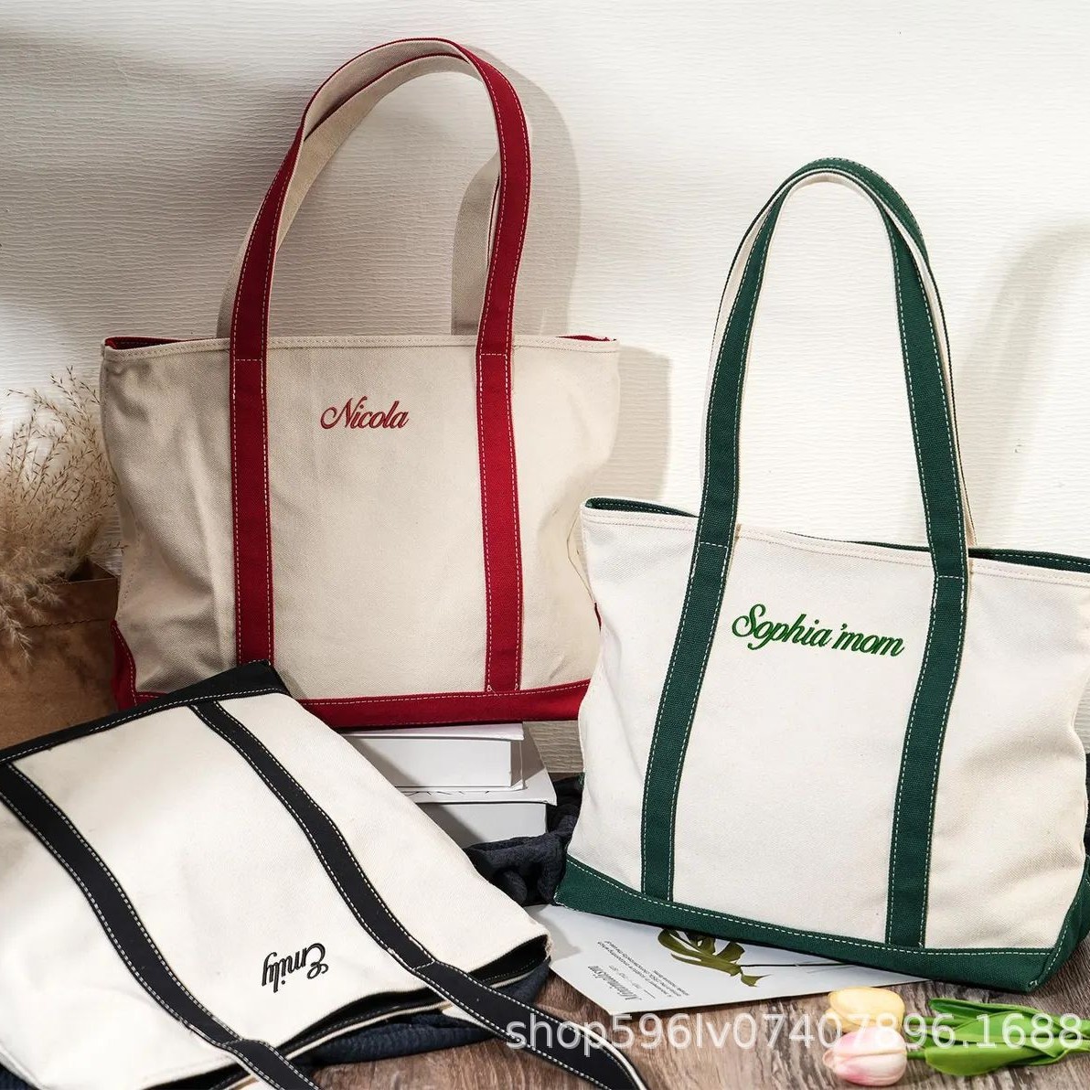 Etsy 개인화 된 자수 이름 토트 백 결혼식 신부 들러리 선물 패션 캔버스 숄더백