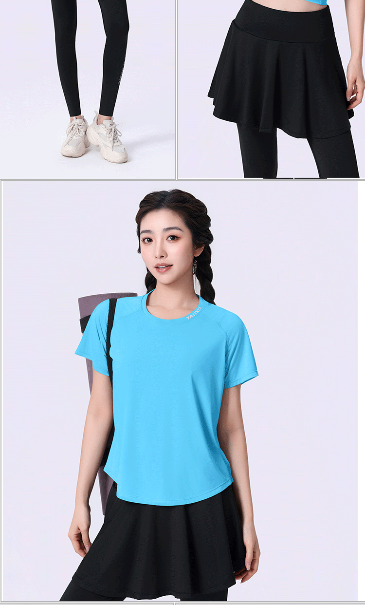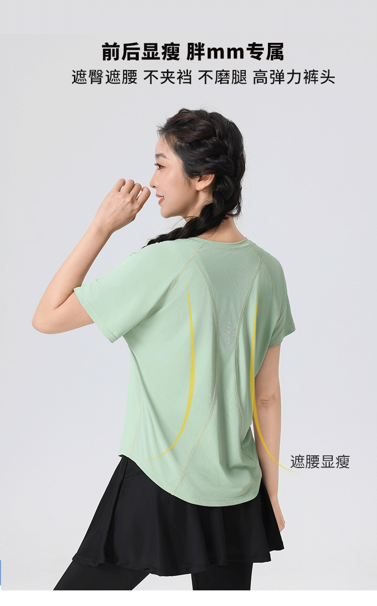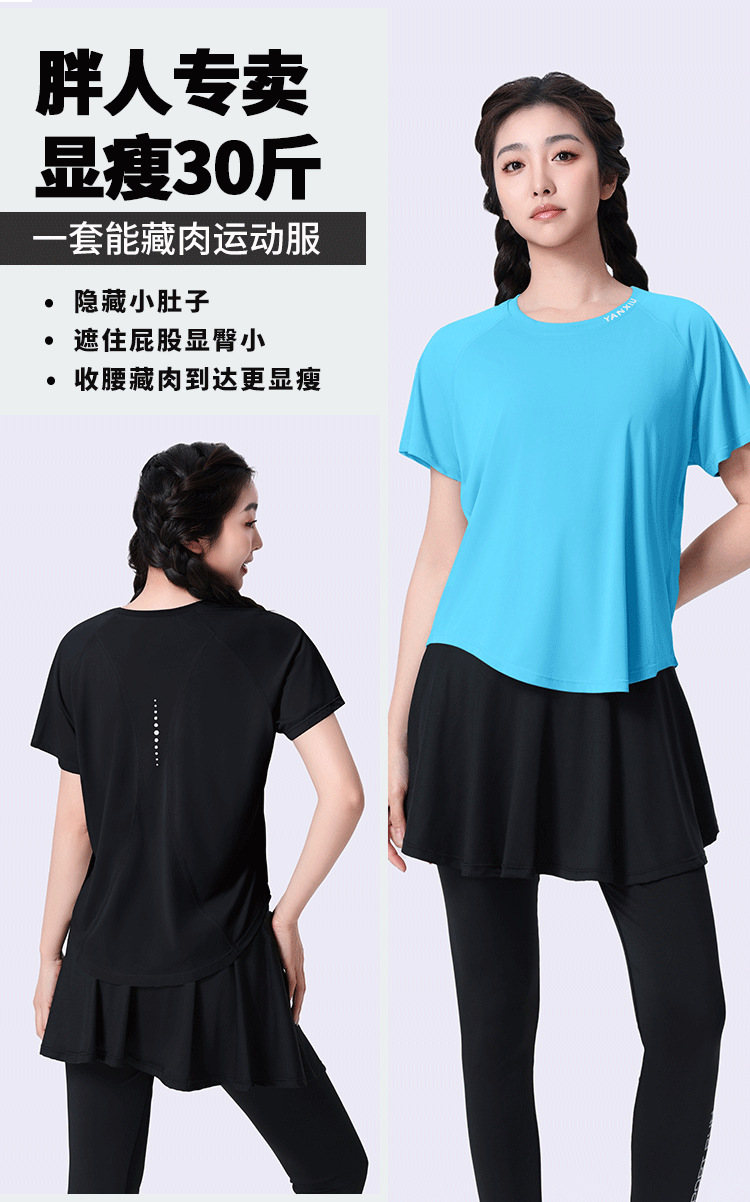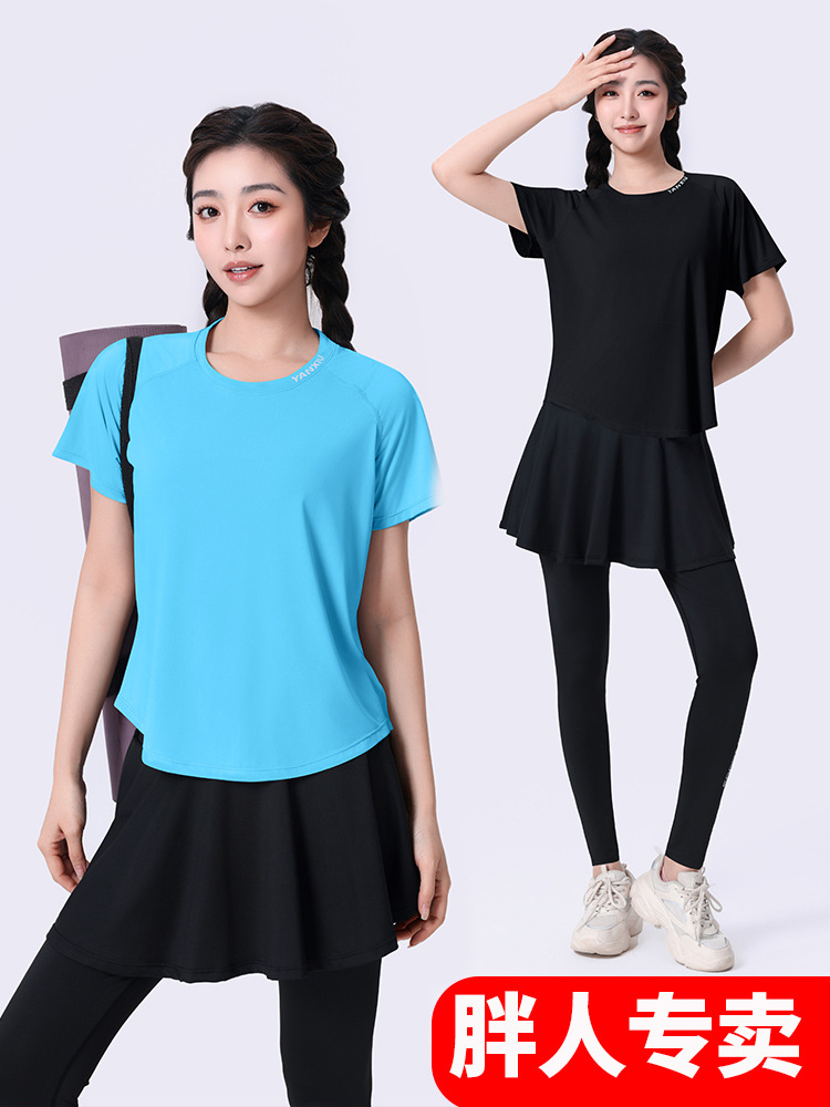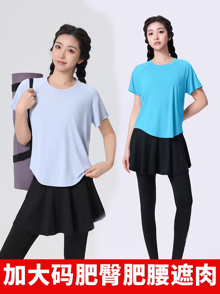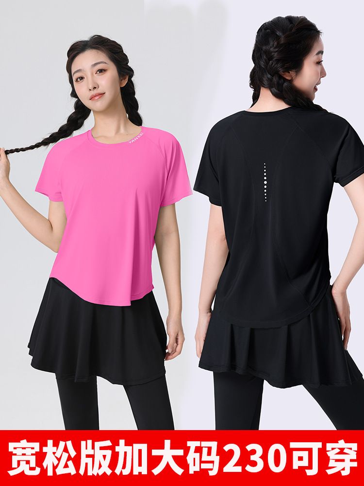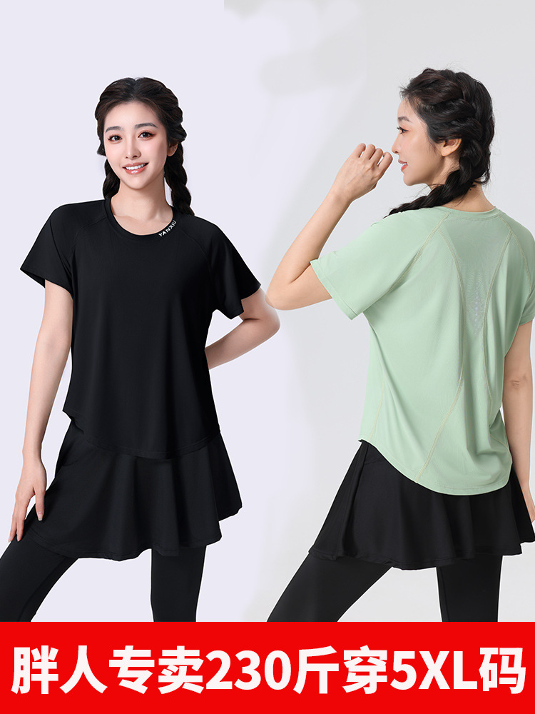 플러스 사이즈 빠른 건조 느슨한 요가 반팔 짧은 티셔츠 슬리밍 피트니스 여성용 봄과 여름 통통녀 스포츠웨어