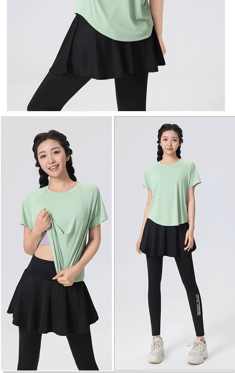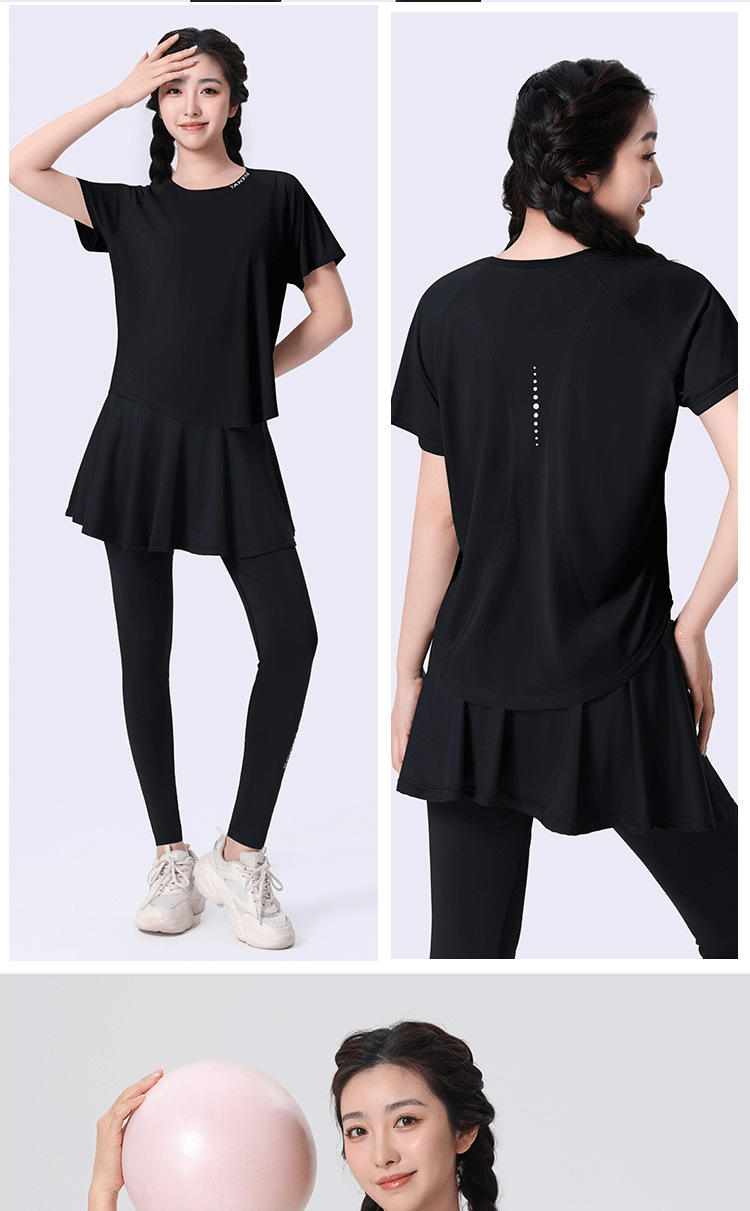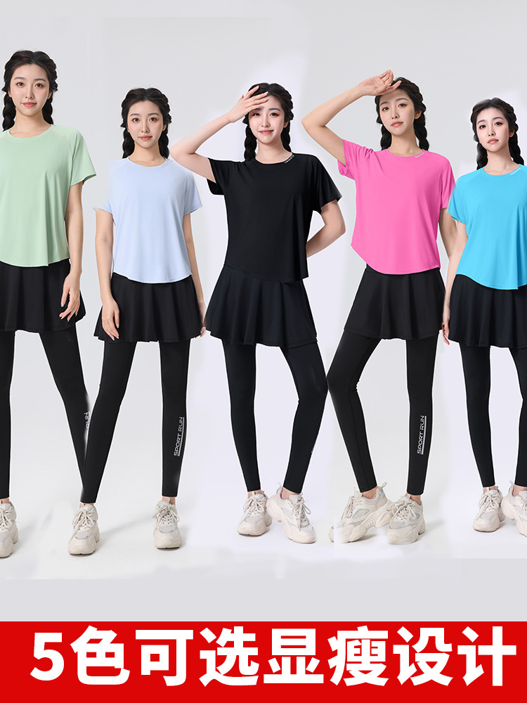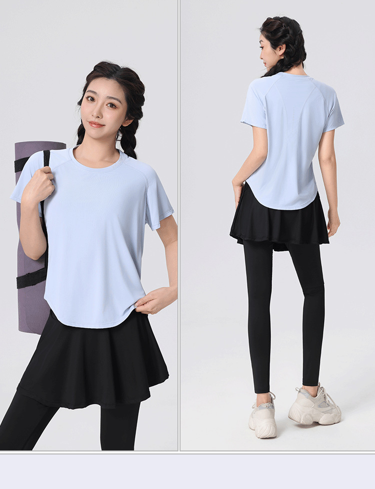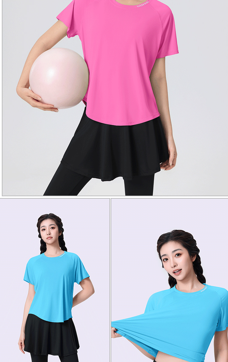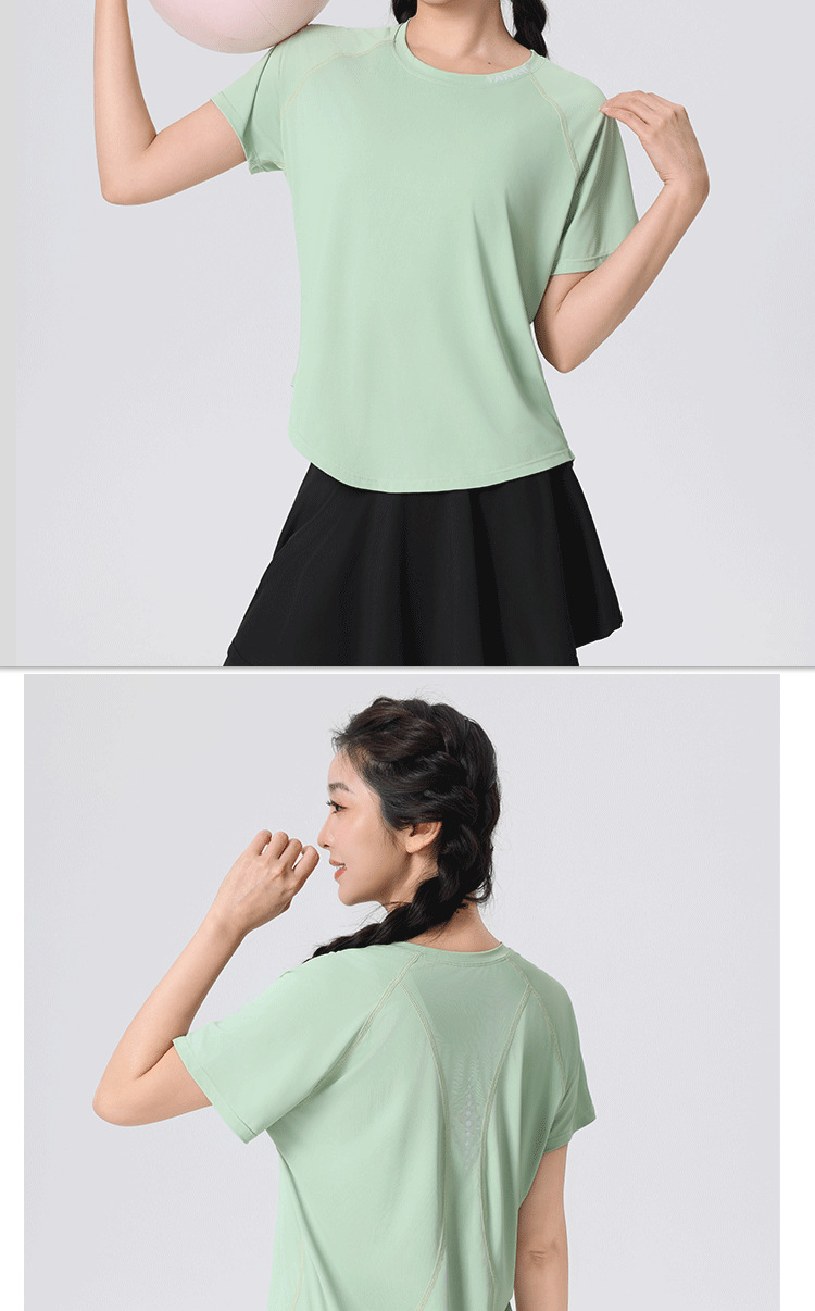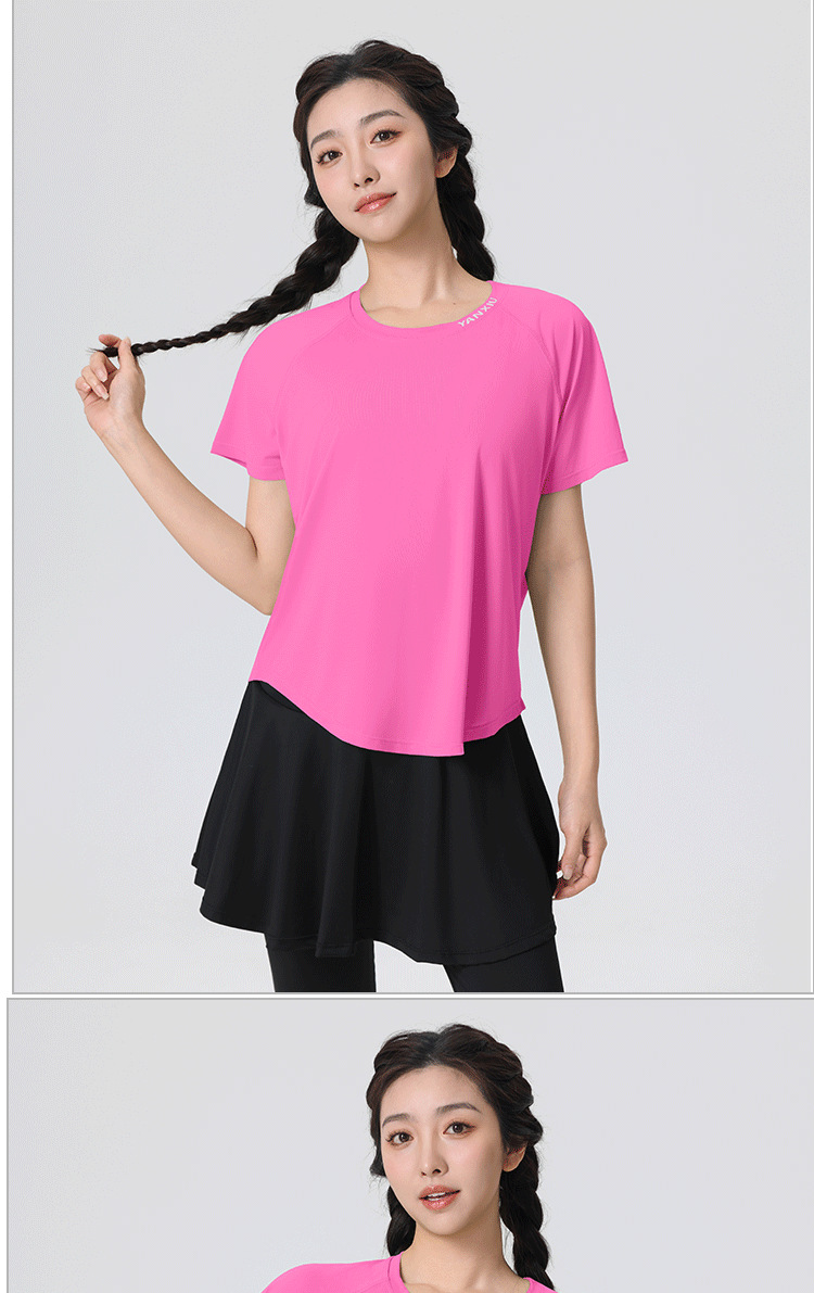플러스 사이즈 빠른 건조 느슨한 요가 반팔 짧은 티셔츠 슬리밍 피트니스 여성용 봄과 여름 통통녀 스포츠웨어
