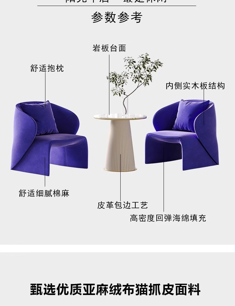 현대 심플 라이트 럭셔리 스타일 싱글 의자 사이버 인기 도파민 크리에이티브 테이블과 의자 조합 레크리에이션 및 협상 휴게소 레저 의자