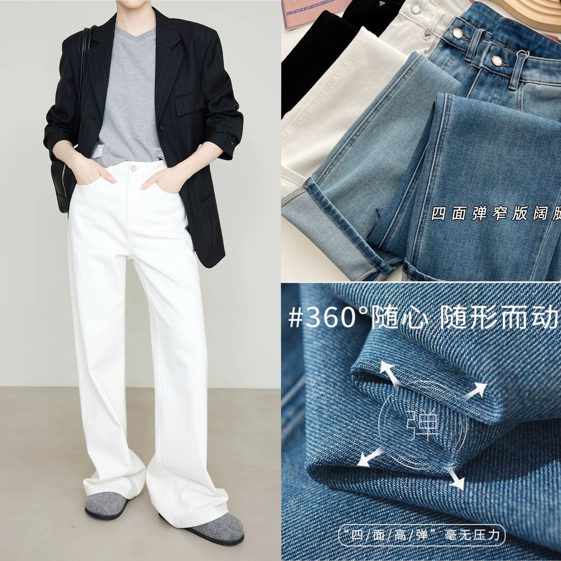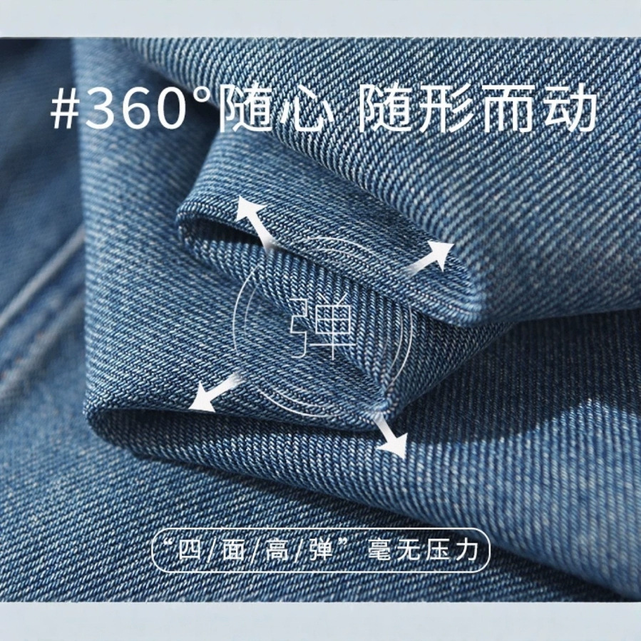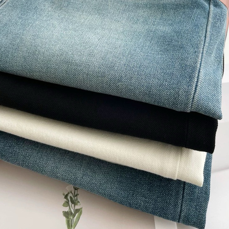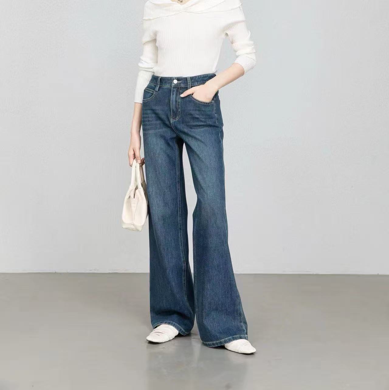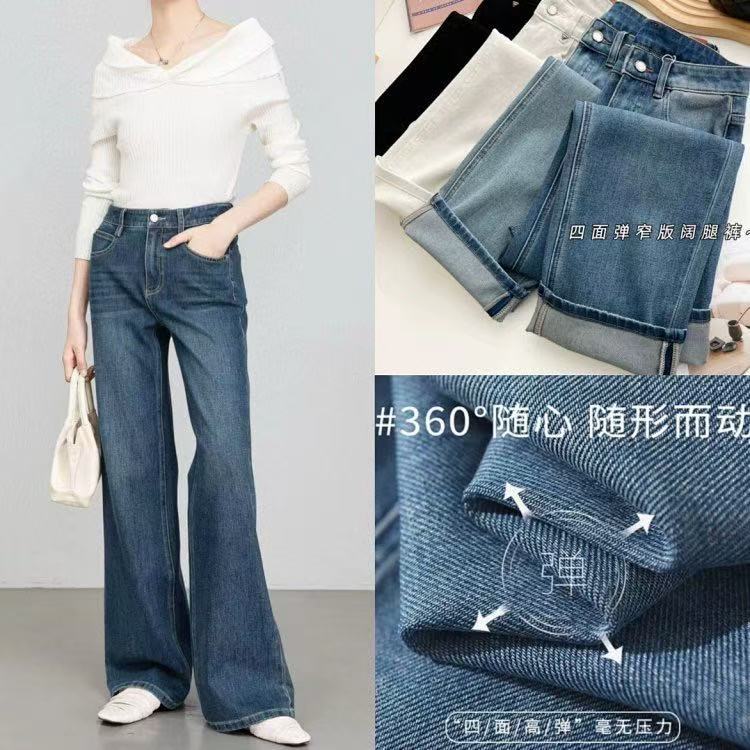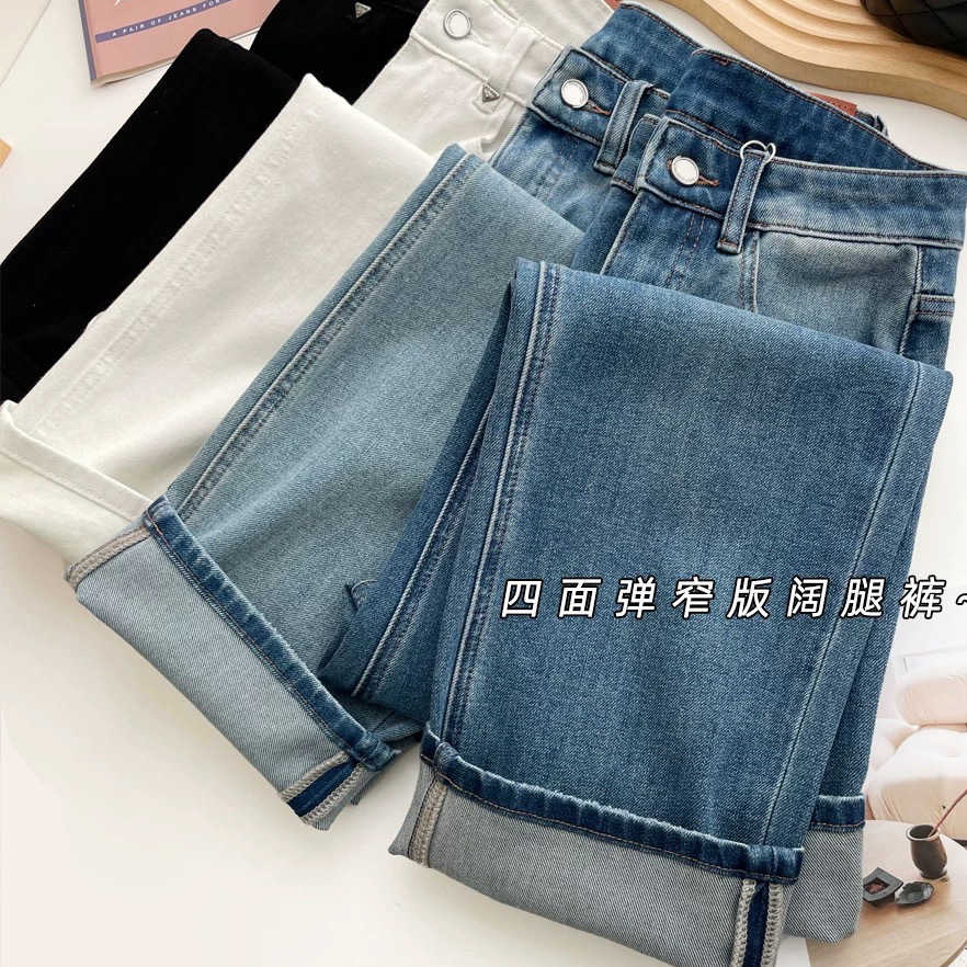 편안한 4방향 고탄성 스트레이트 레트로 블루 데님 팬츠 여성용 2026 봄 여름 신상 루즈핏 와이드 팬츠