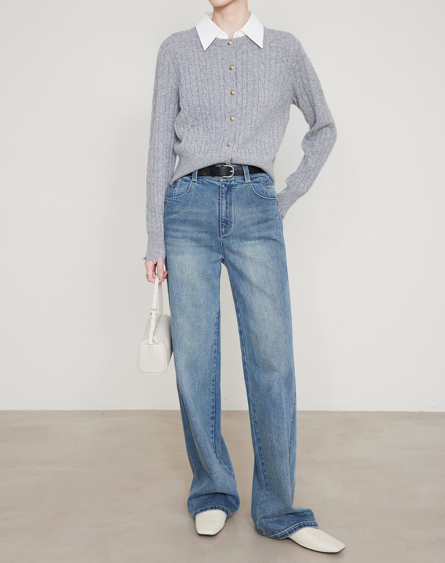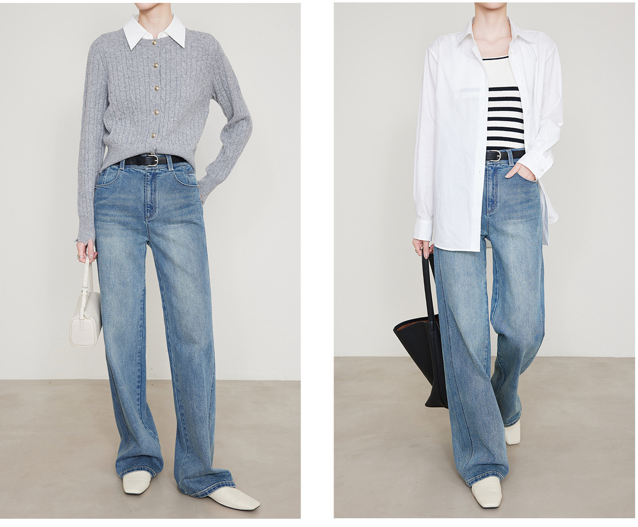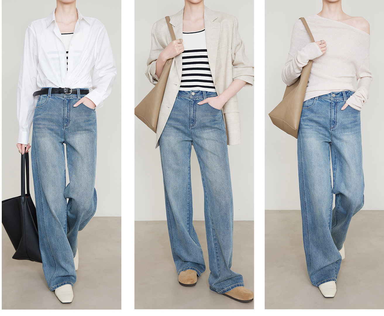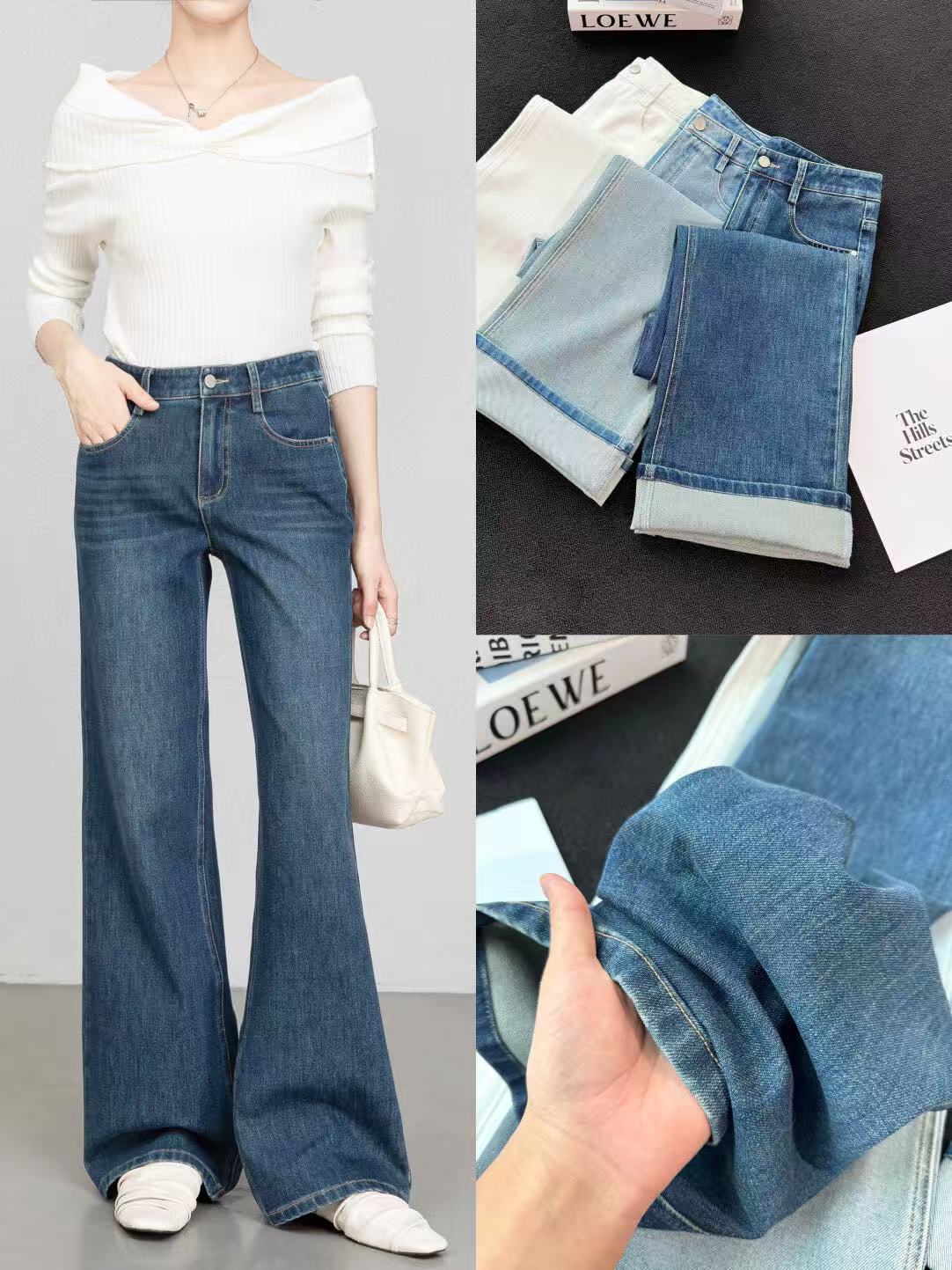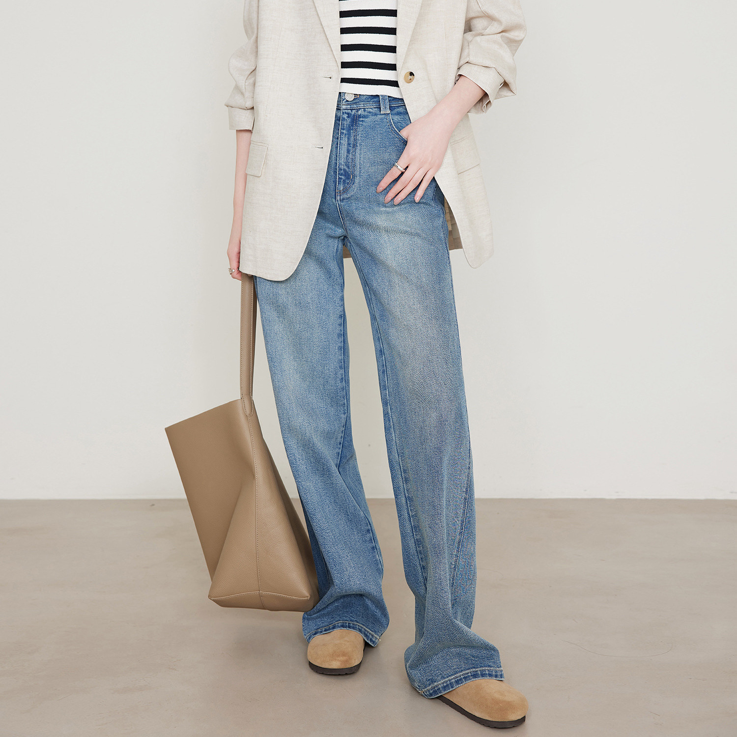 편안한 4방향 고탄성 스트레이트 레트로 블루 데님 팬츠 여성용 2026 봄 여름 신상 루즈핏 와이드 팬츠