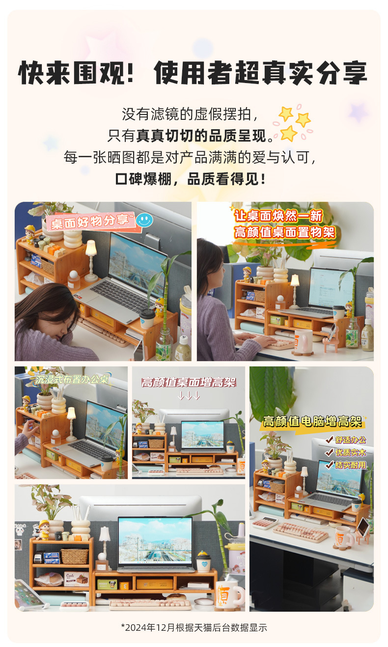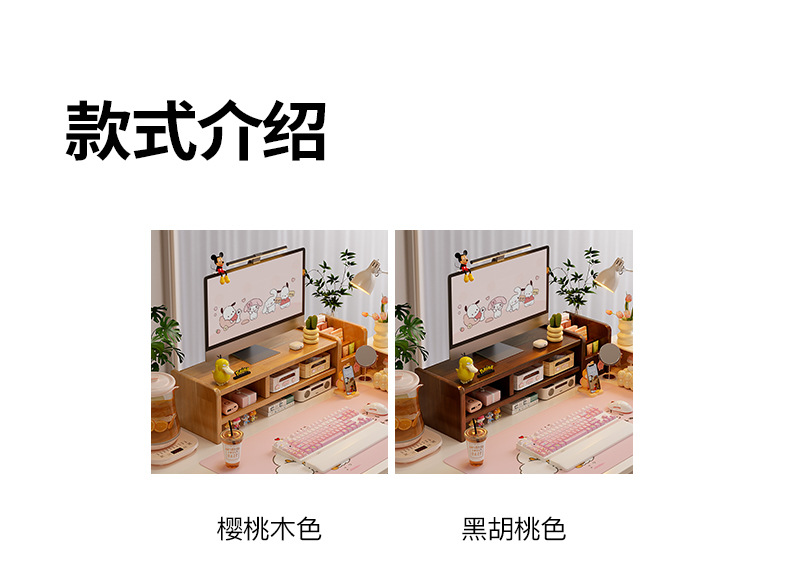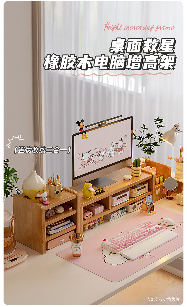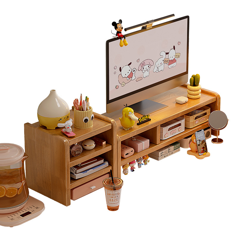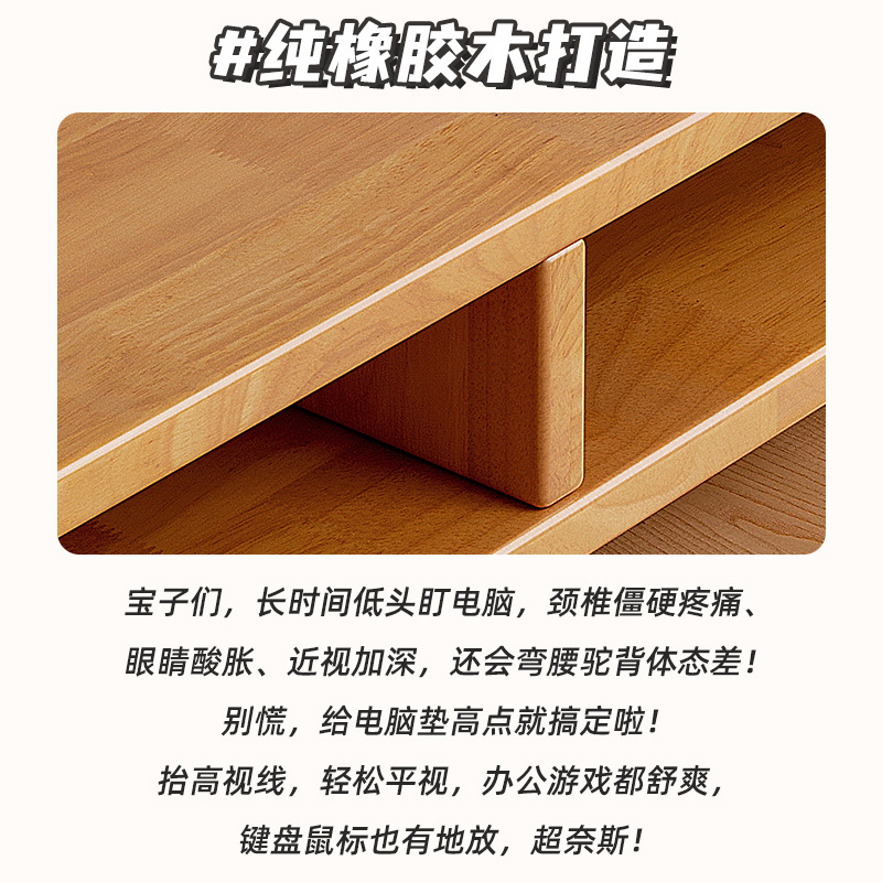 全实木台式电脑显示器增高架家用办公室桌面置物架工位展示收纳架