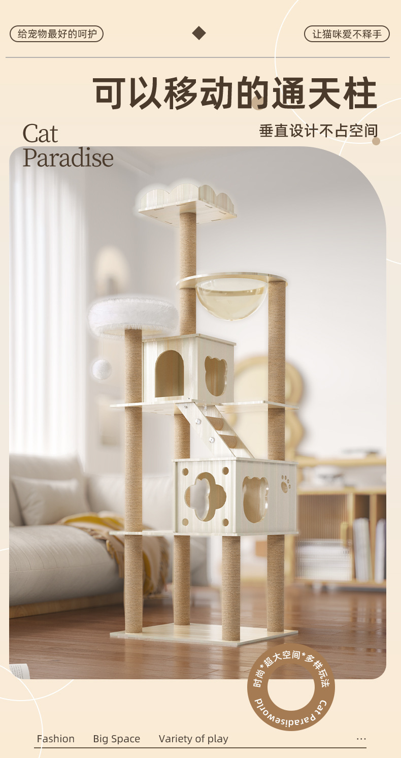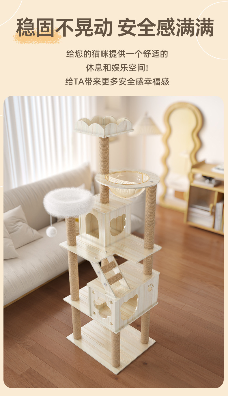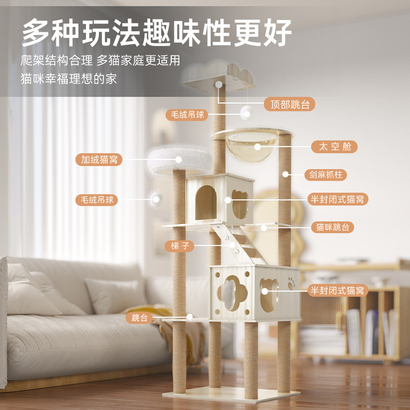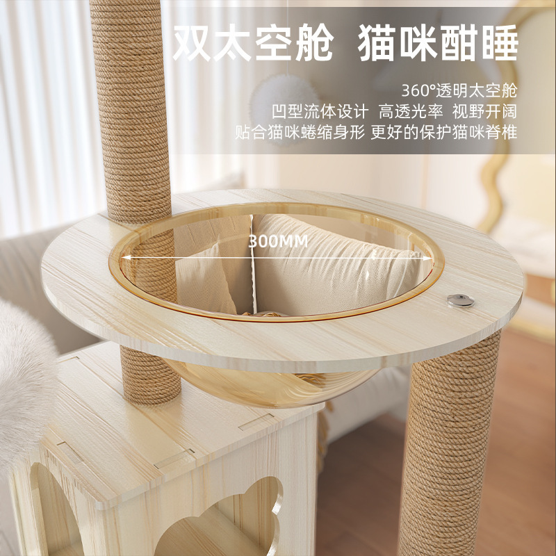 대형 우주 캡슐 고양이 둥지, 고양이 트리, 일체형 고양이 선반, 고양이 스크래치 보드, 고양이 스크래치 기둥, 고양이 점프 플랫폼을 갖춘 나무 고양이 클라이밍 프레임을 배송합니다.