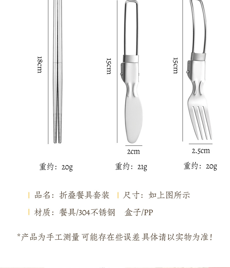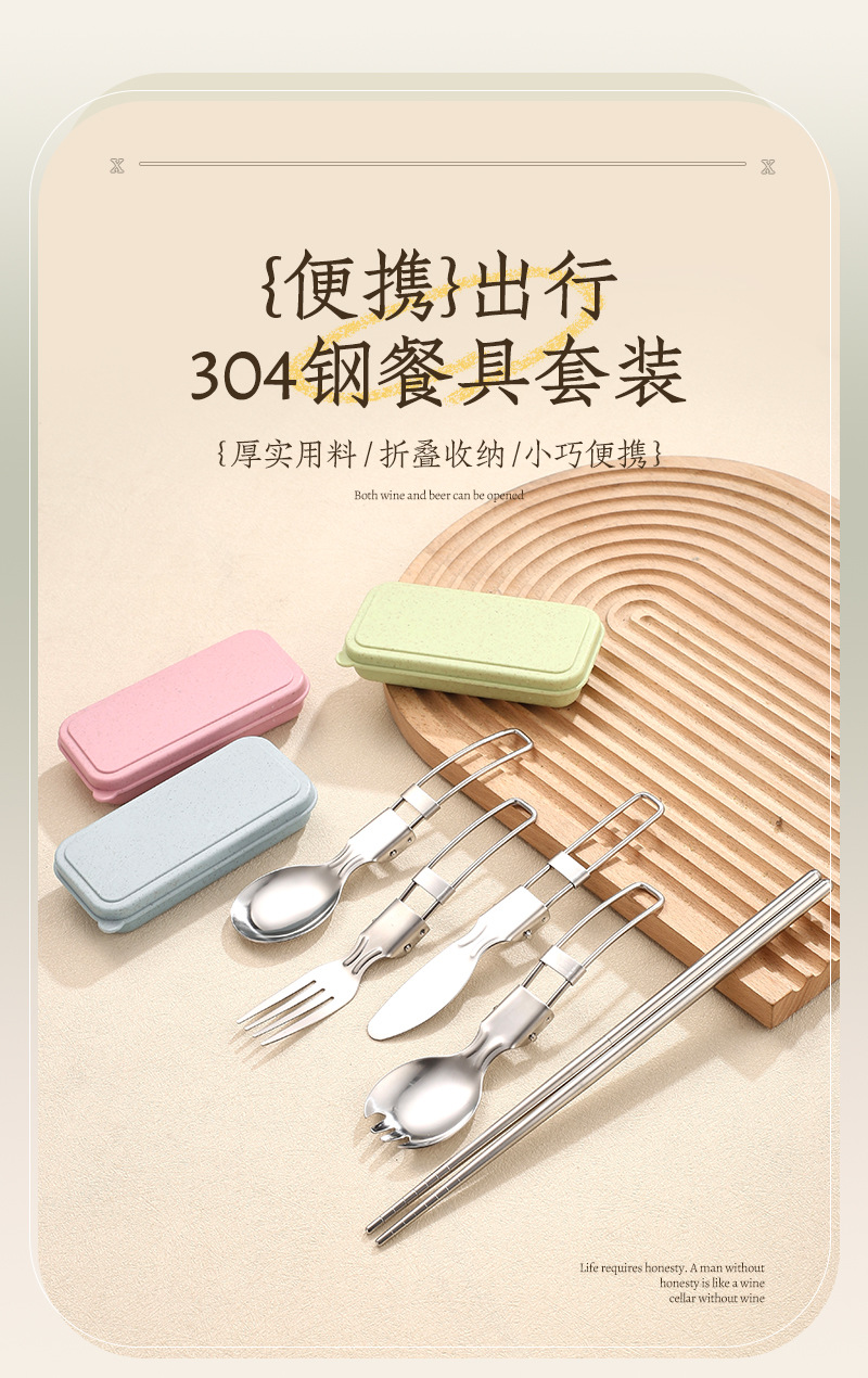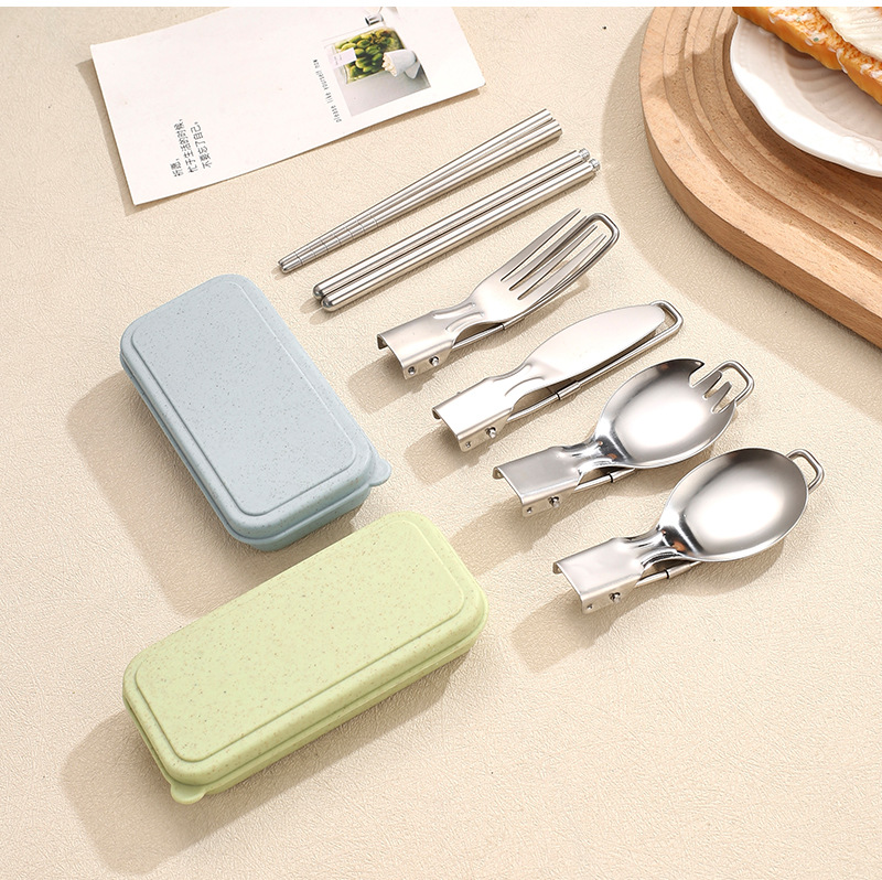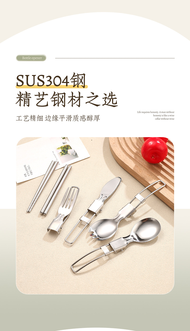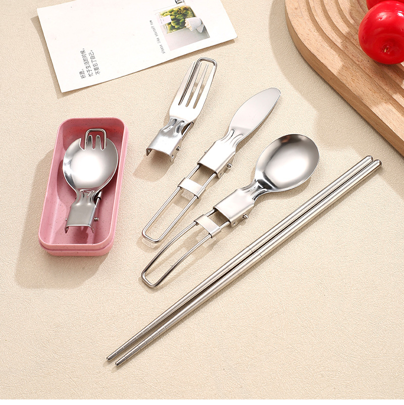 국경 304 접이식 식기 세트 나이프와 포크 스푼 접힌 숟가락 젓가락 야외 피크닉 여행 휴대용 접이식