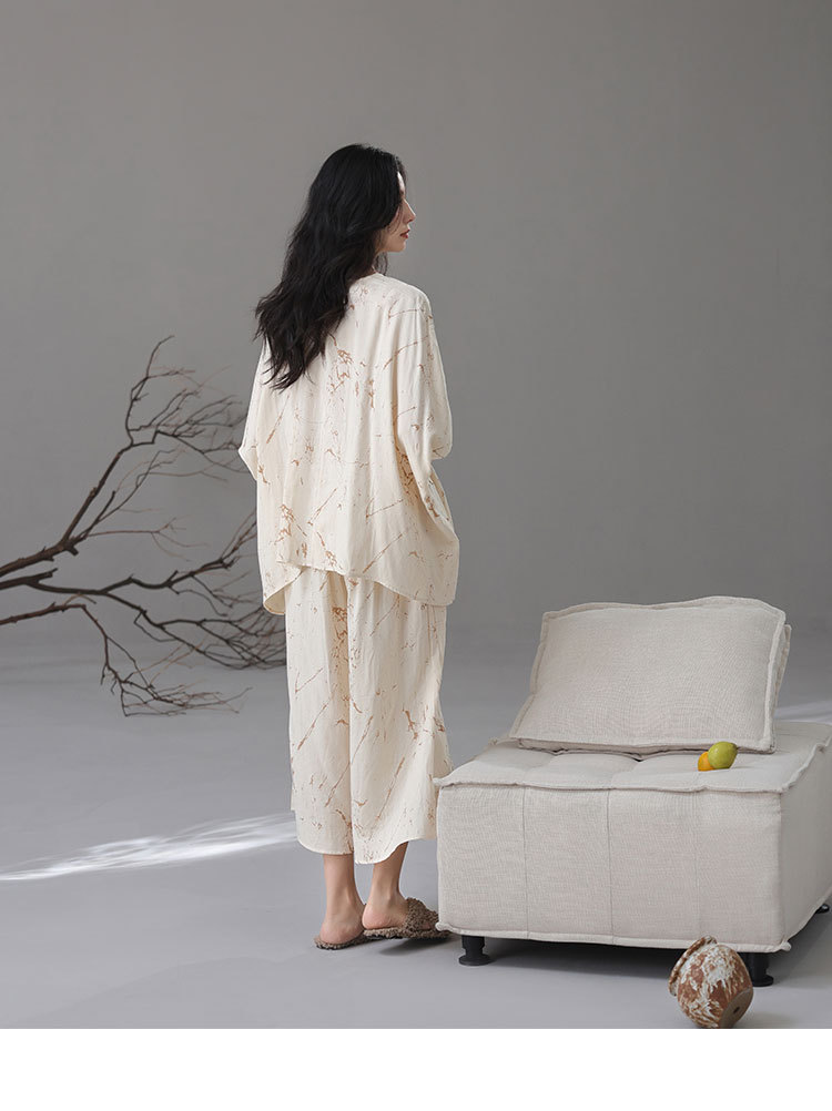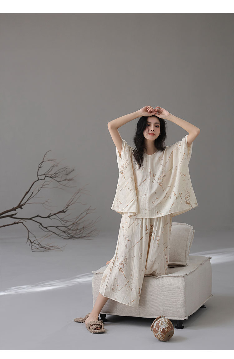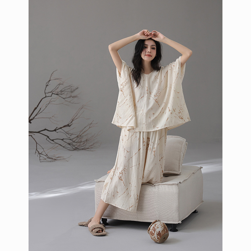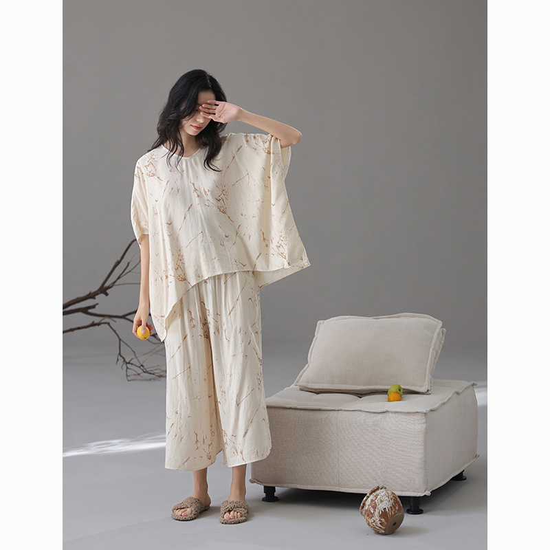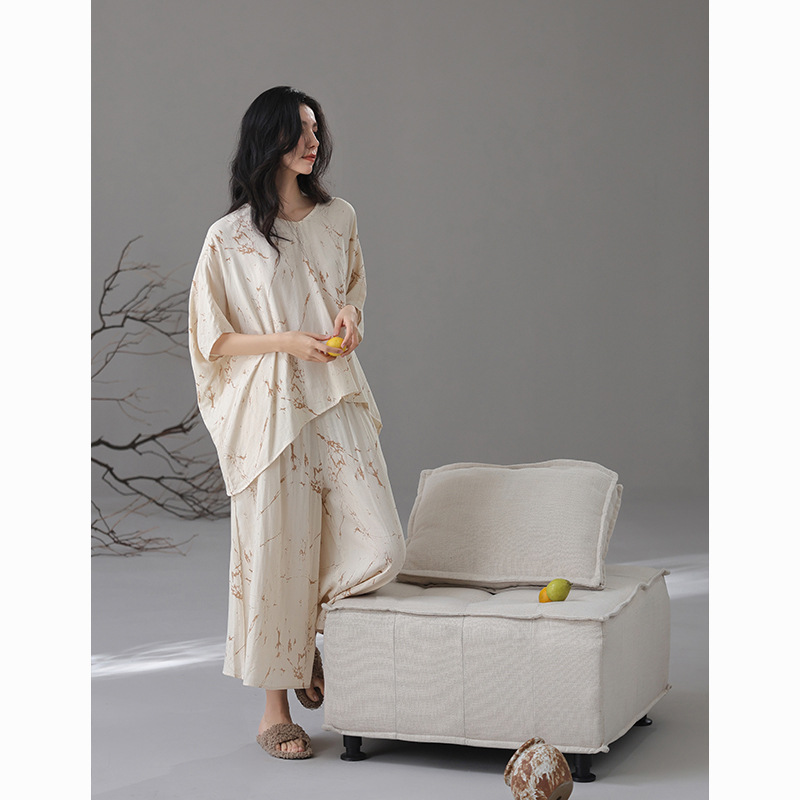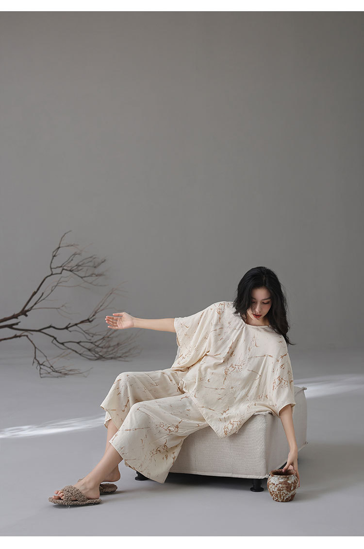 [대나무 섬유] 여성용 봄 여름 새 스타일 잠옷 대나무 면 느슨한 게으른 와비사비 스타일 여성용 부드러운 홈웨어 세트