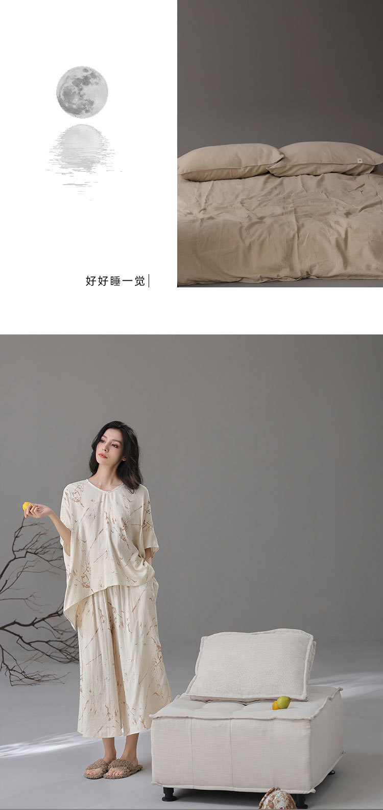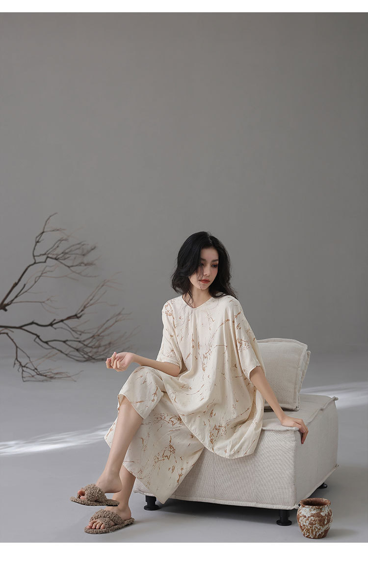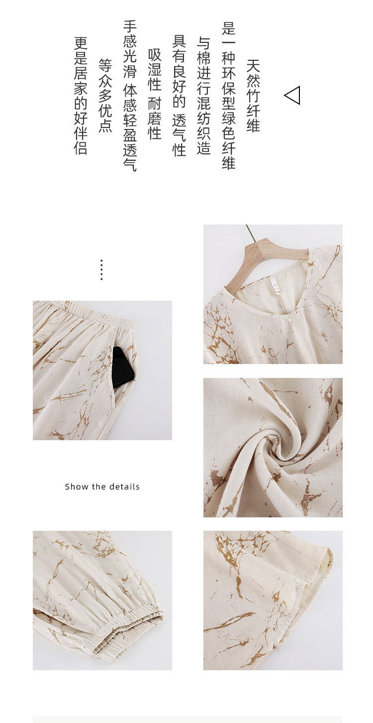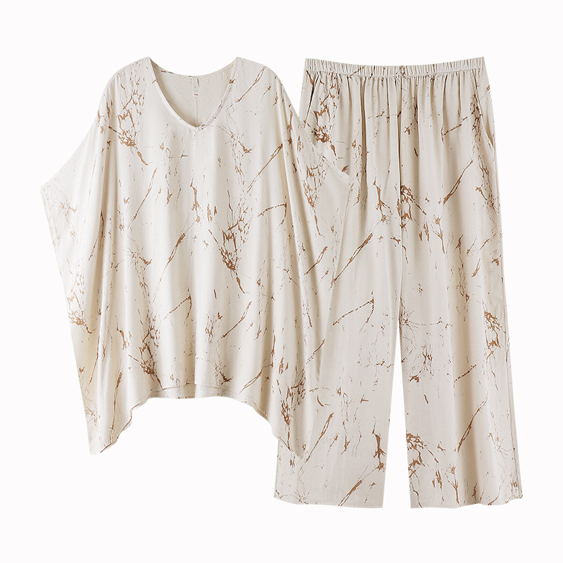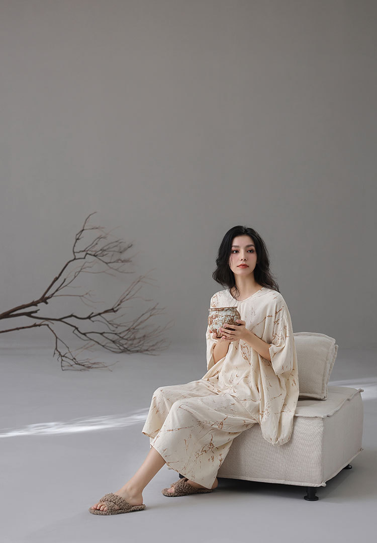 [대나무 섬유] 여성용 봄 여름 새 스타일 잠옷 대나무 면 느슨한 게으른 와비사비 스타일 여성용 부드러운 홈웨어 세트