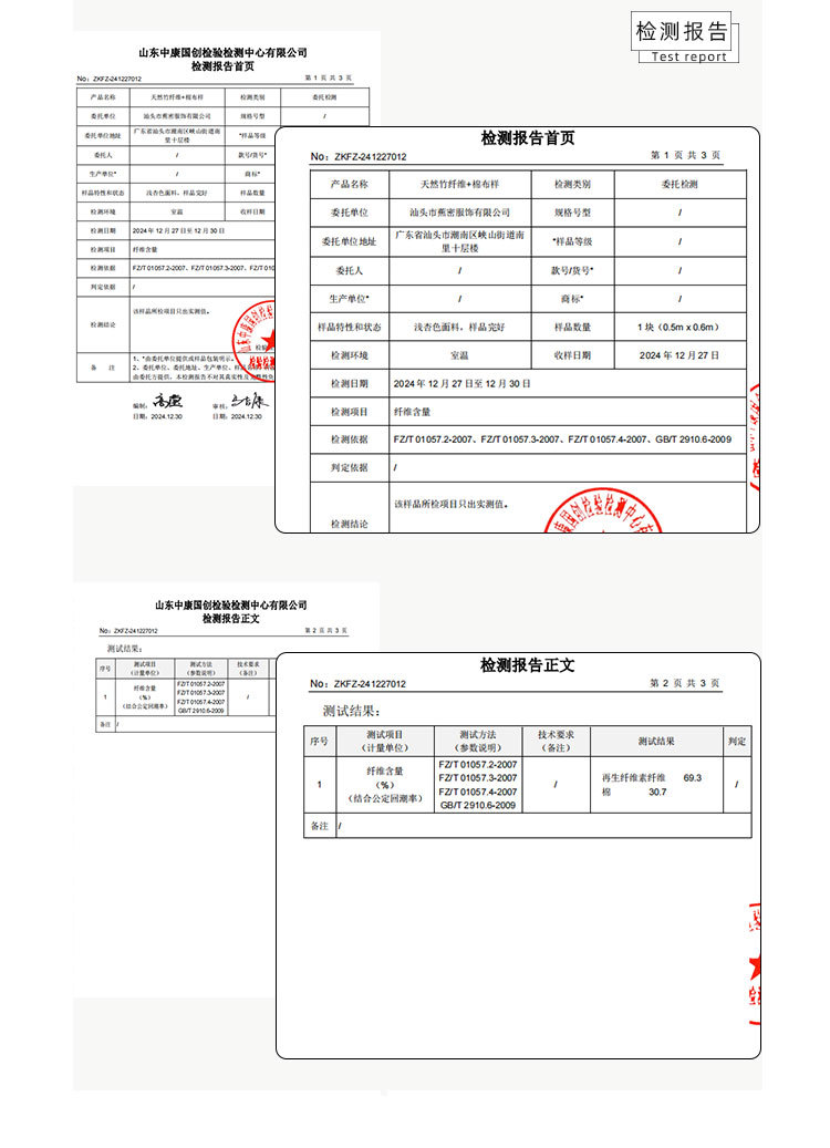 주요 원단 성분 함량
