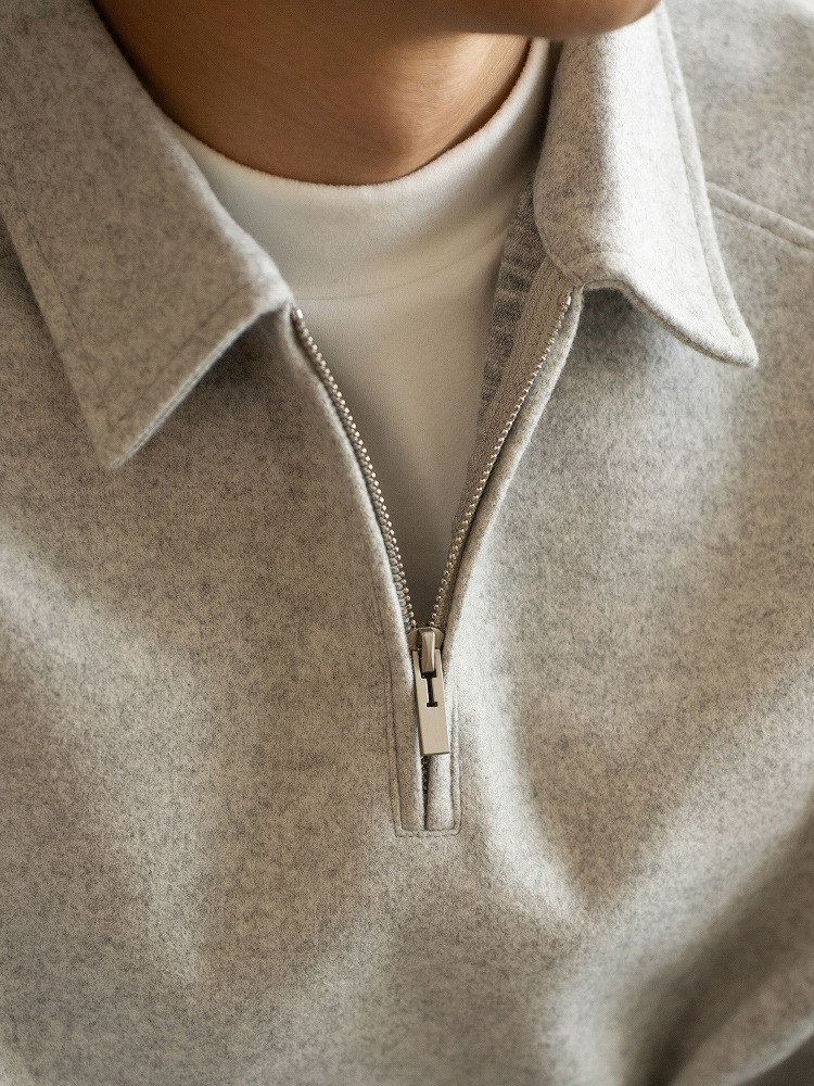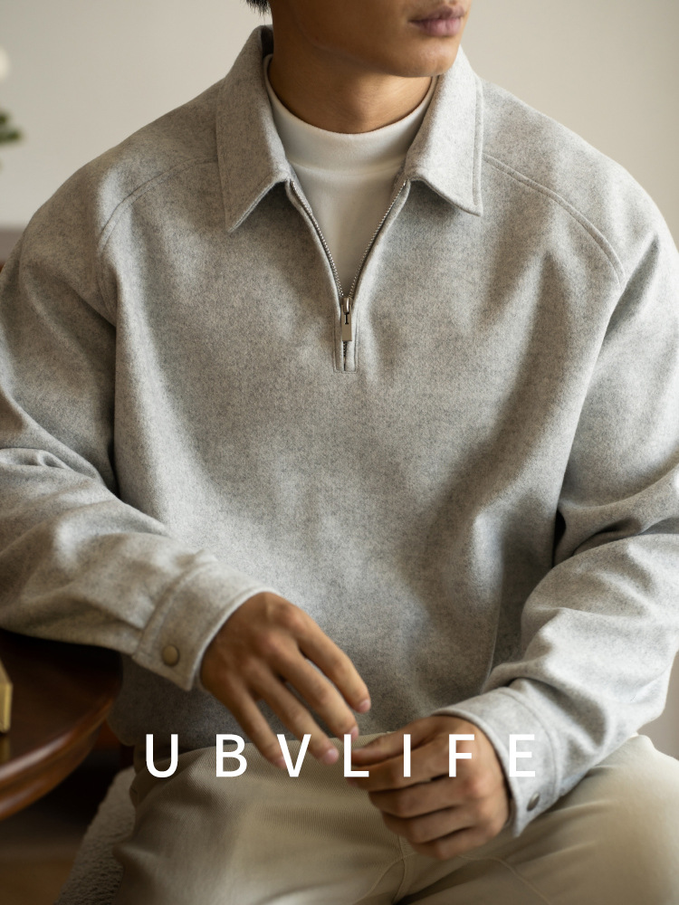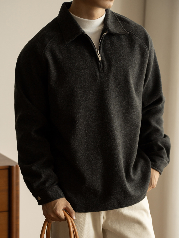 미국식 에어레이어 코튼 하프 지퍼 올드머니 스타일 스웨트셔츠 남성용 2026 봄 신상 드롭숄더 긴팔 폴로셔츠
