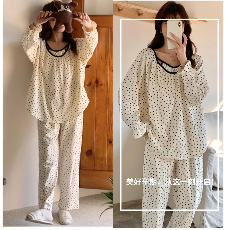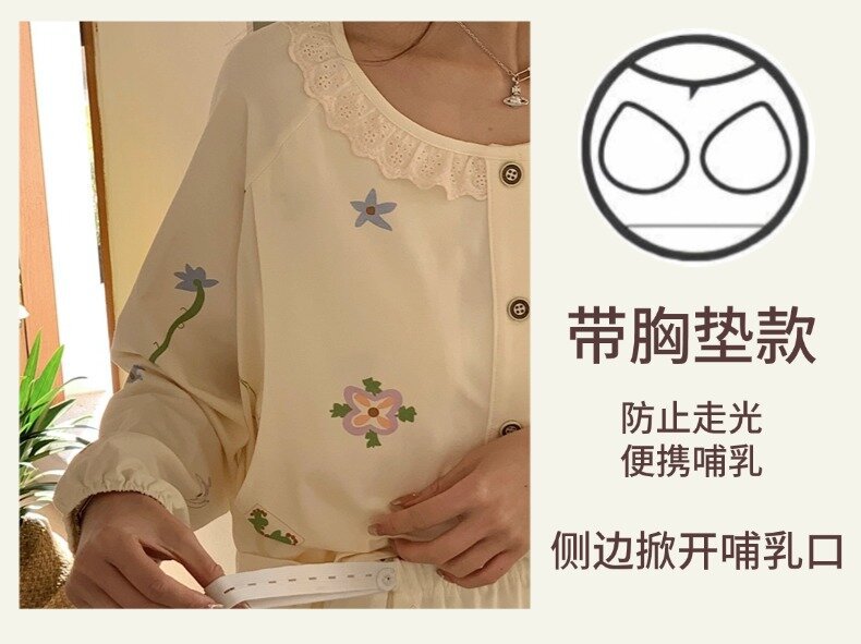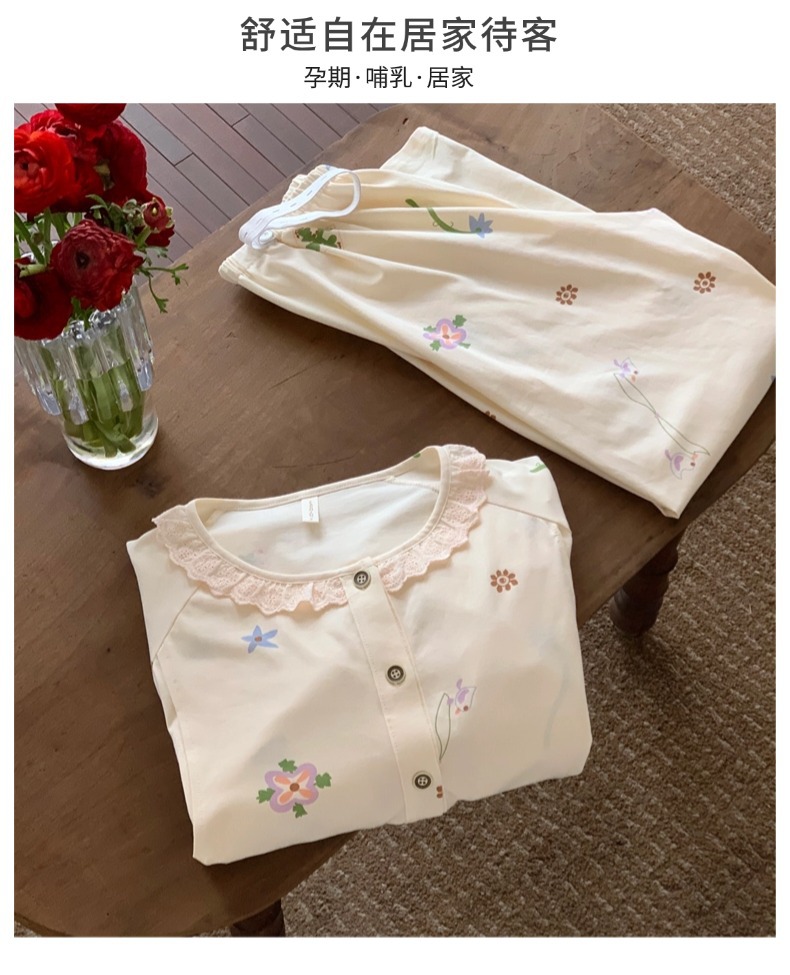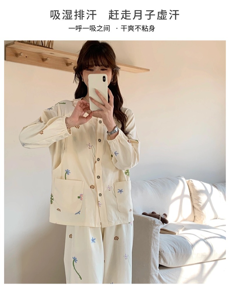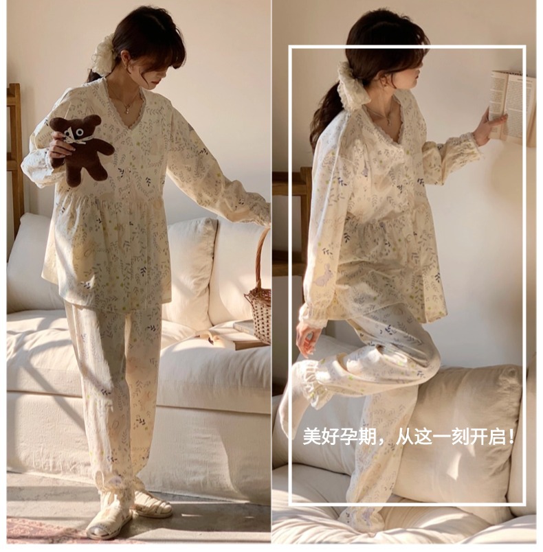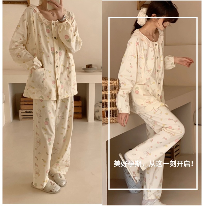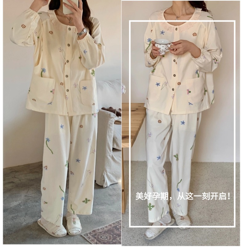 클래스 2025A 봄과 여름 순면 풀 랙 월간 의류 산후 수유 임산부 파자마 모성 간호 홈 의류 세트