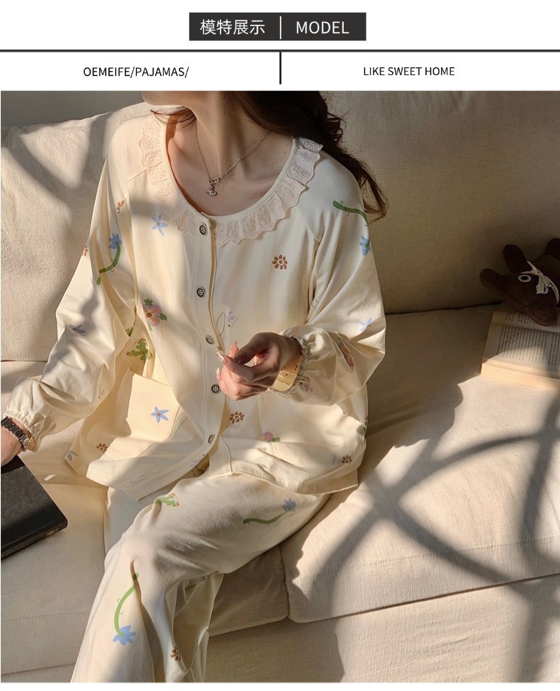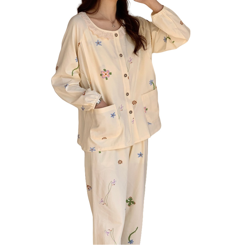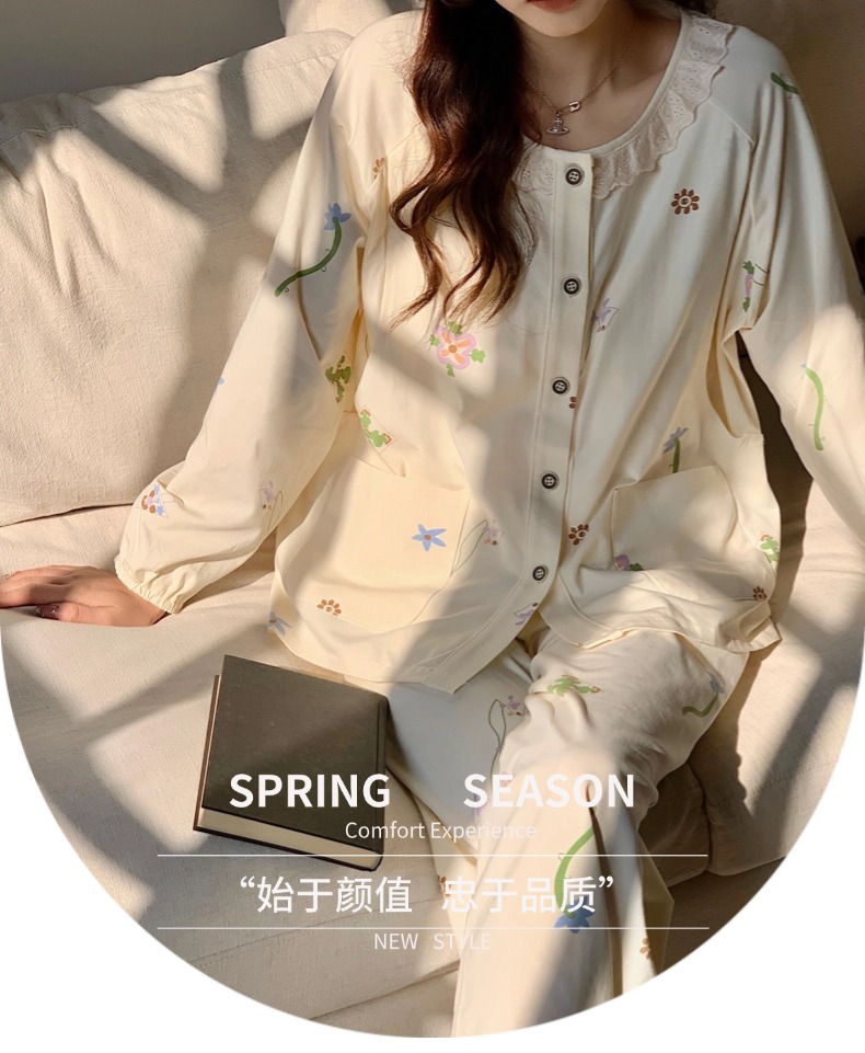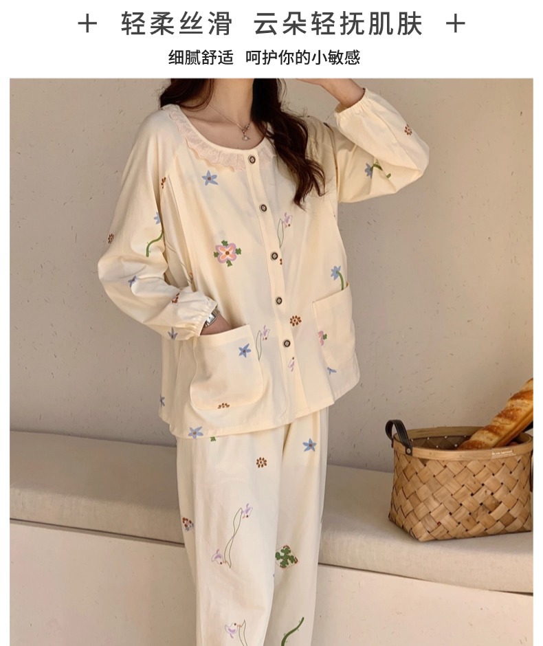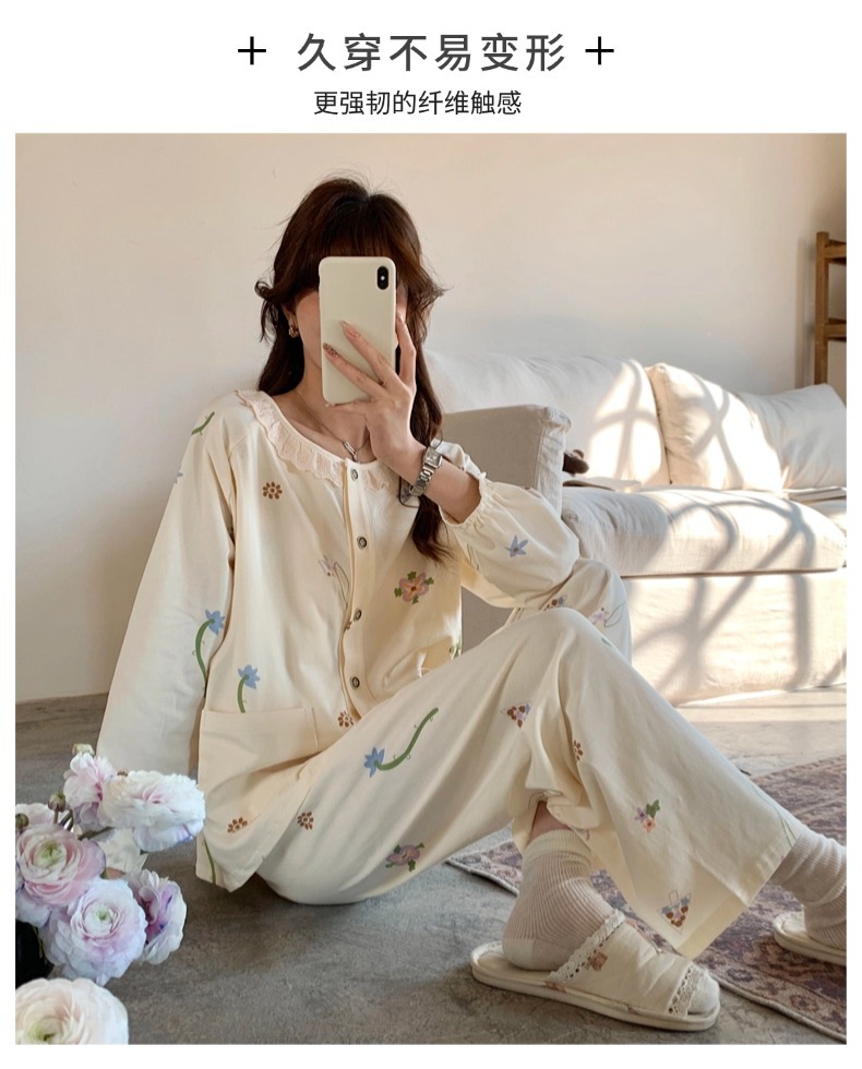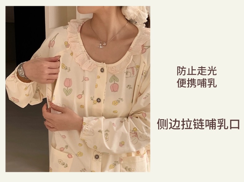 클래스 2025A 봄과 여름 순면 풀 랙 월간 의류 산후 수유 임산부 파자마 모성 간호 홈 의류 세트