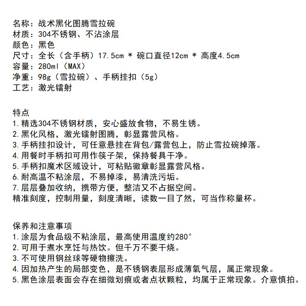 캠핑 블랙 토템 셸라 보울 캠프 그릇 휴대용 캠핑 피크닉 바베큐 스테인레스 스틸 식기 선반 그릇