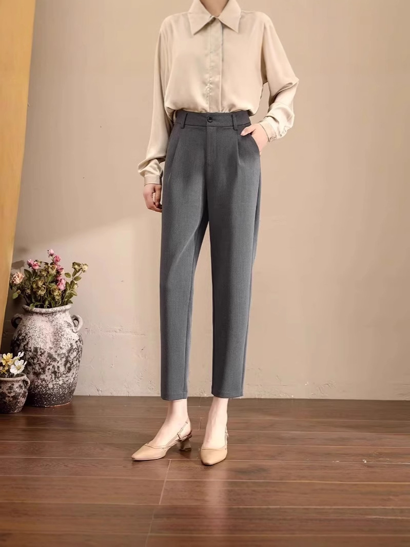 여성용 정장 바지 2026년 봄 하렘 팬츠, 작은 발목에 맞는 당근형 바지, 키 작은 분들을 위한 9부 기장, 레이디스 스타일의 스모크 파이프 팬츠