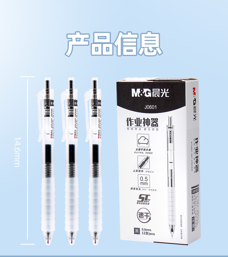 Chenguang 클라우드 악수 작업 아티팩트 프레스 젤 펜 초등 학생을위한 편안한 소프트 접착제 블랙 브러시 빠른 드라이 사인 펜