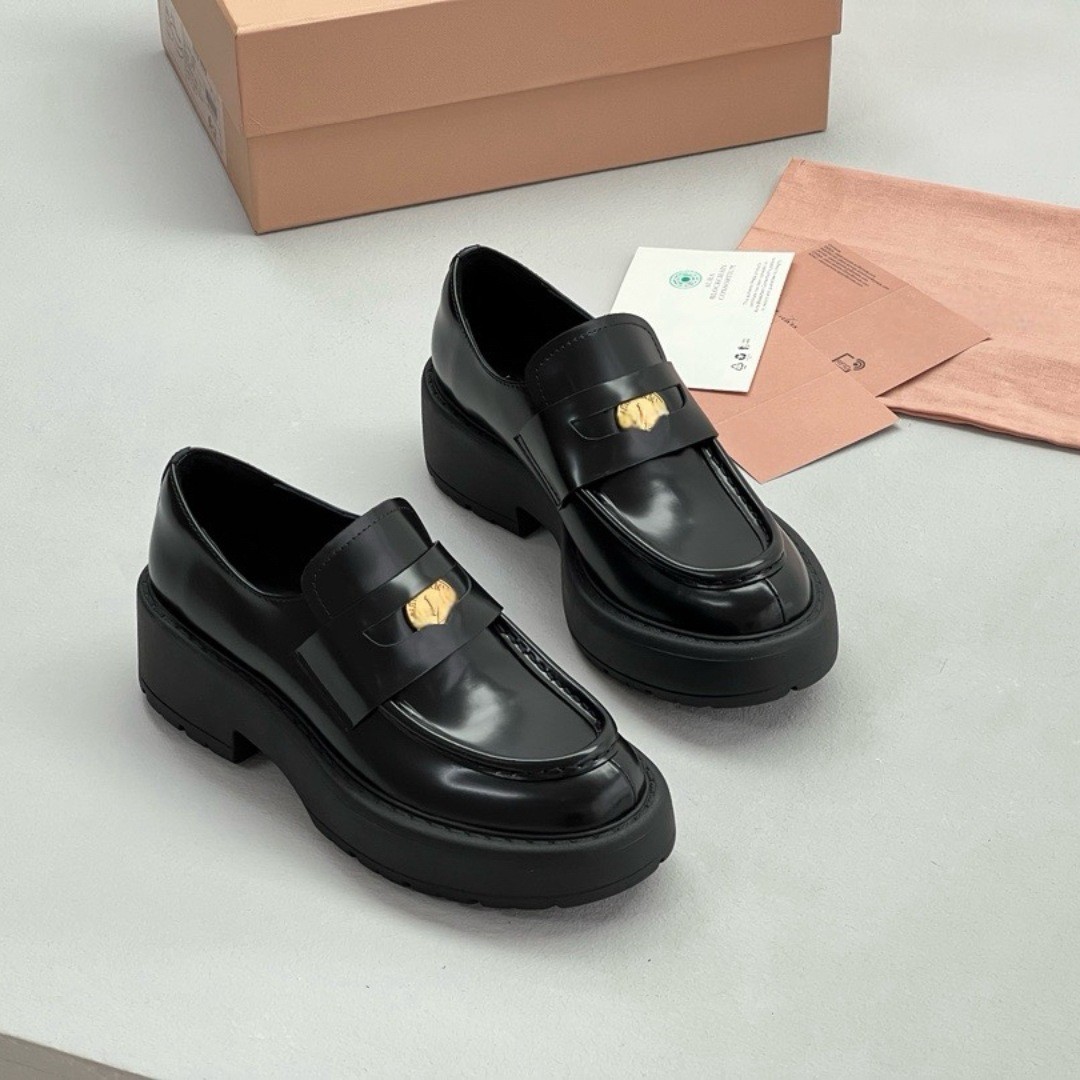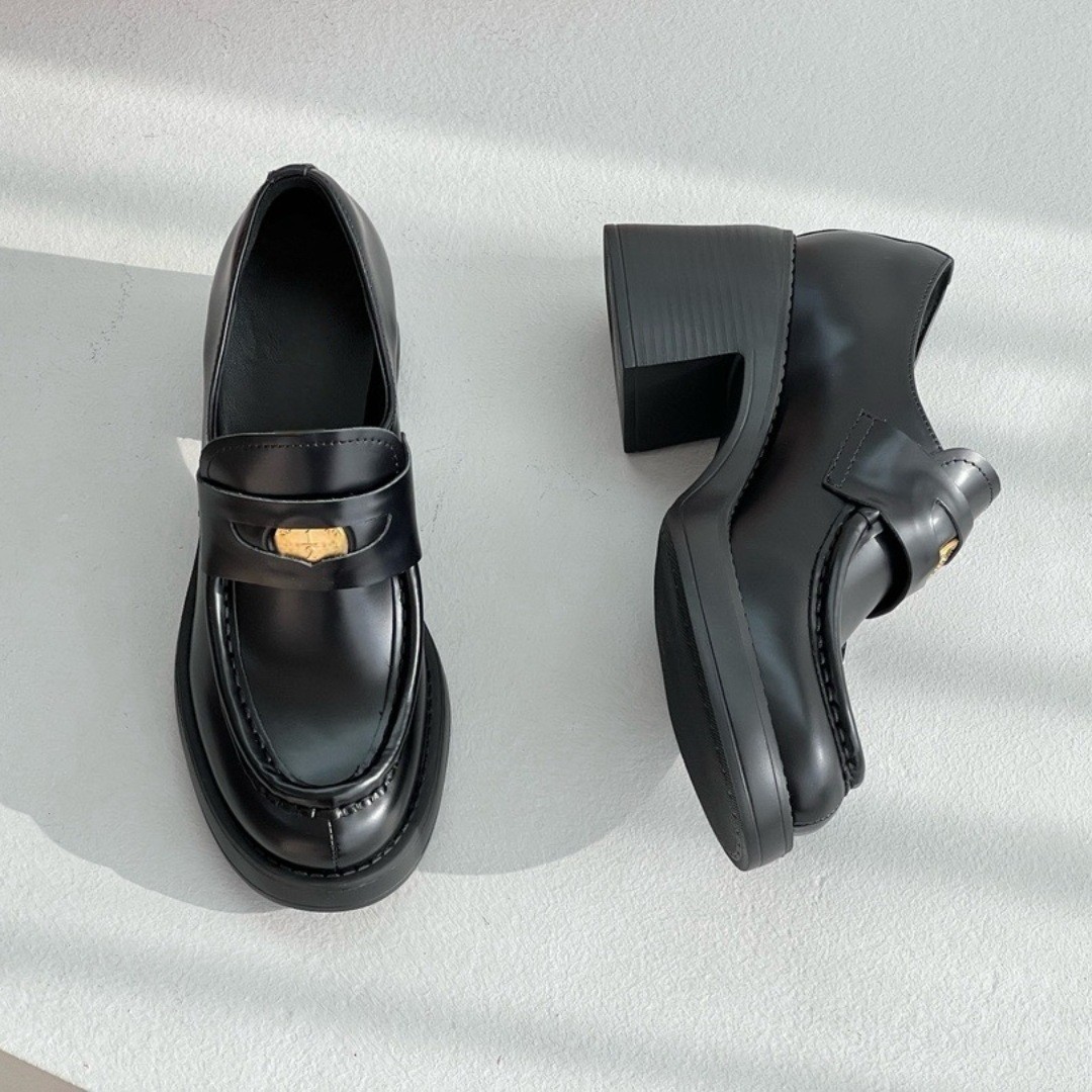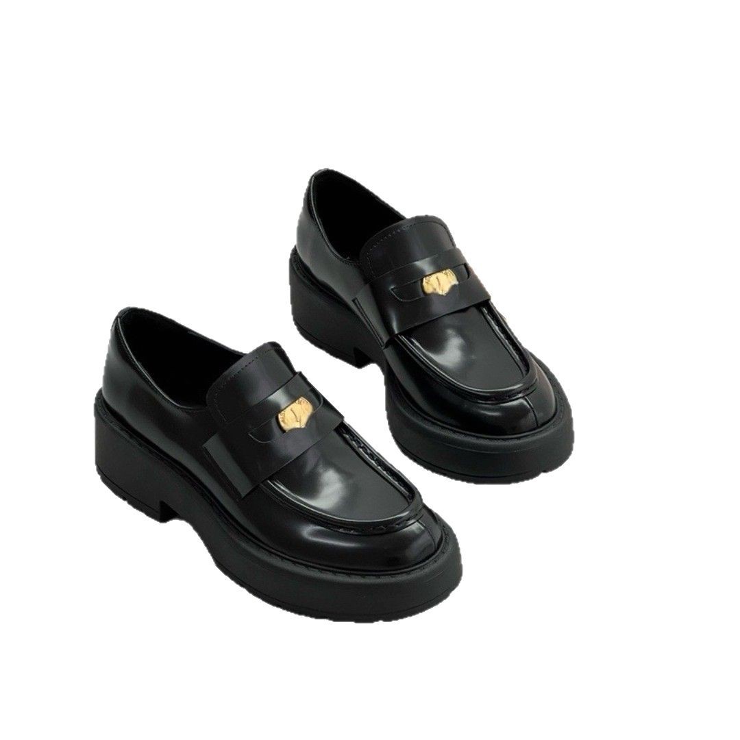몸집이 작은 여성을 위한 봄 신상 금화 두꺼운 밑창 로퍼, 소가죽 라운드 토 두꺼운 굽 하이힐 슬립온 슈즈
