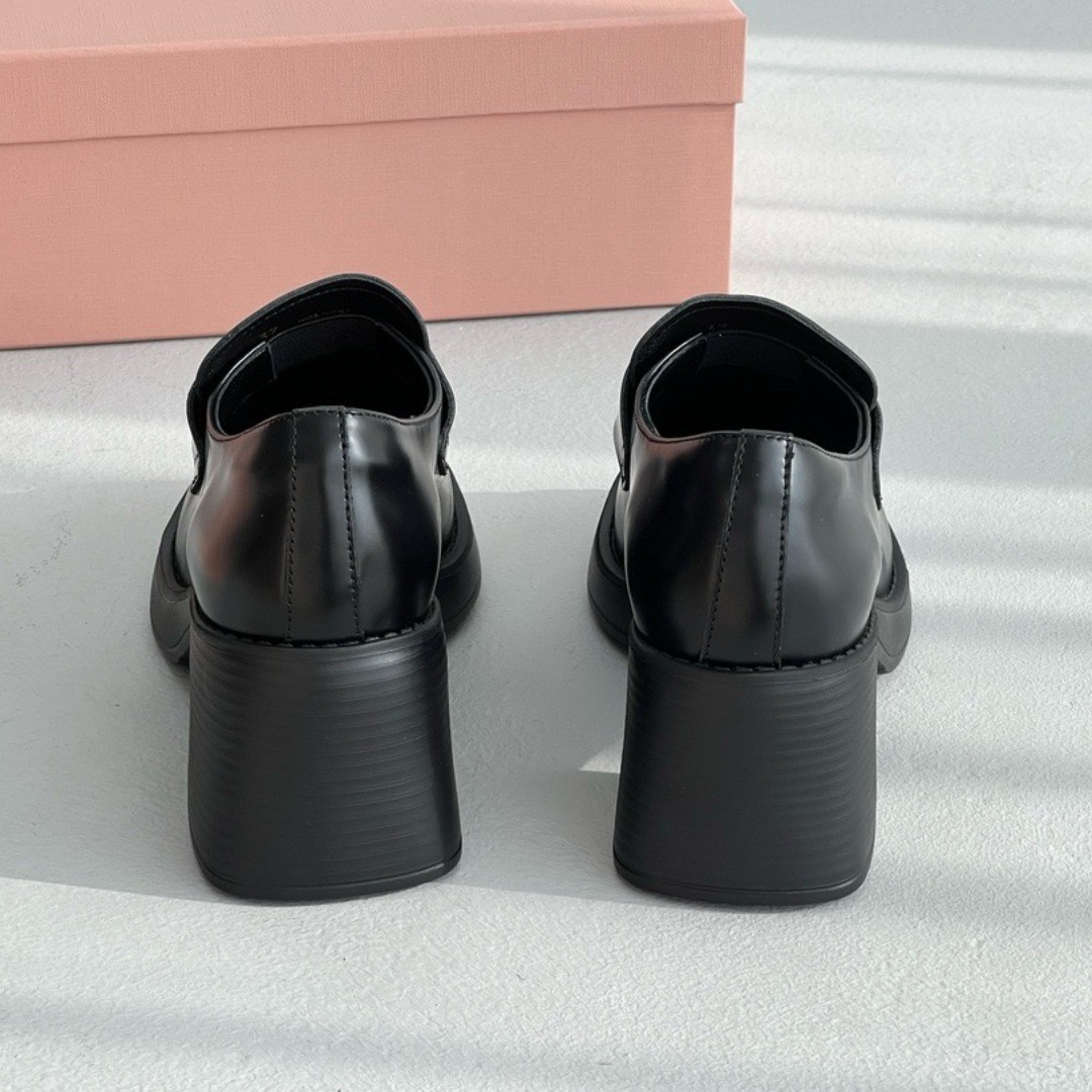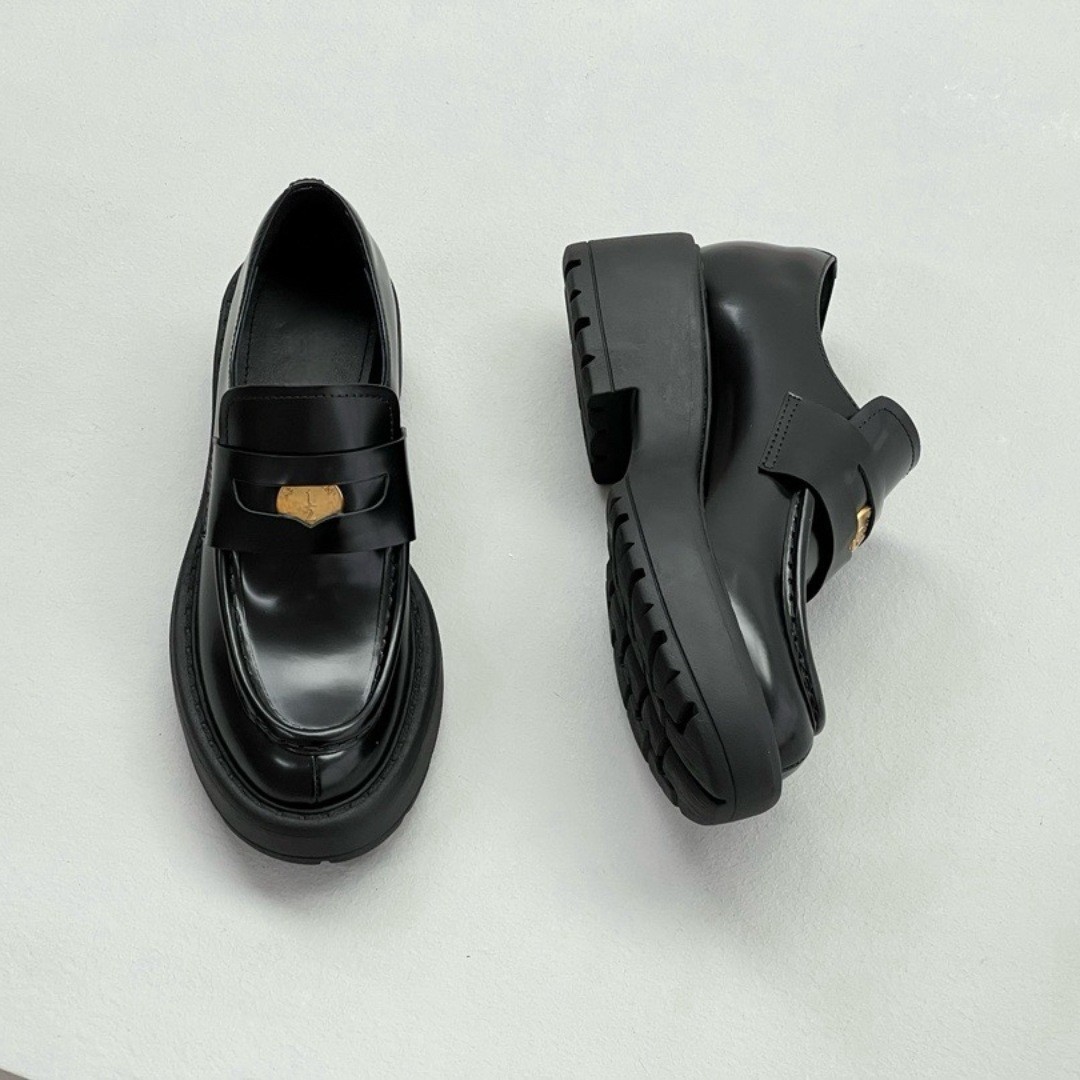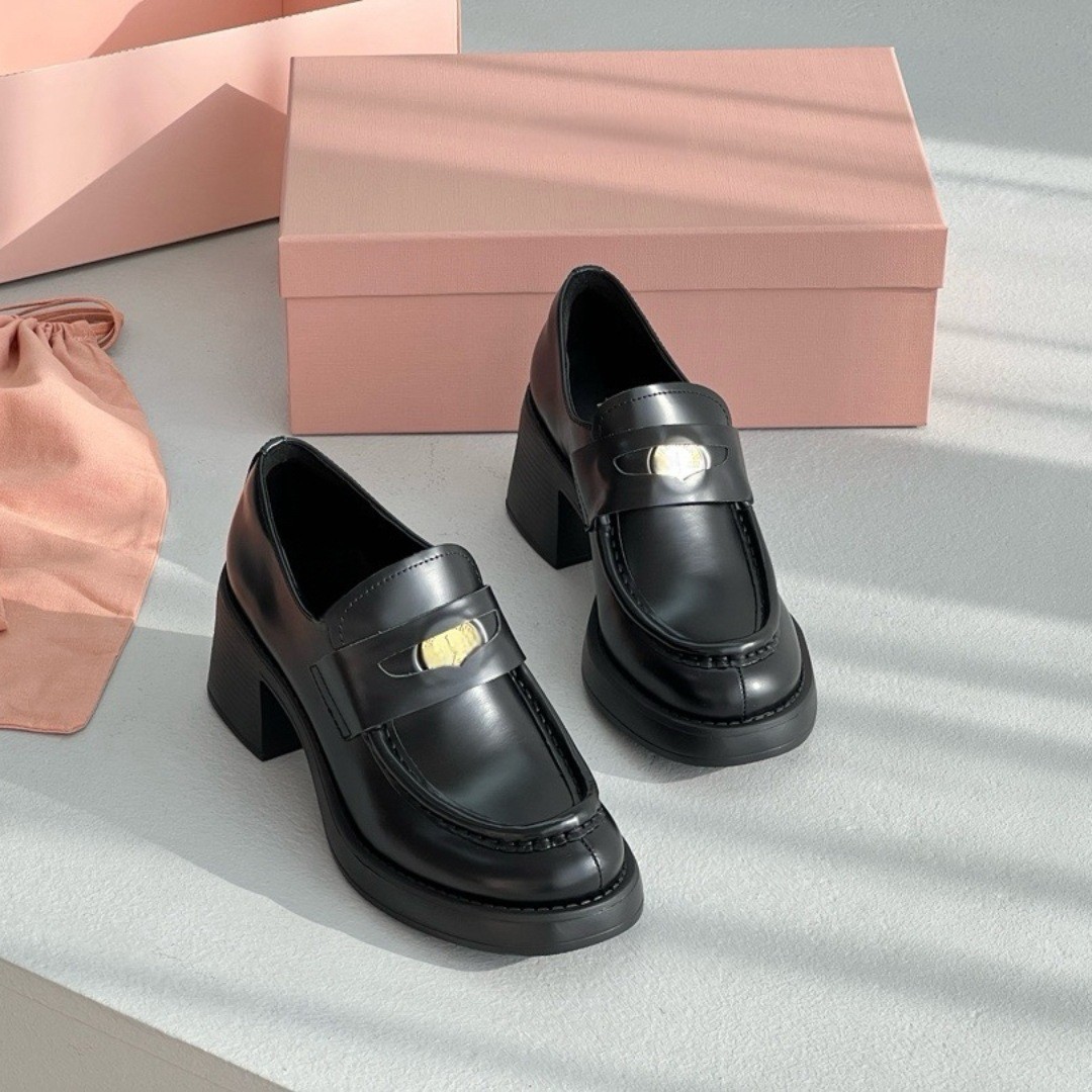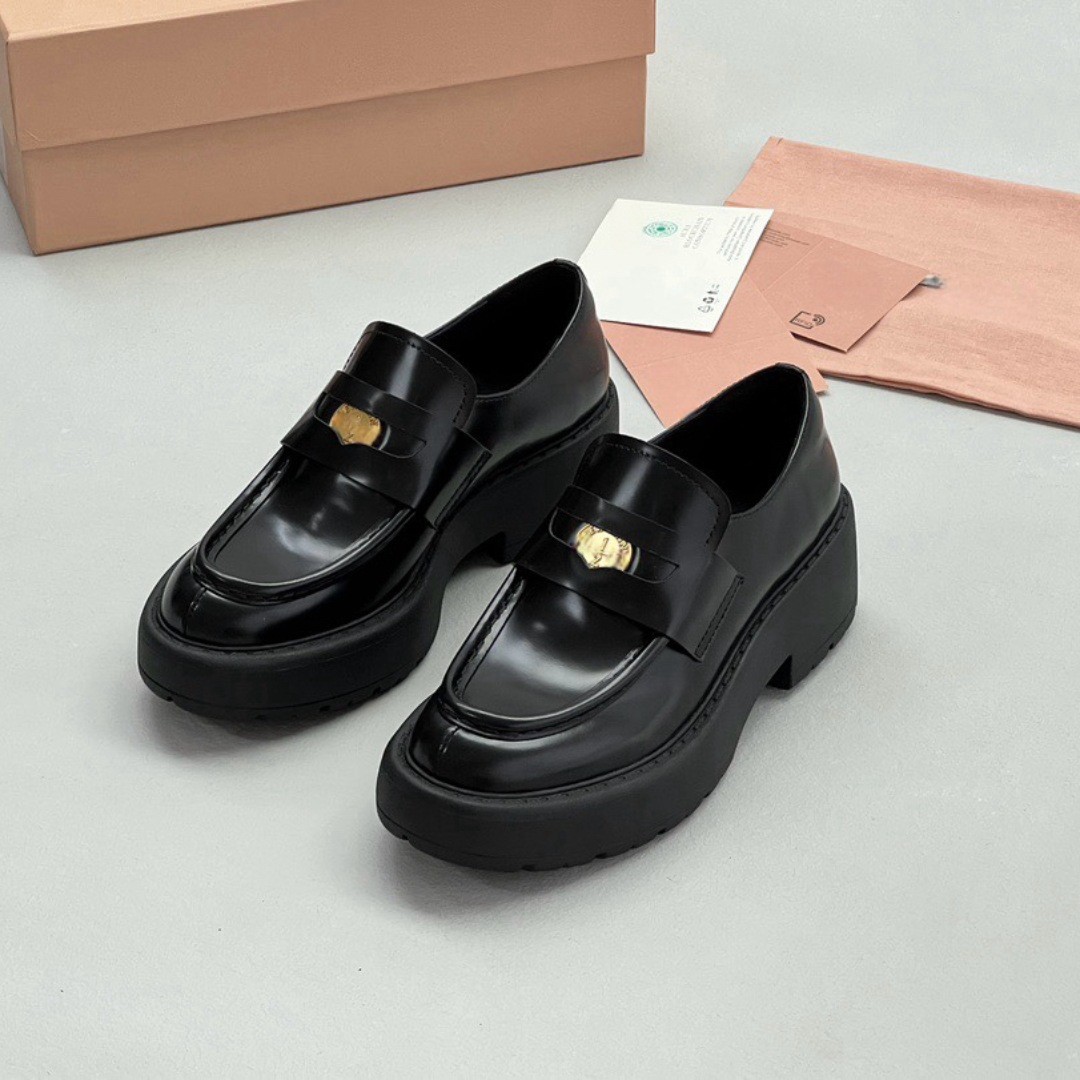 몸집이 작은 여성을 위한 봄 신상 금화 두꺼운 밑창 로퍼, 소가죽 라운드 토 두꺼운 굽 하이힐 슬립온 슈즈