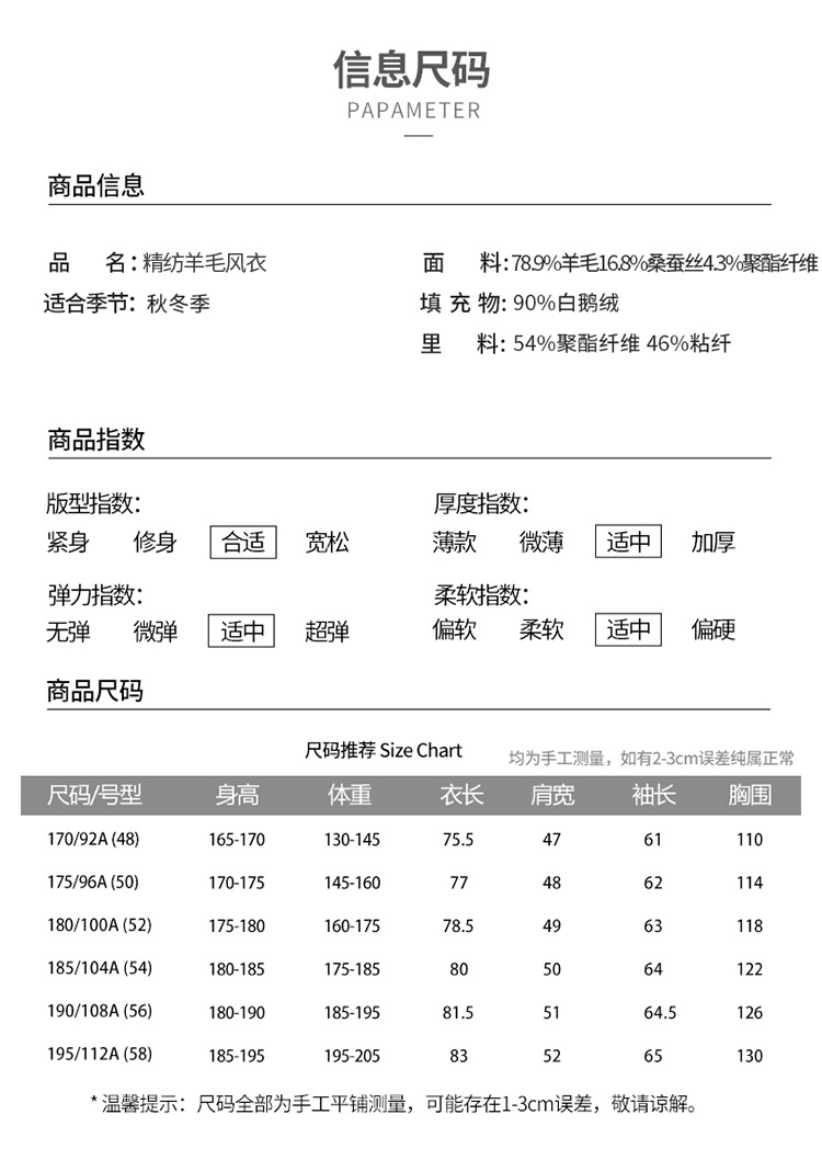 울 78.9%, 멀버리 실크 16.8%, 폴리에스터 섬유 4.3%
