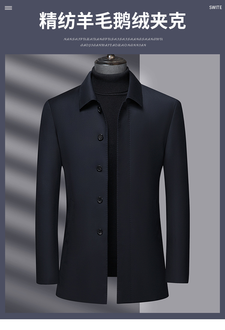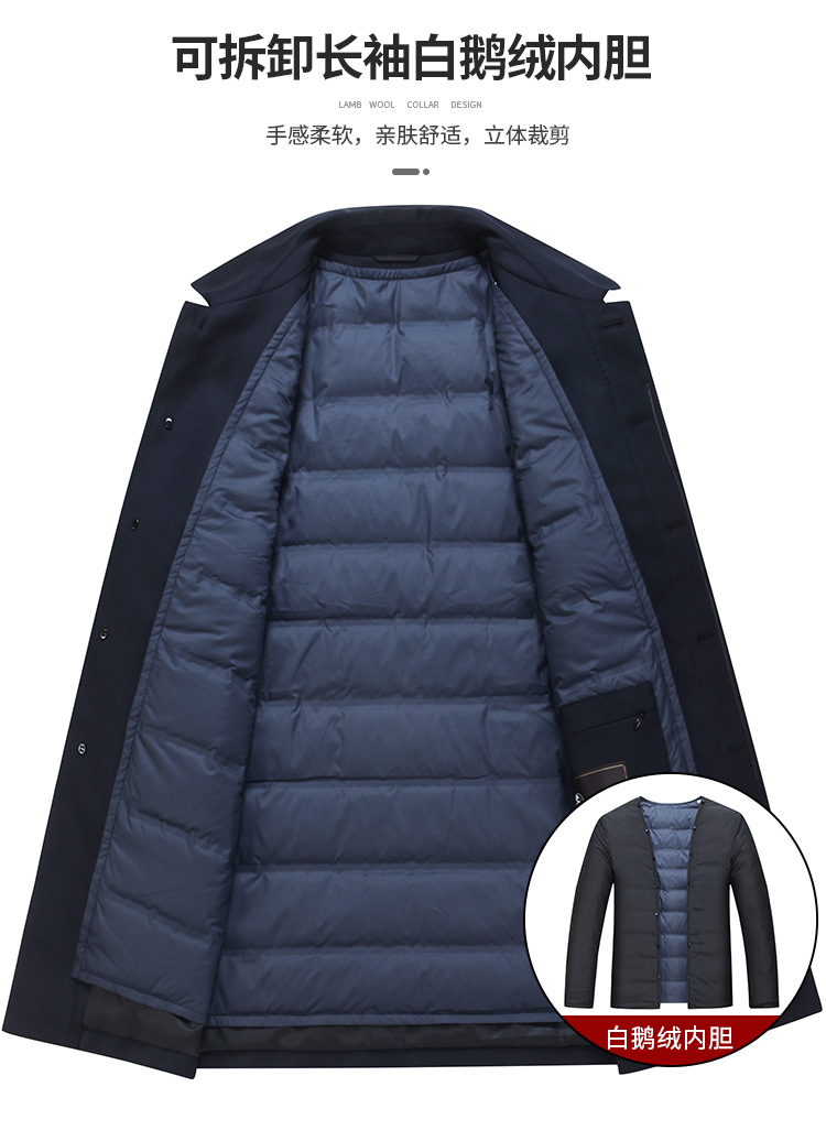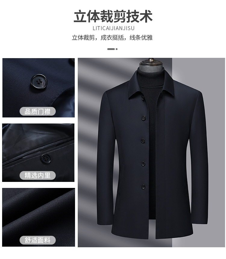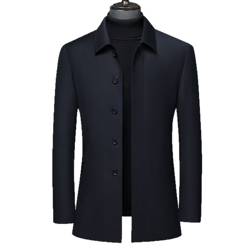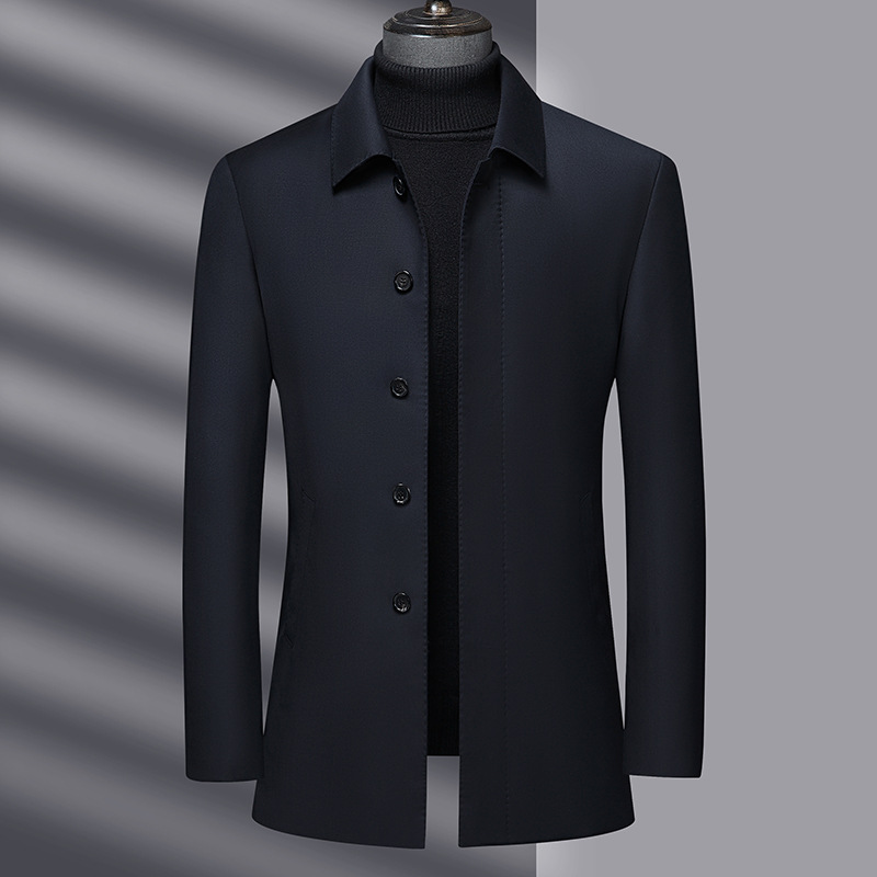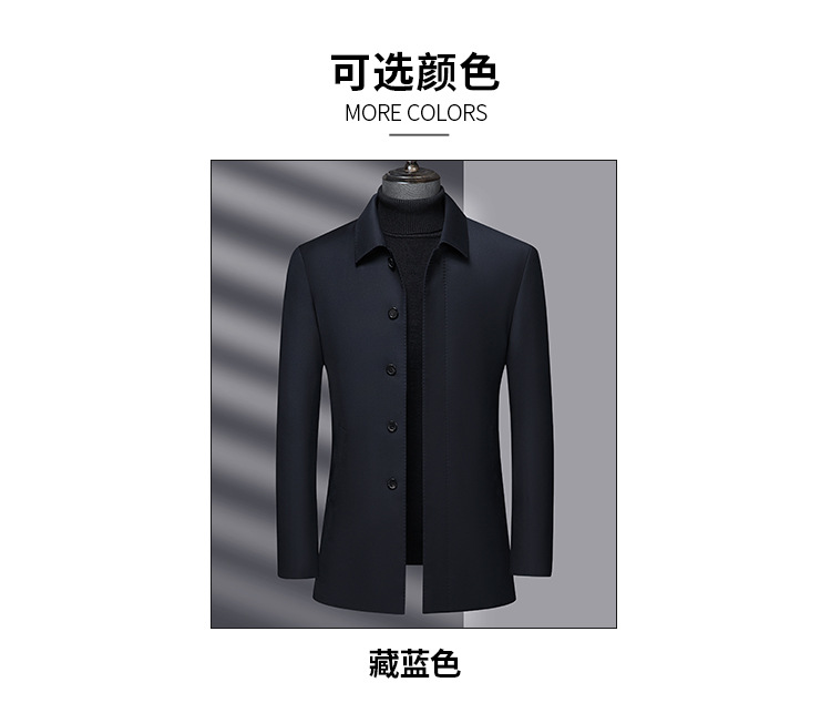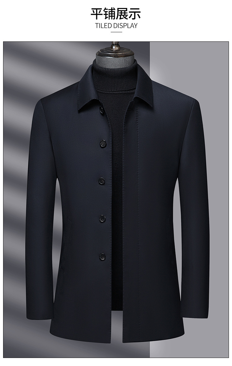 2025 가을과 겨울 새로운 양모 뽕나무 실크 코트 남성용 옷깃 울 중년 간부 롱 코트
