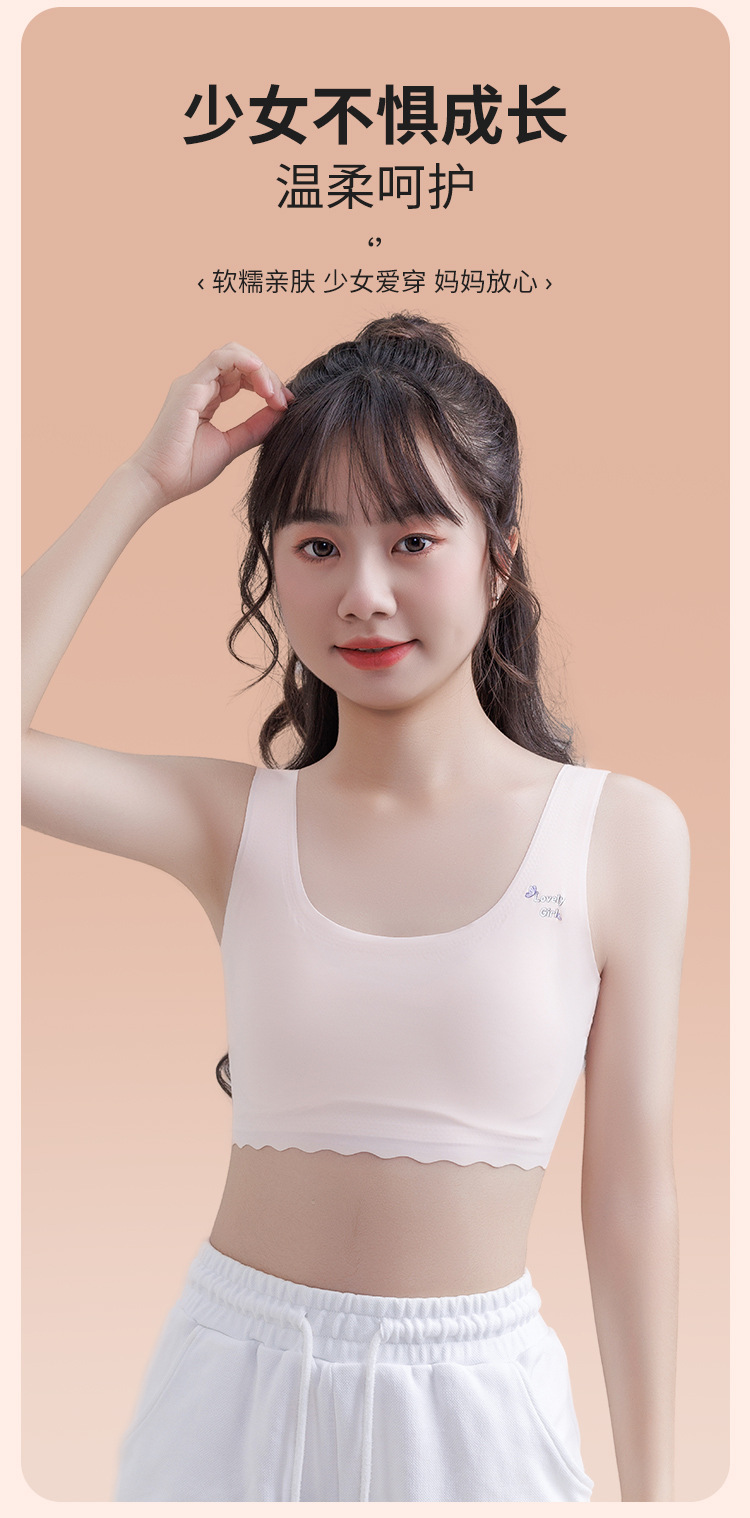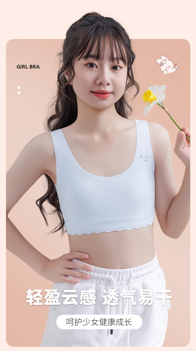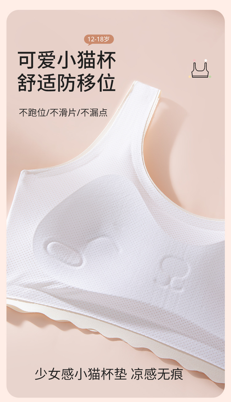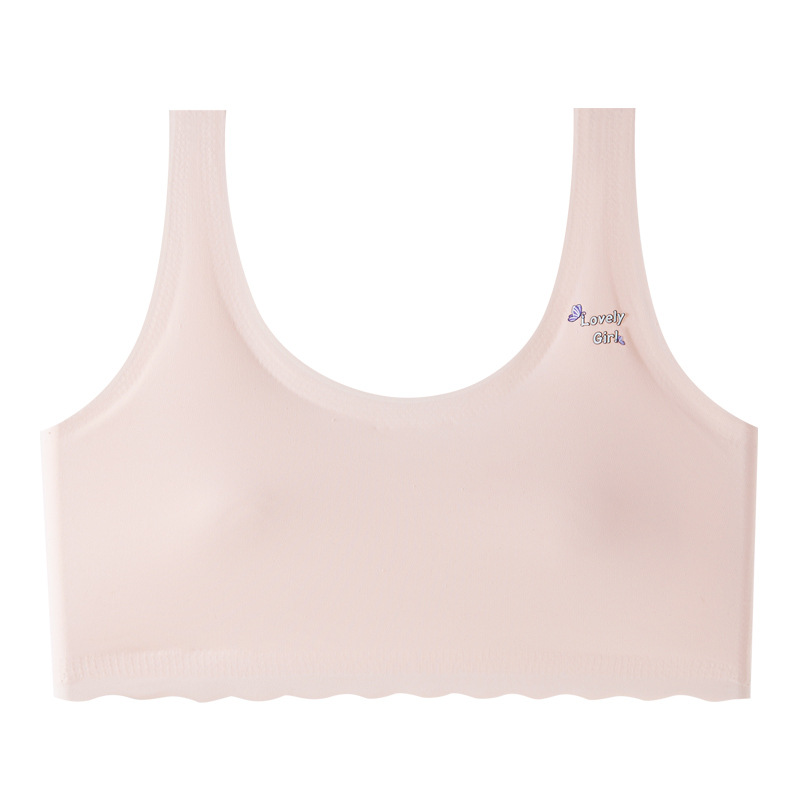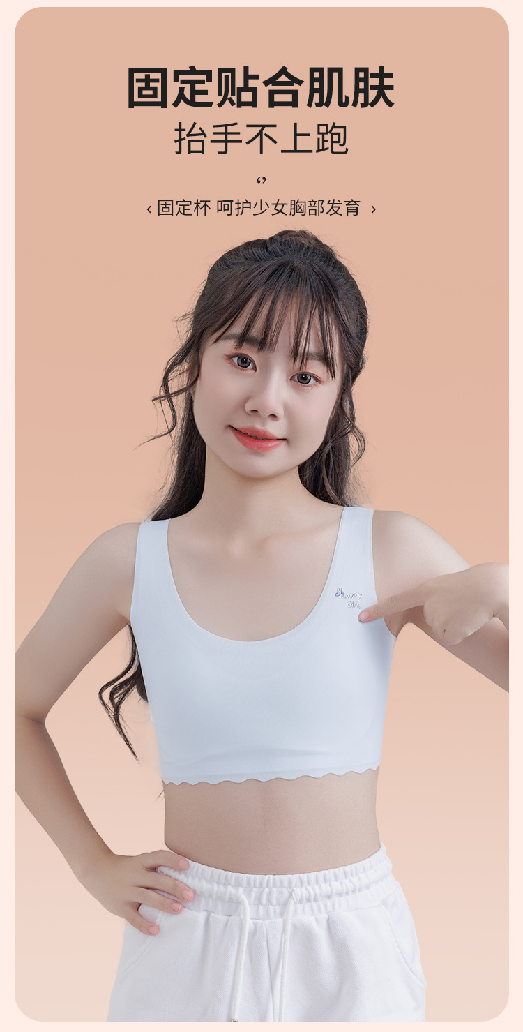 아이스 실크 추적없는 소녀 발달 어린이 튜브 탑 속옷 학생 소녀 고정 컵 조끼 얇은 가슴 패드 브래지어
