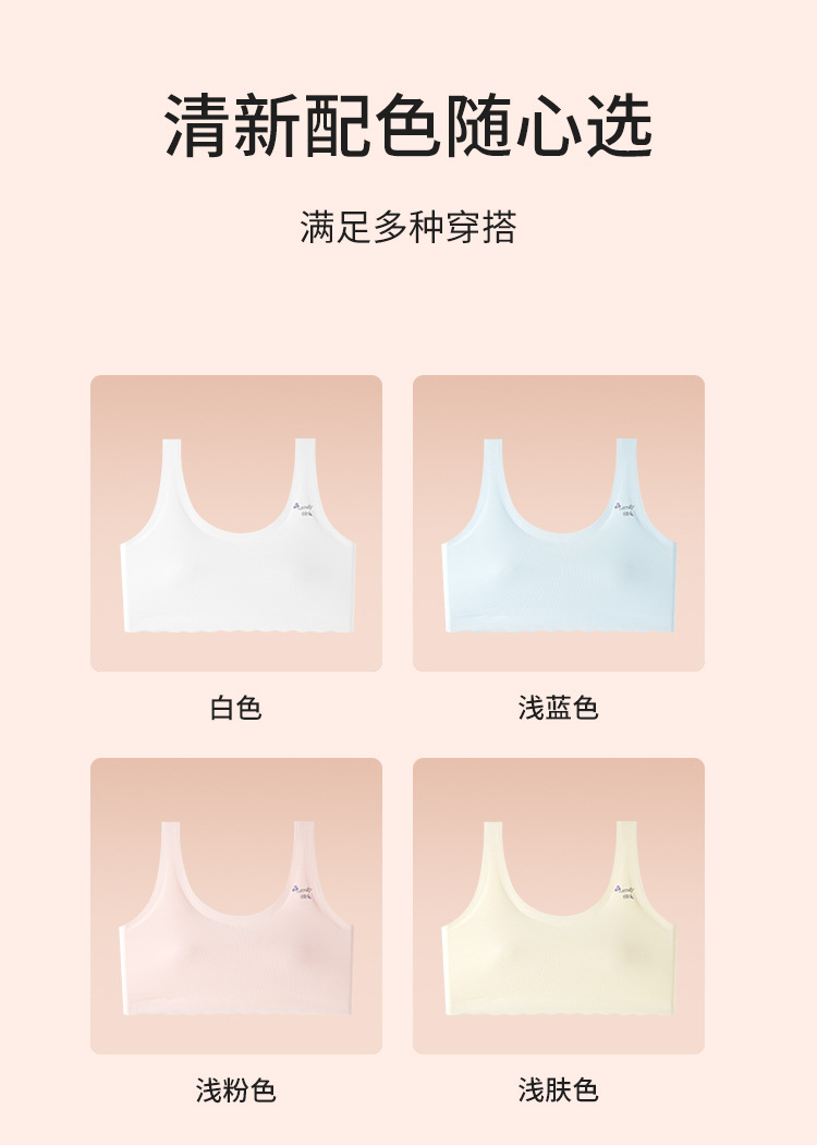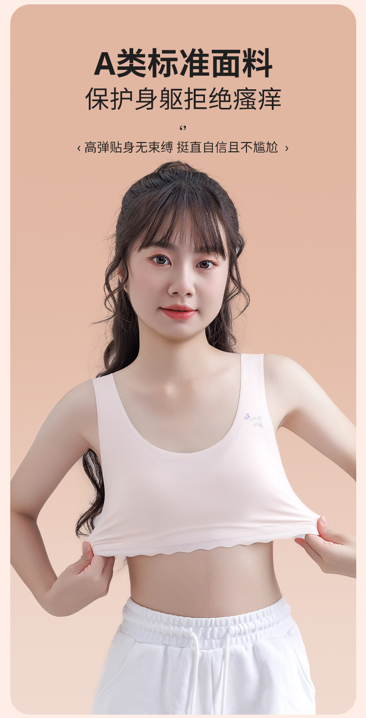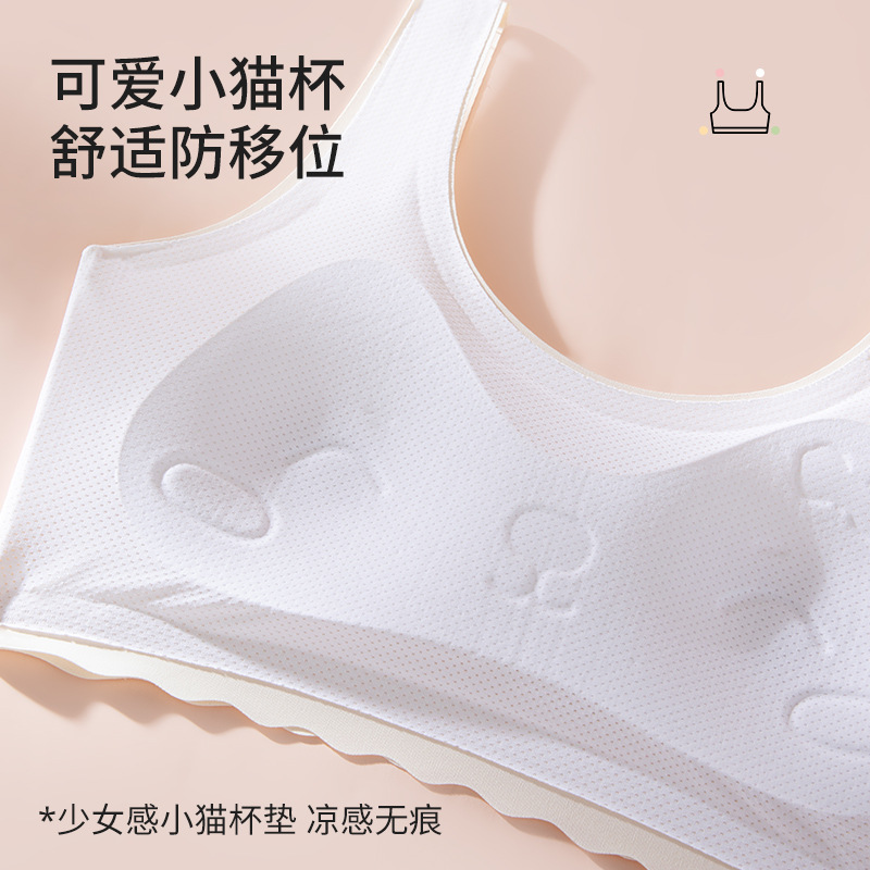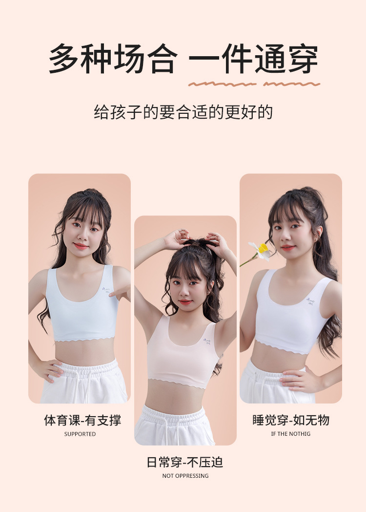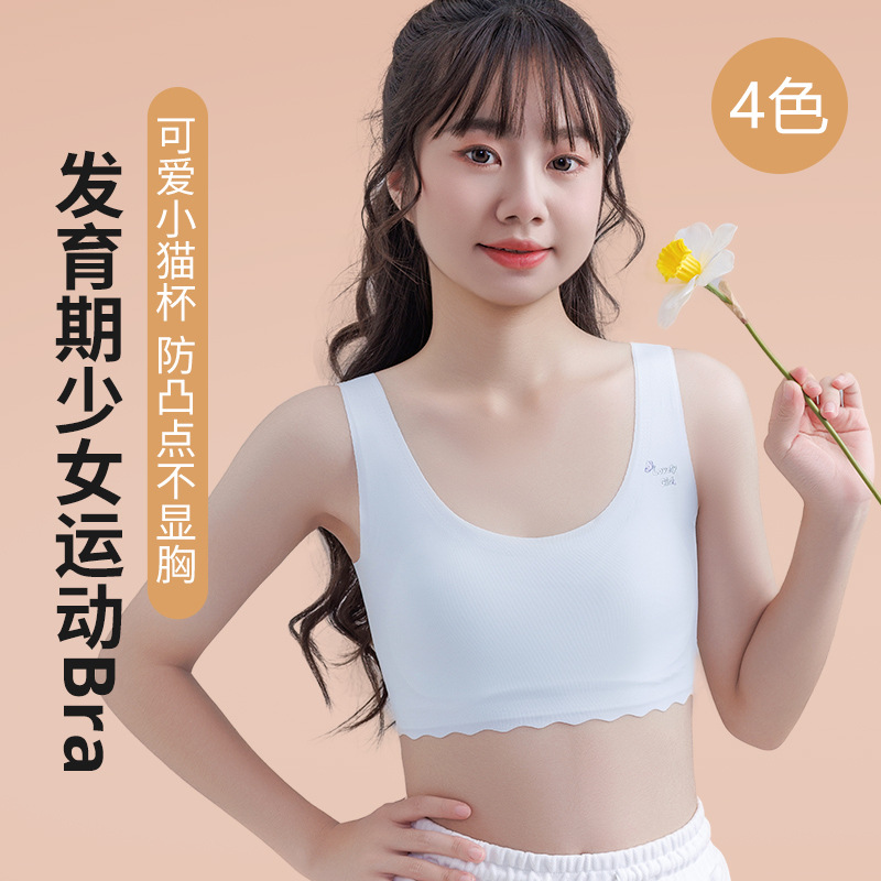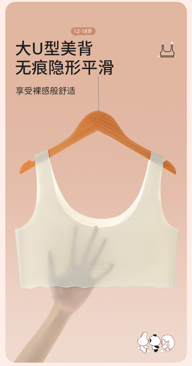 아이스 실크 추적없는 소녀 발달 어린이 튜브 탑 속옷 학생 소녀 고정 컵 조끼 얇은 가슴 패드 브래지어