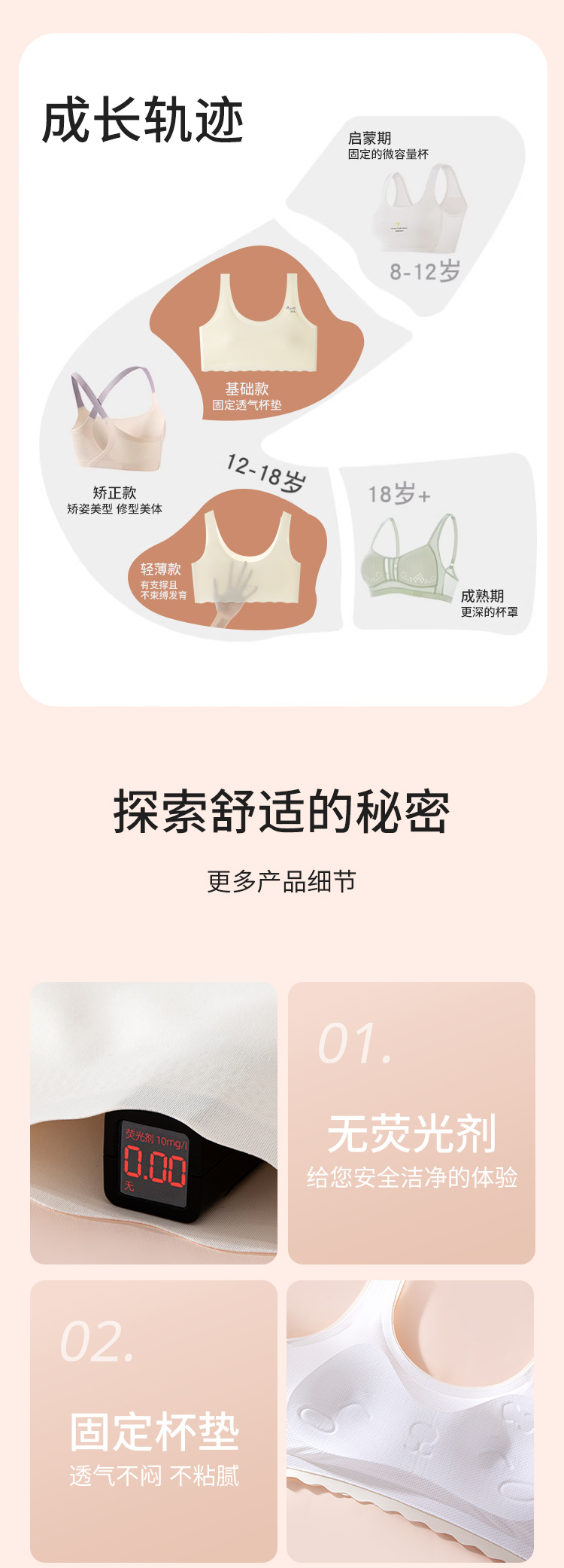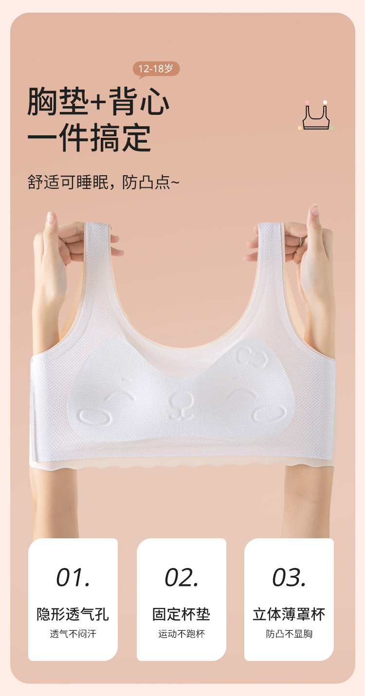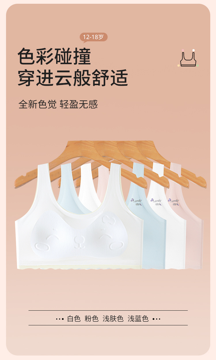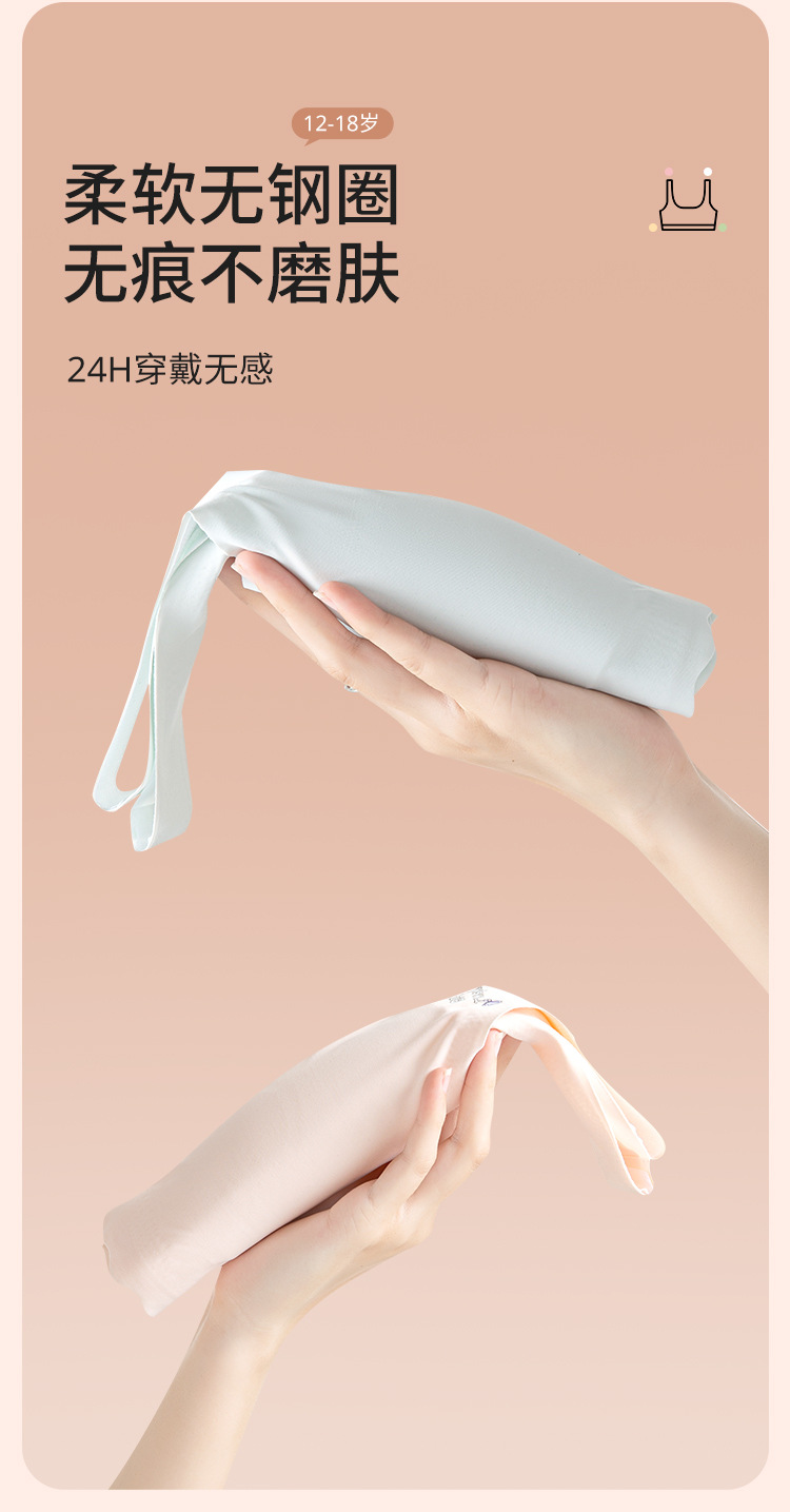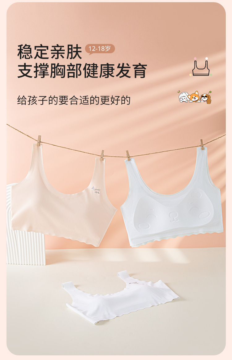 아이스 실크 추적없는 소녀 발달 어린이 튜브 탑 속옷 학생 소녀 고정 컵 조끼 얇은 가슴 패드 브래지어