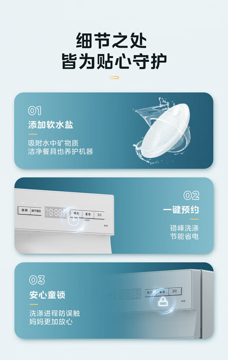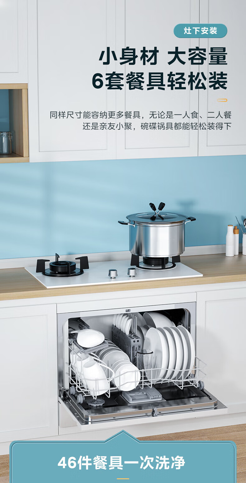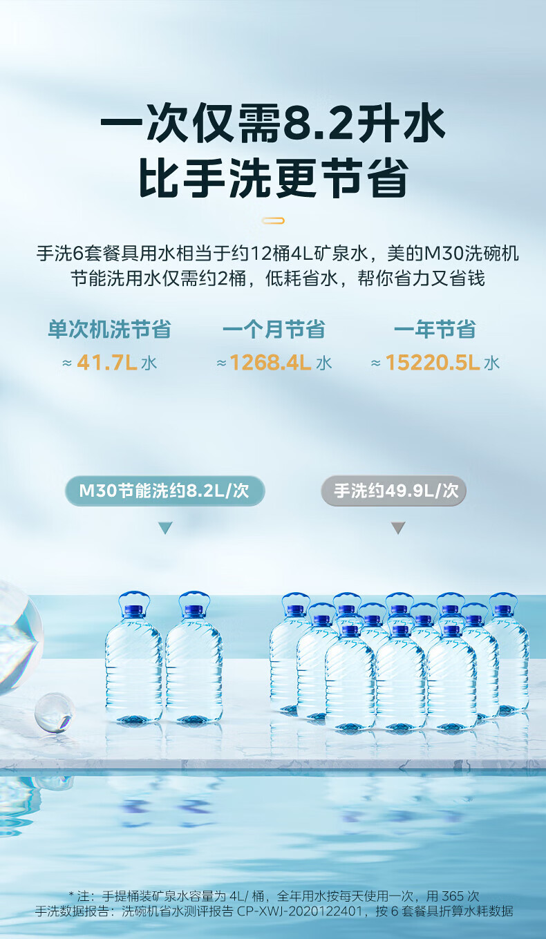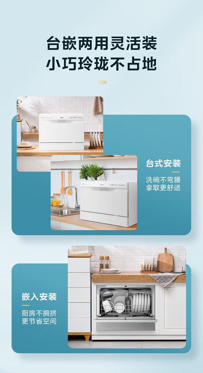 Midea 식기세척기 탁상용 M30 소형 식기세척기 85 ℃ 강한 열풍 건조, 2성 소독, 2개의 내장형 테이블