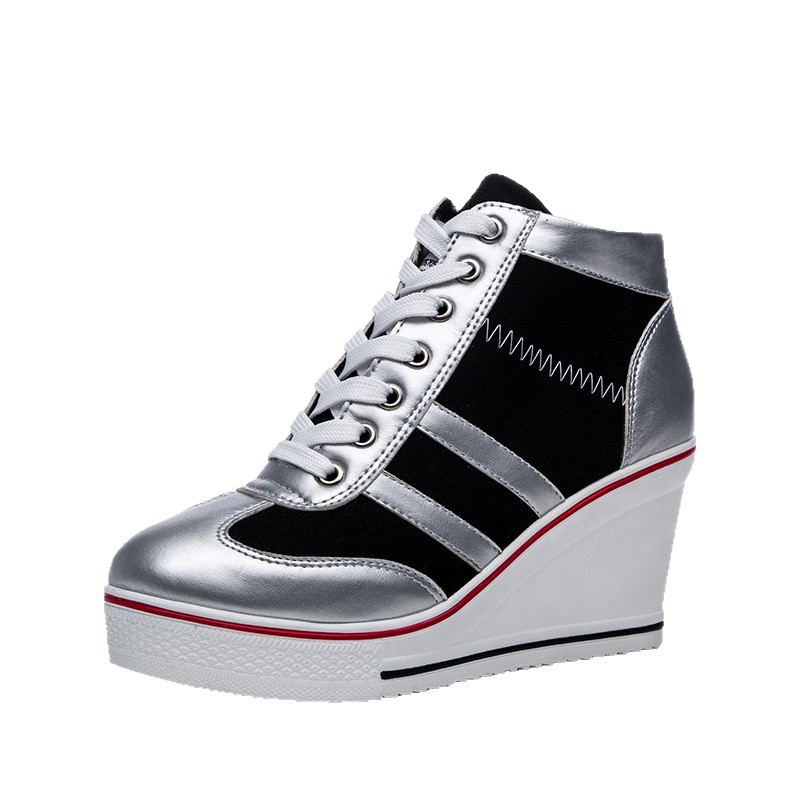 2021 새로운 웨지 힐 캐주얼 캔버스 신발 여성 사이드 링크 레이스 업 플랫폼 힐 여성 신발 8cm 높이 뒤꿈치 신발