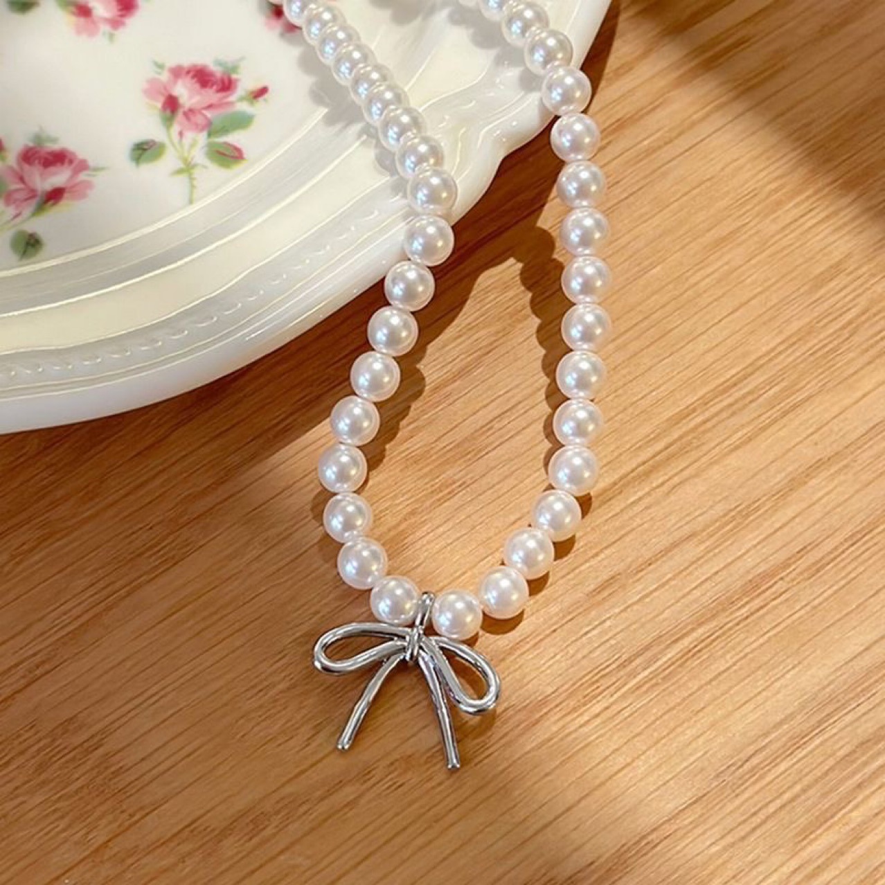 진주 활 펜던트 목걸이 여성용 라이트 럭셔리 틈새 하이 엔드 우아한 목걸이 2024 새로운 폭발 쇄골 체인