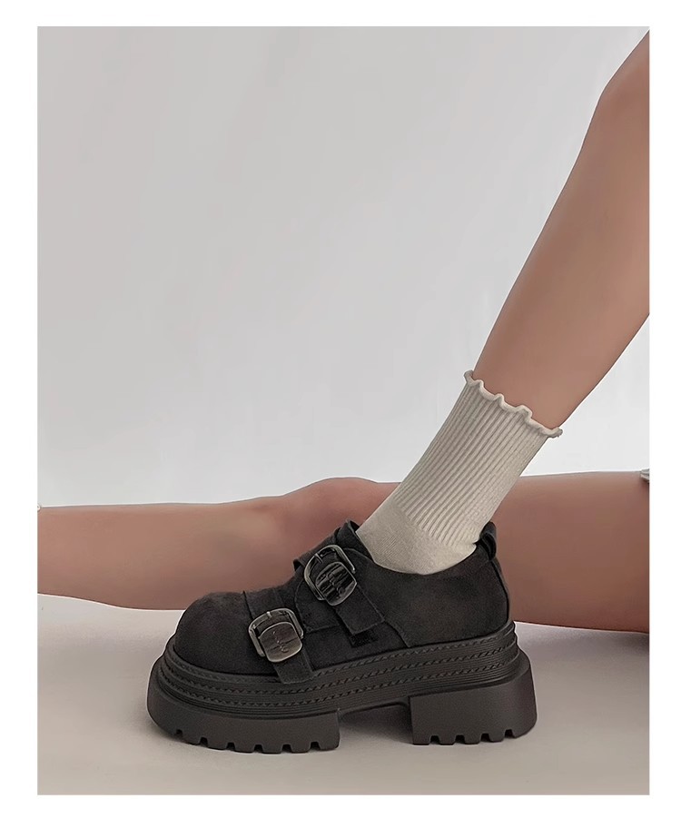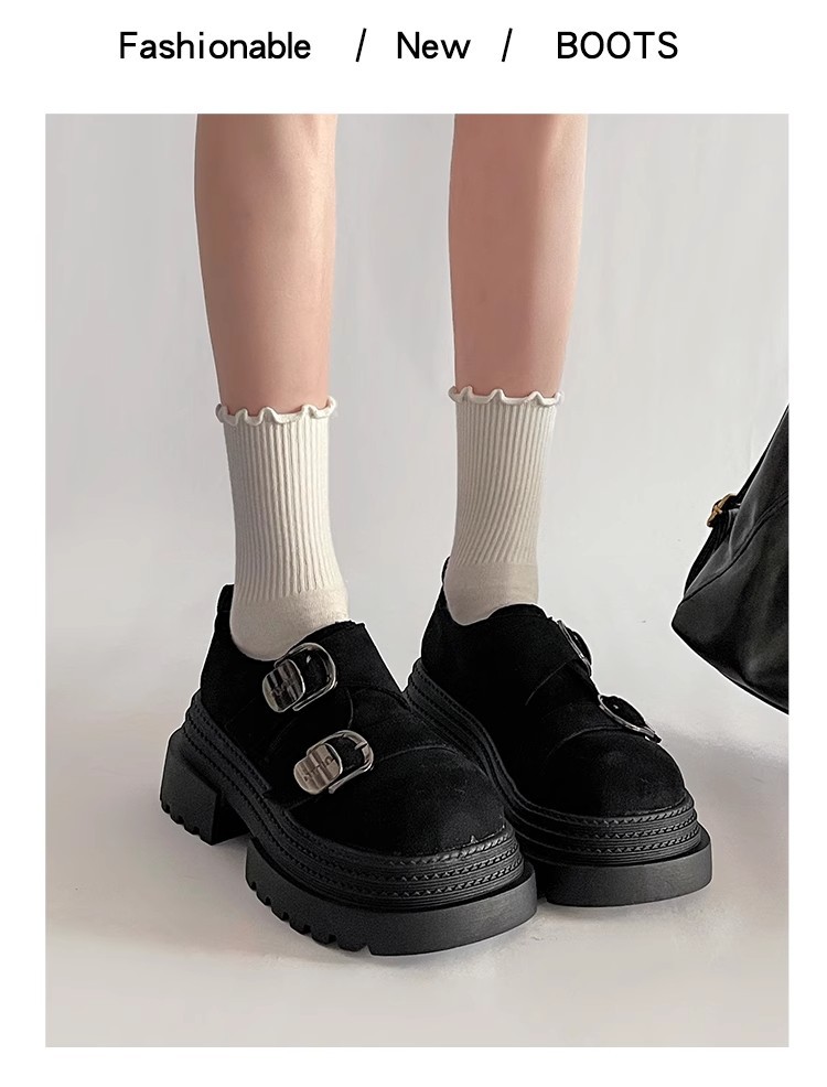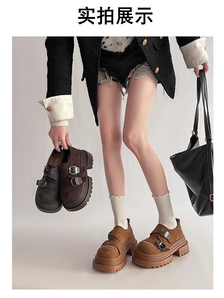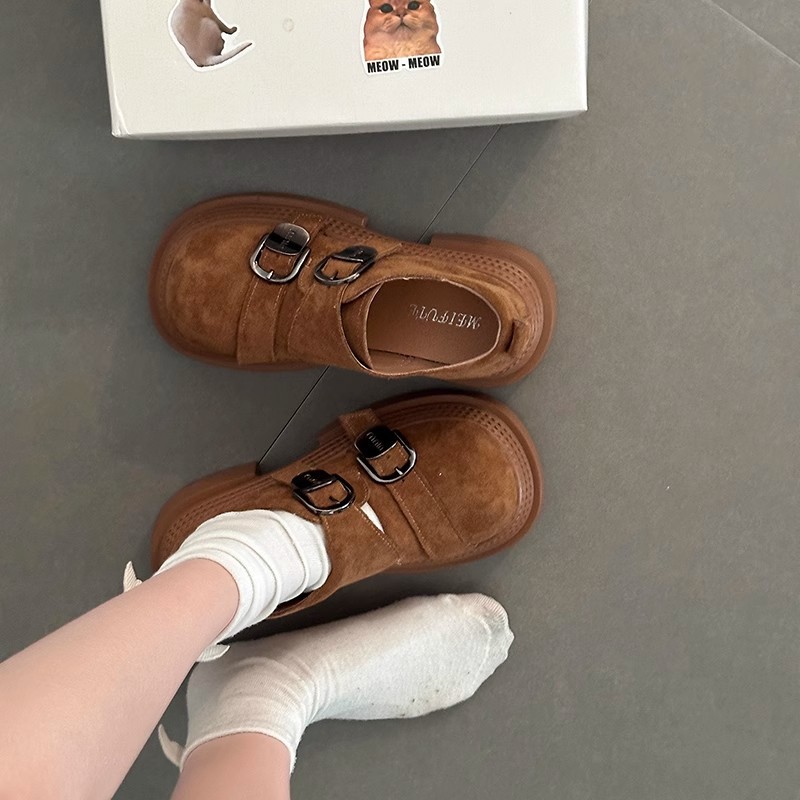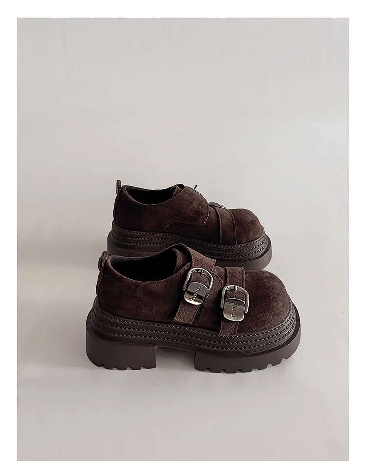 영국 스타일 플랫폼 밑창 Buccanean 스타일 작은 가죽 신발 싱글 레이어 신발 여성 2025 봄 새로운 올 매치 라운드 토 레트로 로퍼
